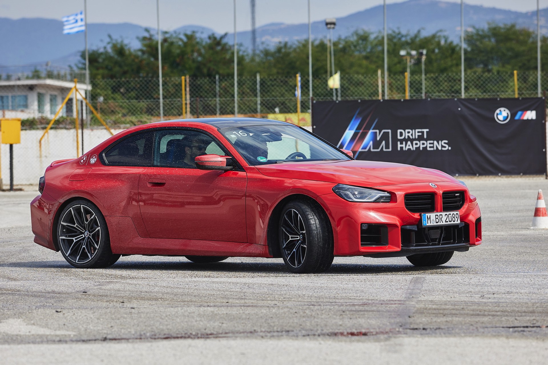 Der neue BMW M2 (G87) steht seit wenigen Monaten auch in immer mehr Ländern für das Fahrertraining der BMW Driving Experience zur Verfügung und lässt sich dort in sicherer Umgebung erproben. Aus Griechenland erreichen uns in diesem Kontext einige neue Fotos, die uns den Kompaktsportler in Brooklyn Grey, Toronto Rot und Saphirschwarz Metallic zeigen – in allen drei Fällen auch gut sichtbar im fahrdynamischen Grenzbereich und mitunter bei deutlich sichtbaren Drift-Winkeln. Das inoffizielle M-Motto “Drift Happens” wird offenbar auch in Griechenland mit Leben gefüllt und mit vollem Einsatz zum Steigern der Fahrfreude genutzt.