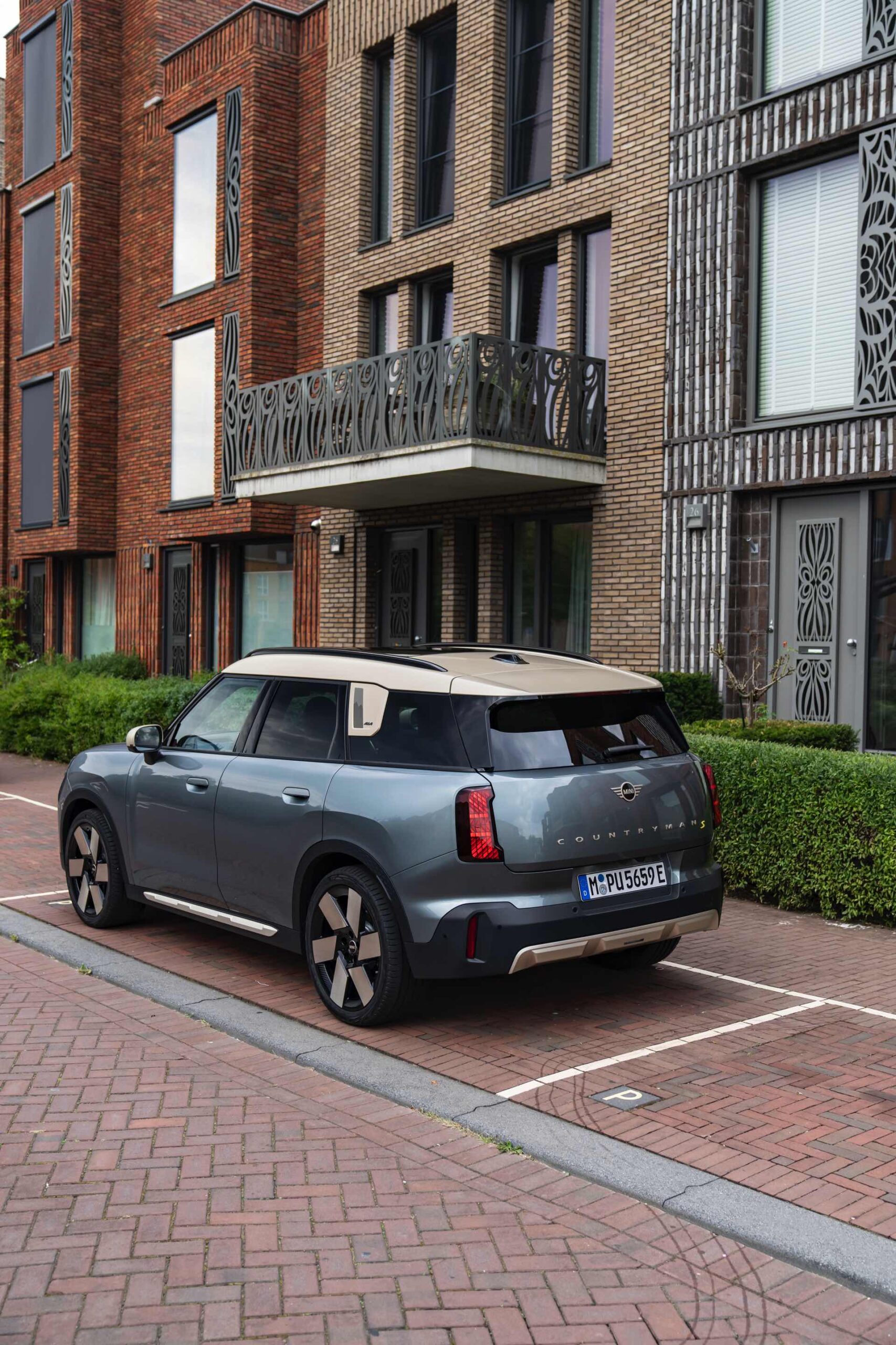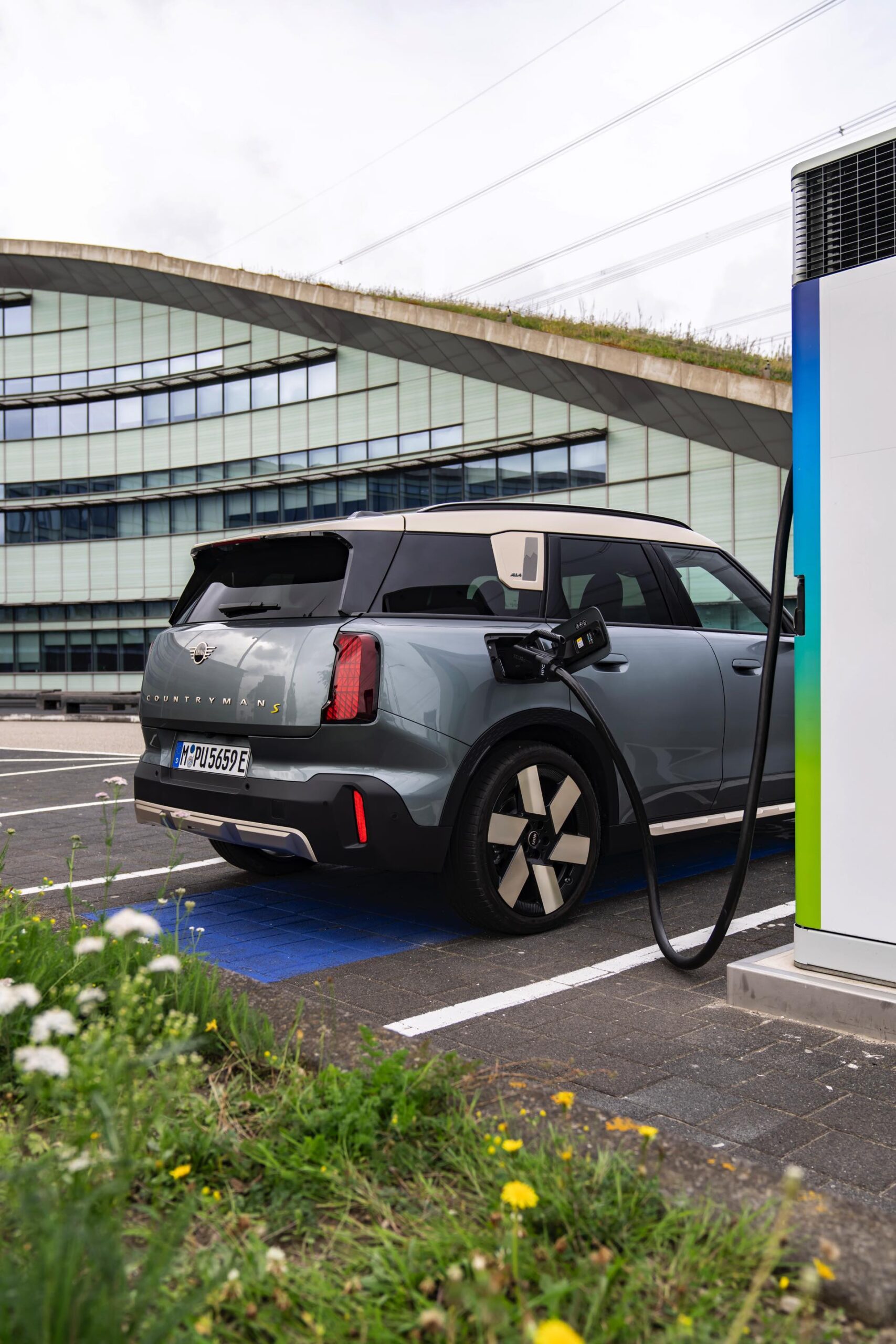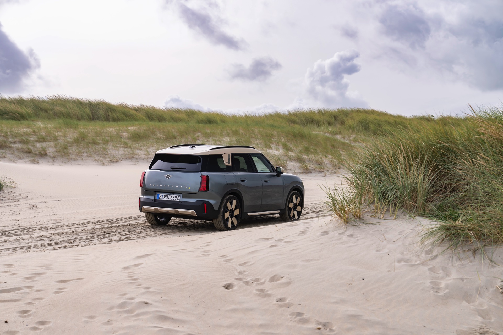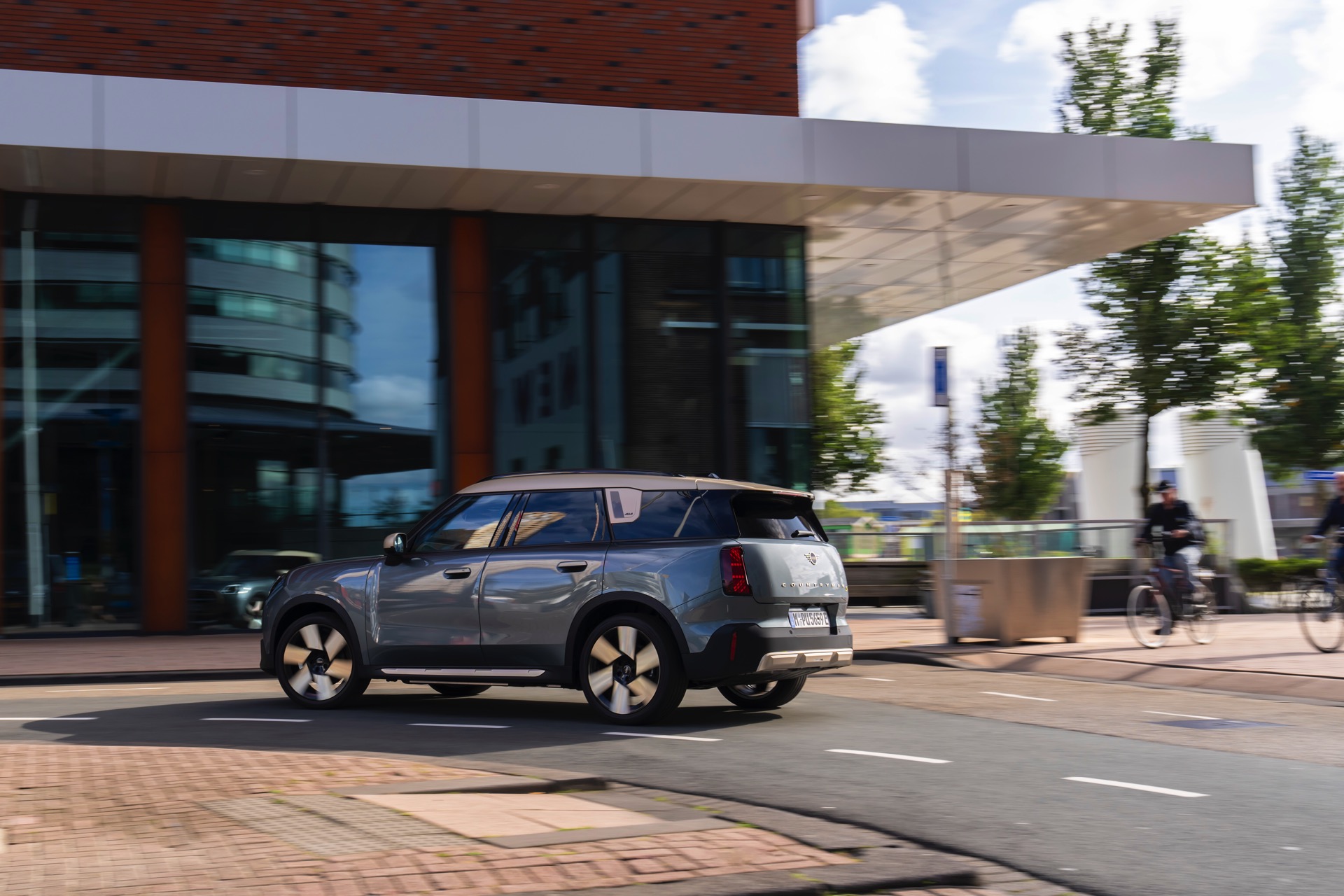 Wie sehr sich mit dem über 300 PS starken Elektro-SUV die elegante Seite betonen lässt, zeigt nun auch ein weiteres Foto-Set vom MINI Countryman in seiner Launch-Farbe Smokey Green. Das Dach, die Außenspiegel, die Einfassung des Kühlergrills und einige weitere Details sind in Vibrant Silver ausgeführt, das seidenmatt glänzt und je nach Lichteinfall durchaus an sanftes Gold erinnern kann. Auch die 20 Zoll großen Felgen greifen den eleganten Farbton auf und tragen zum edlen Gesamtlook bei.
