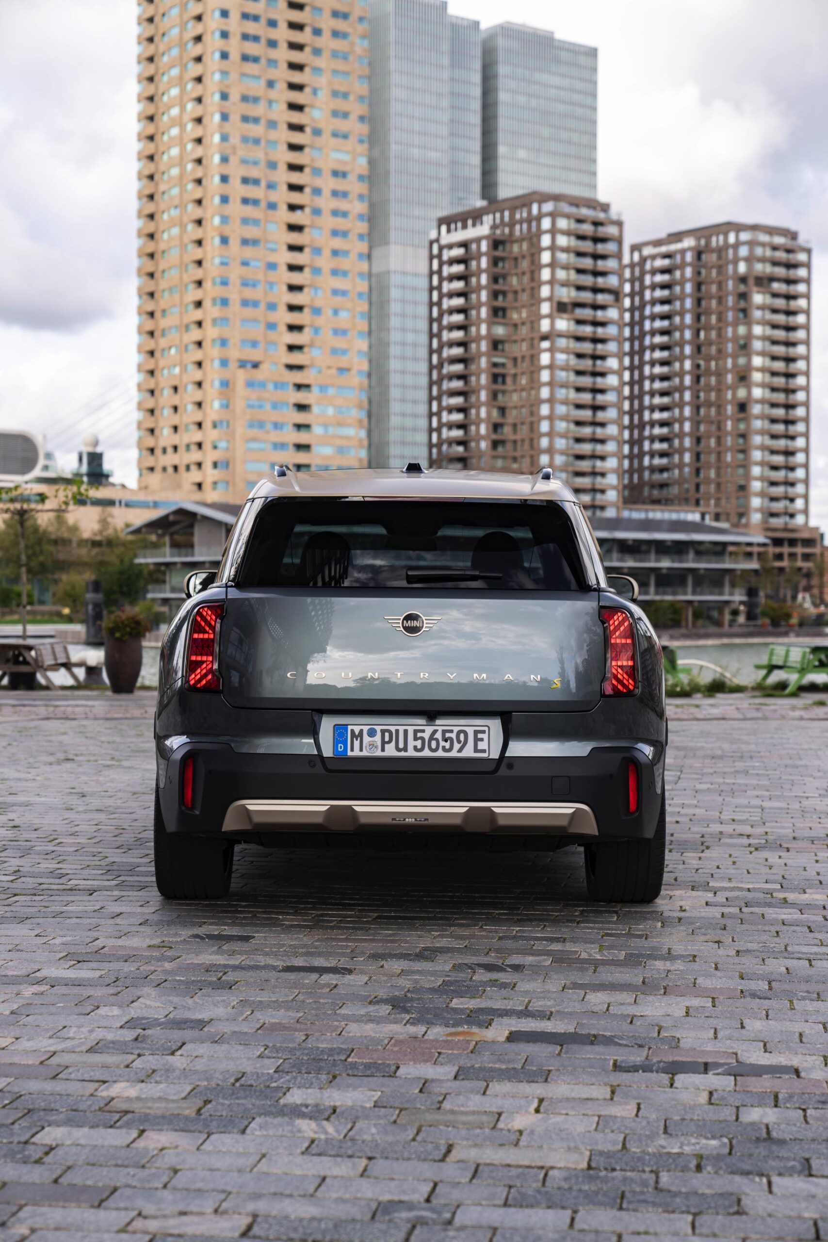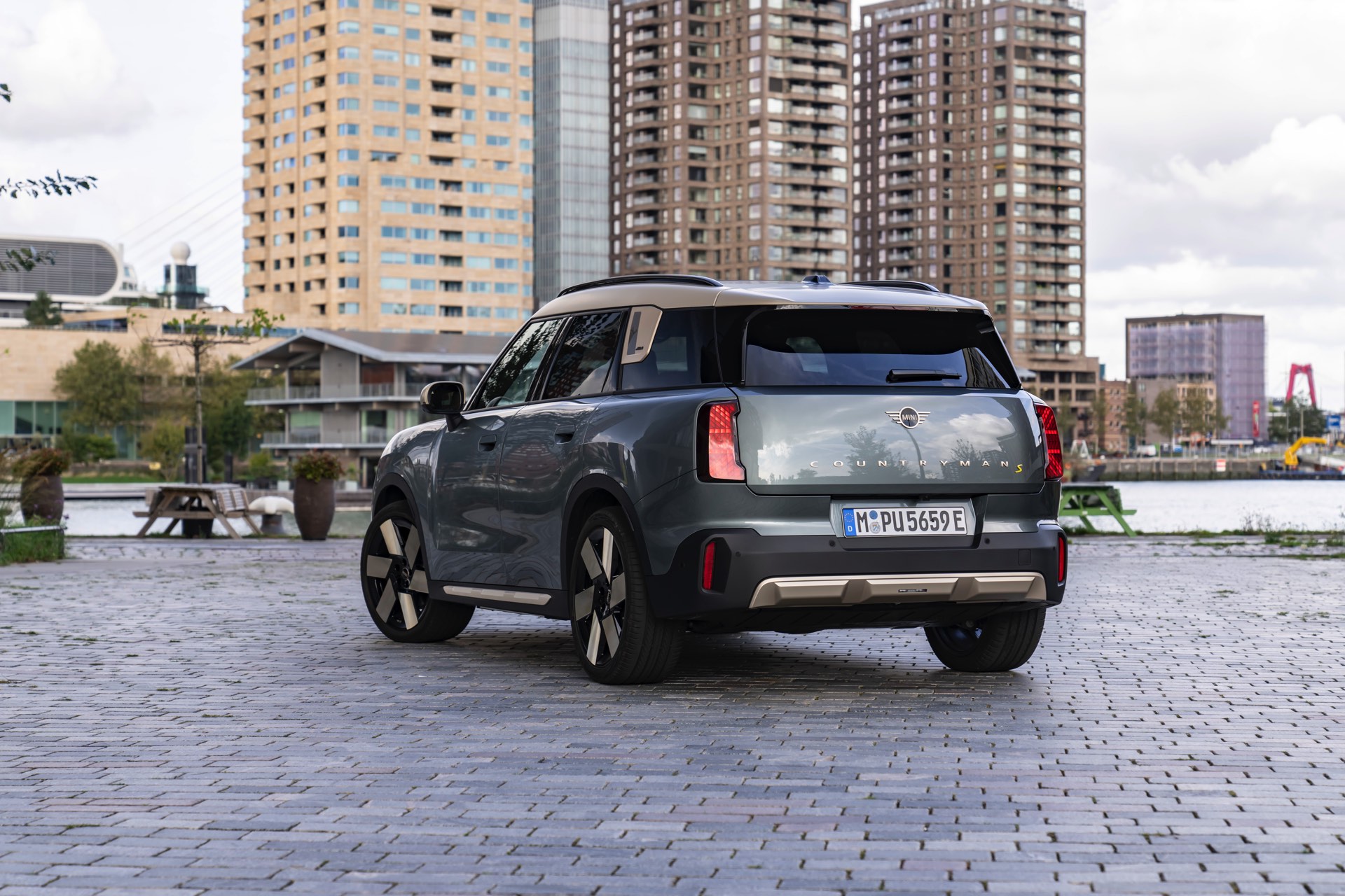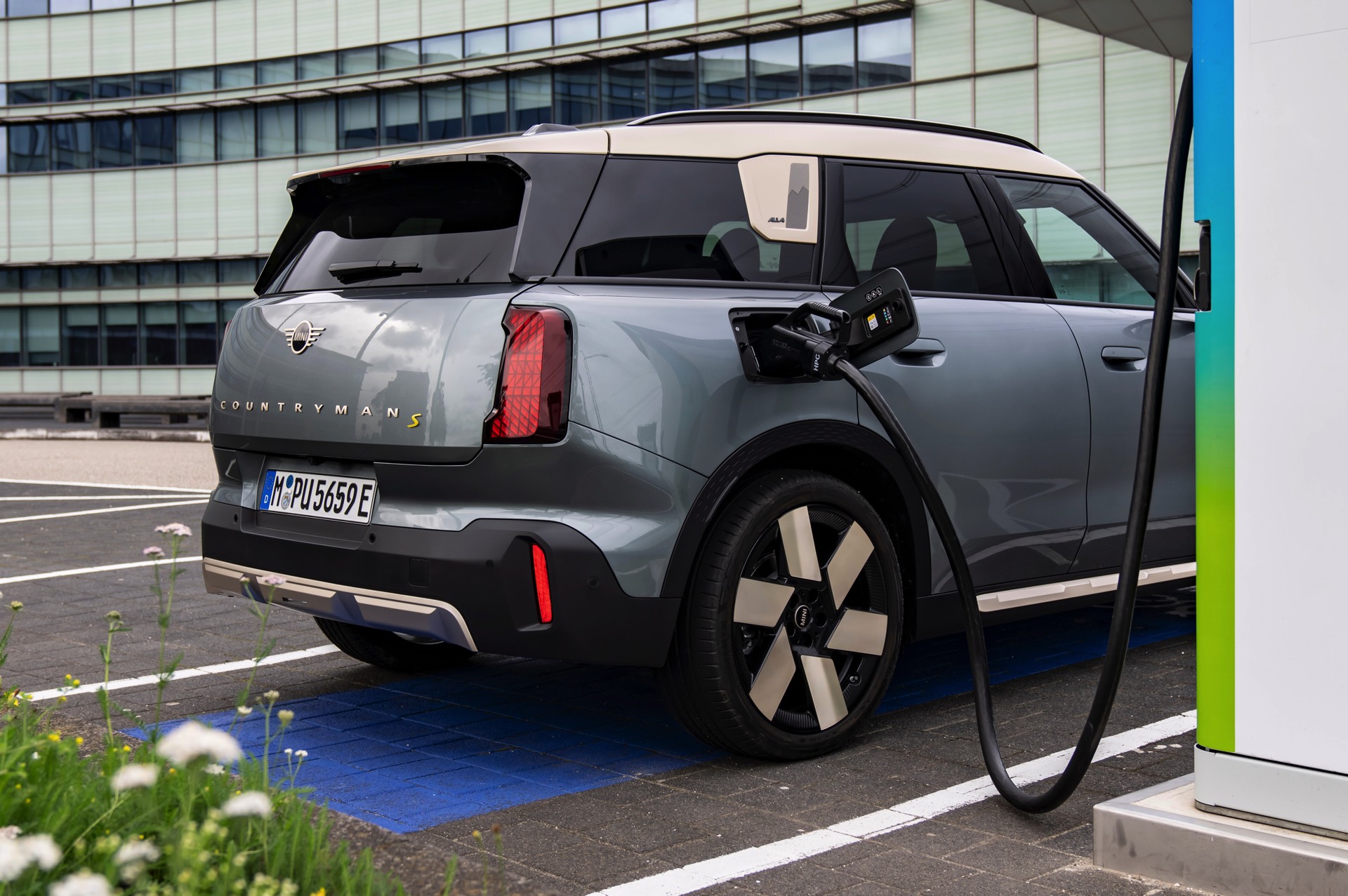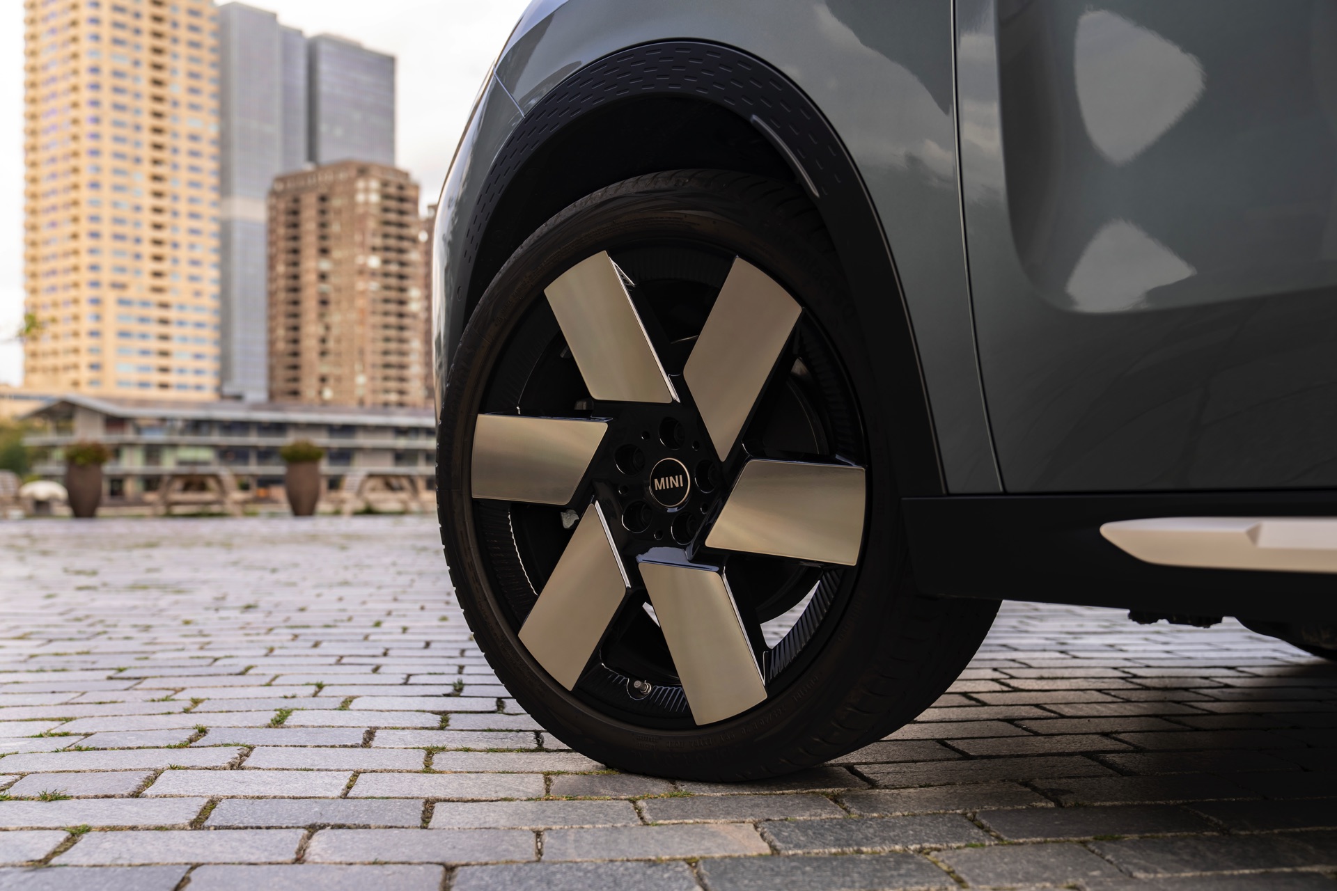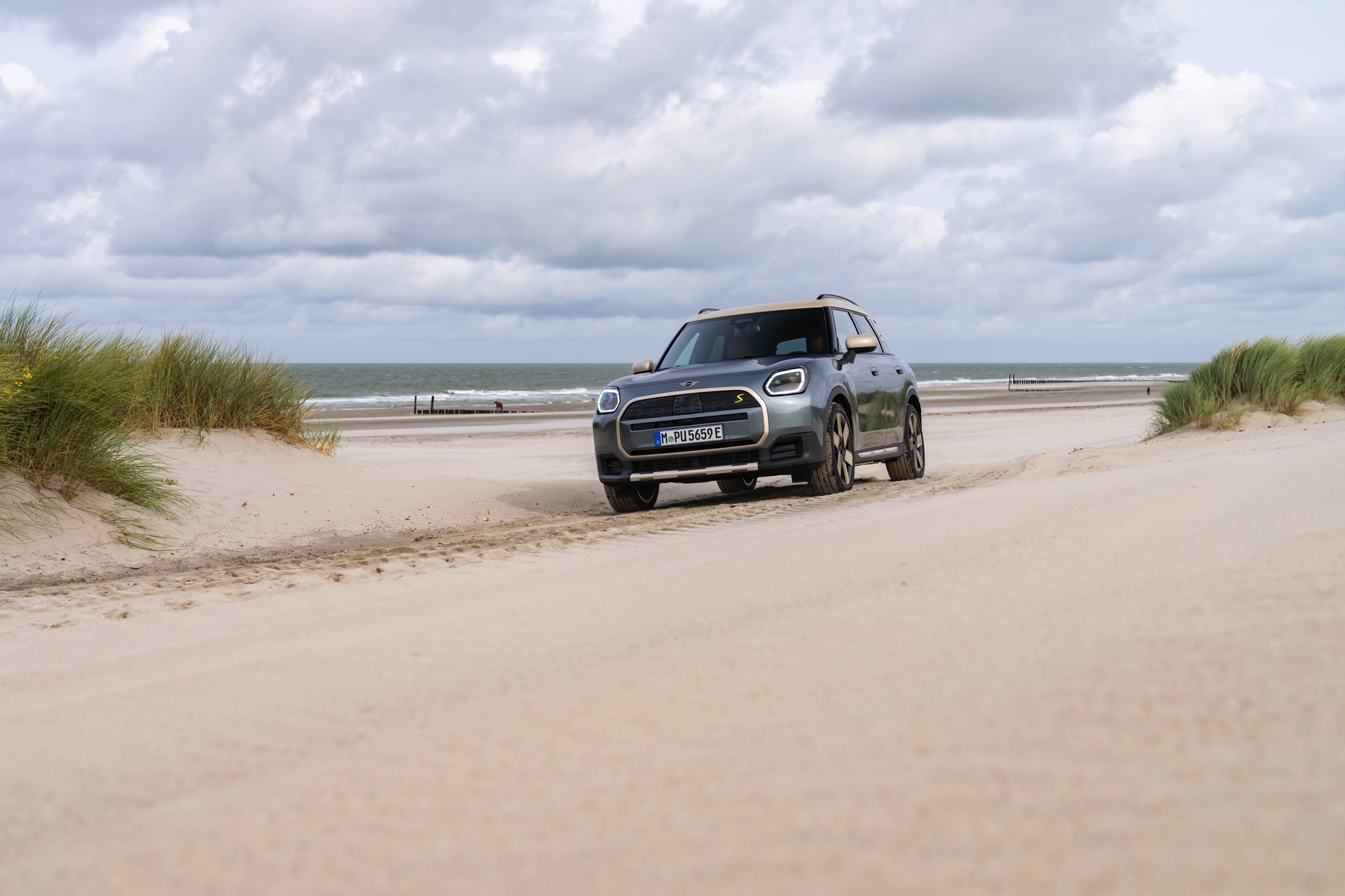Wie sehr sich mit dem über 300 PS starken Elektro-SUV die elegante Seite betonen lässt, zeigt nun auch ein weiteres Foto-Set vom MINI Countryman in seiner Launch-Farbe Smokey Green. Das Dach, die Außenspiegel, die Einfassung des Kühlergrills und einige weitere Details sind in Vibrant Silver ausgeführt, das seidenmatt glänzt und je nach Lichteinfall durchaus an sanftes Gold erinnern kann. Auch die 20 Zoll großen Felgen greifen den eleganten Farbton auf und tragen zum edlen Gesamtlook bei.