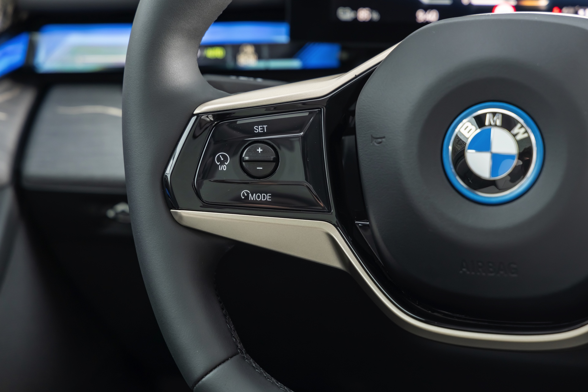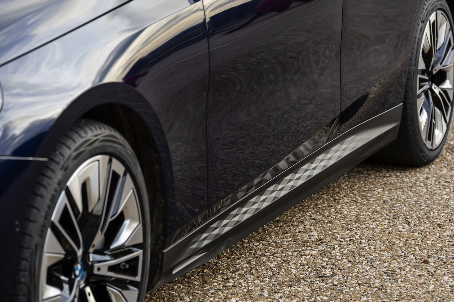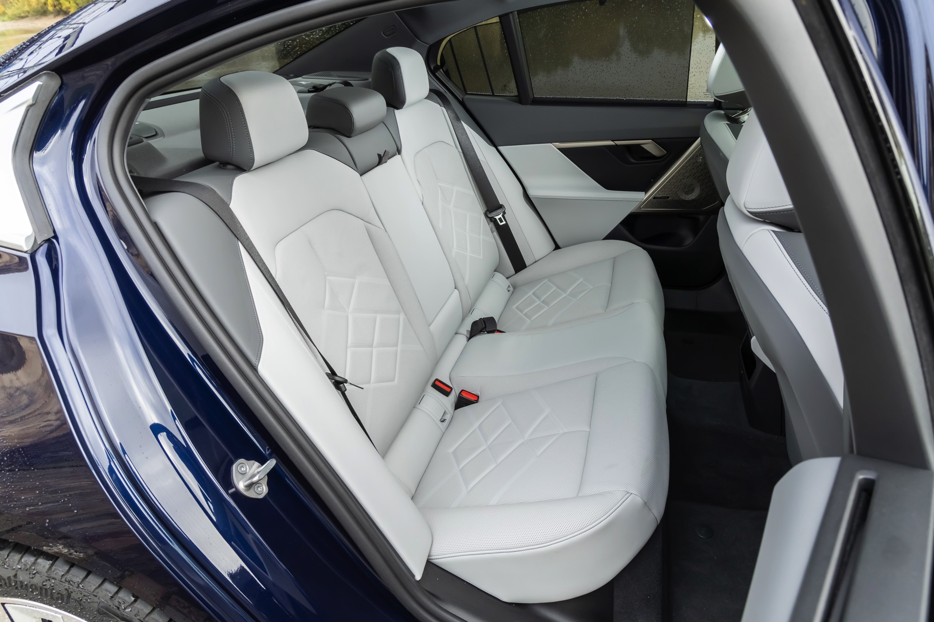 Zum eleganten Auftritt tragen die 20 Zoll großen Aerodynamikräder 937 Multicolor Silber bei, die beim Basis-5er gegen 1.890 Euro Aufpreis erhältlich sind. Das weitgehend geschlossene Felgen-Design ist aerodynamisch günstig und sorgt so im Vergleich zu den serienmäßigen 19-Zöllern trotz breiterer Reifen sogar für einen zusätzlichen Kilometer WLTP-Reichweite. Wer die gleichen 20-Zöller allerdings mit den griffigeren Sportreifen bestellt, verliert im Normzyklus satte 43 Kilometer Reichweite.