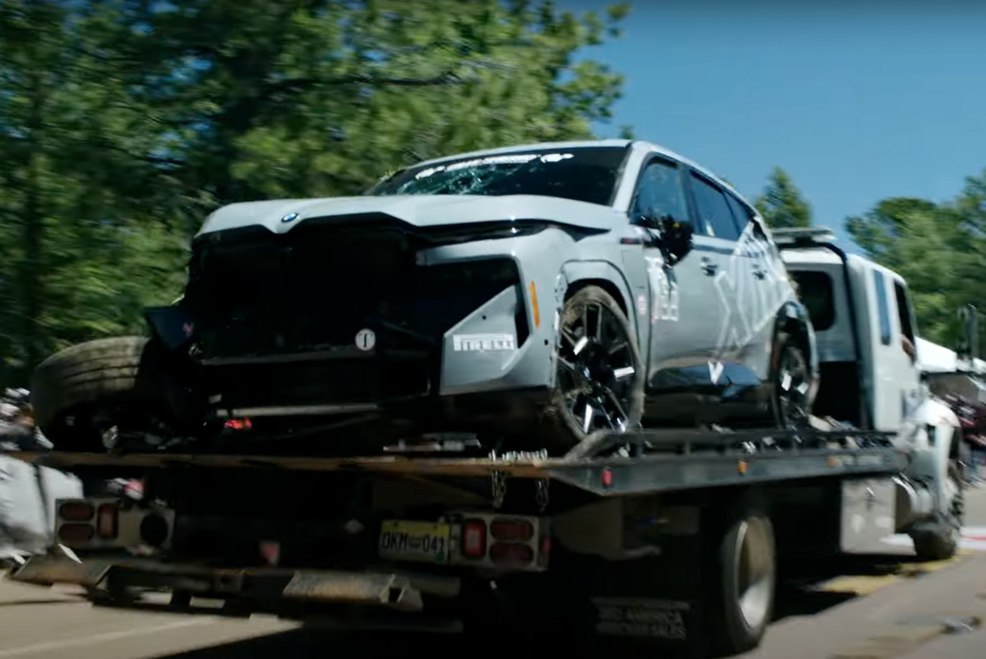 Als es am Tag des Rennens wirklich ernst wird, trübt sich die Stimmung allerdings schnell ein: Im Video sehen wir ab Minute 18:00, wie Matt Mullins den BMW XM Label Red zunächst planmäßig den Berg hinauf jagt, dann aber am Ende einer schnellen Linkskurve nach rechts von der Fahrbahn abkommt und mit der vorderen rechten Seite des Power-SUV einen Baum trifft (ab Minute 18:50). Der Unfall ist so heftig, dass sich der BMW XM überschlägt und der Baum zu Fall gebracht wird.