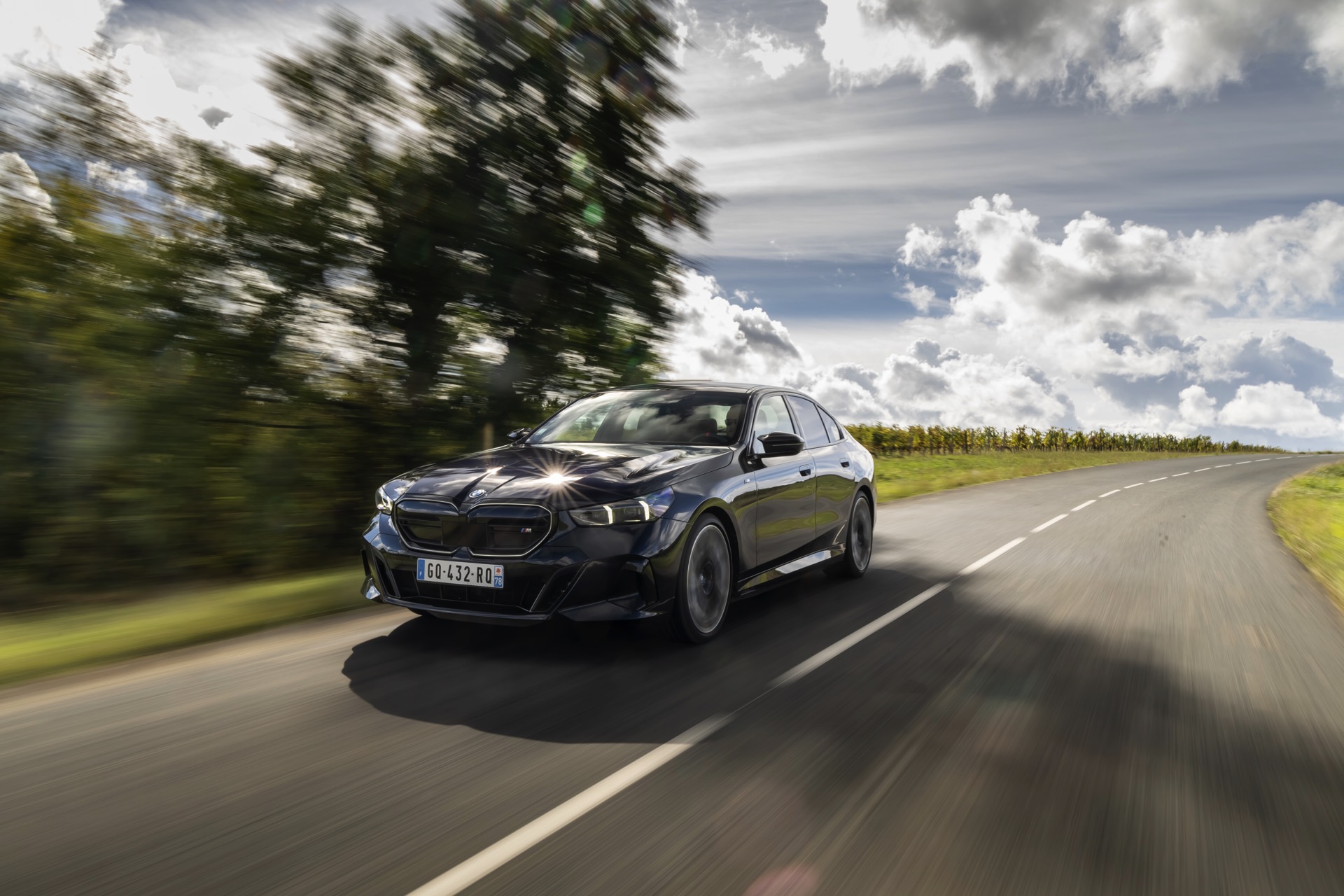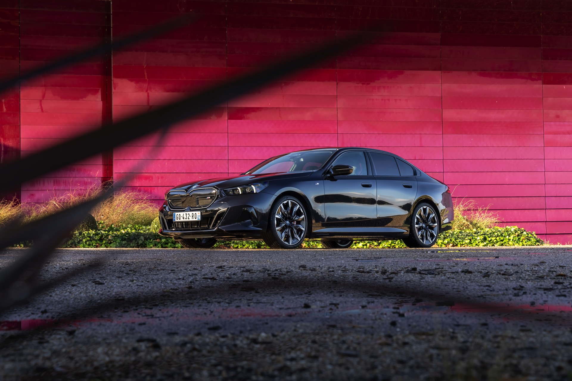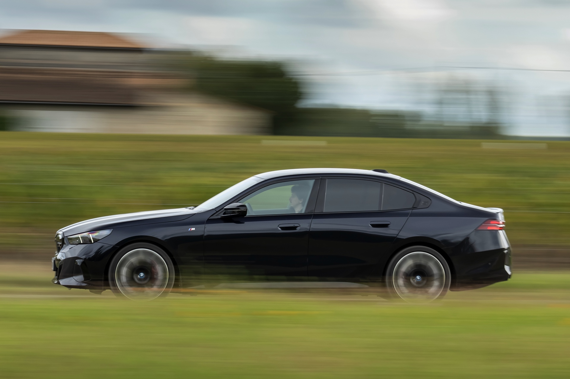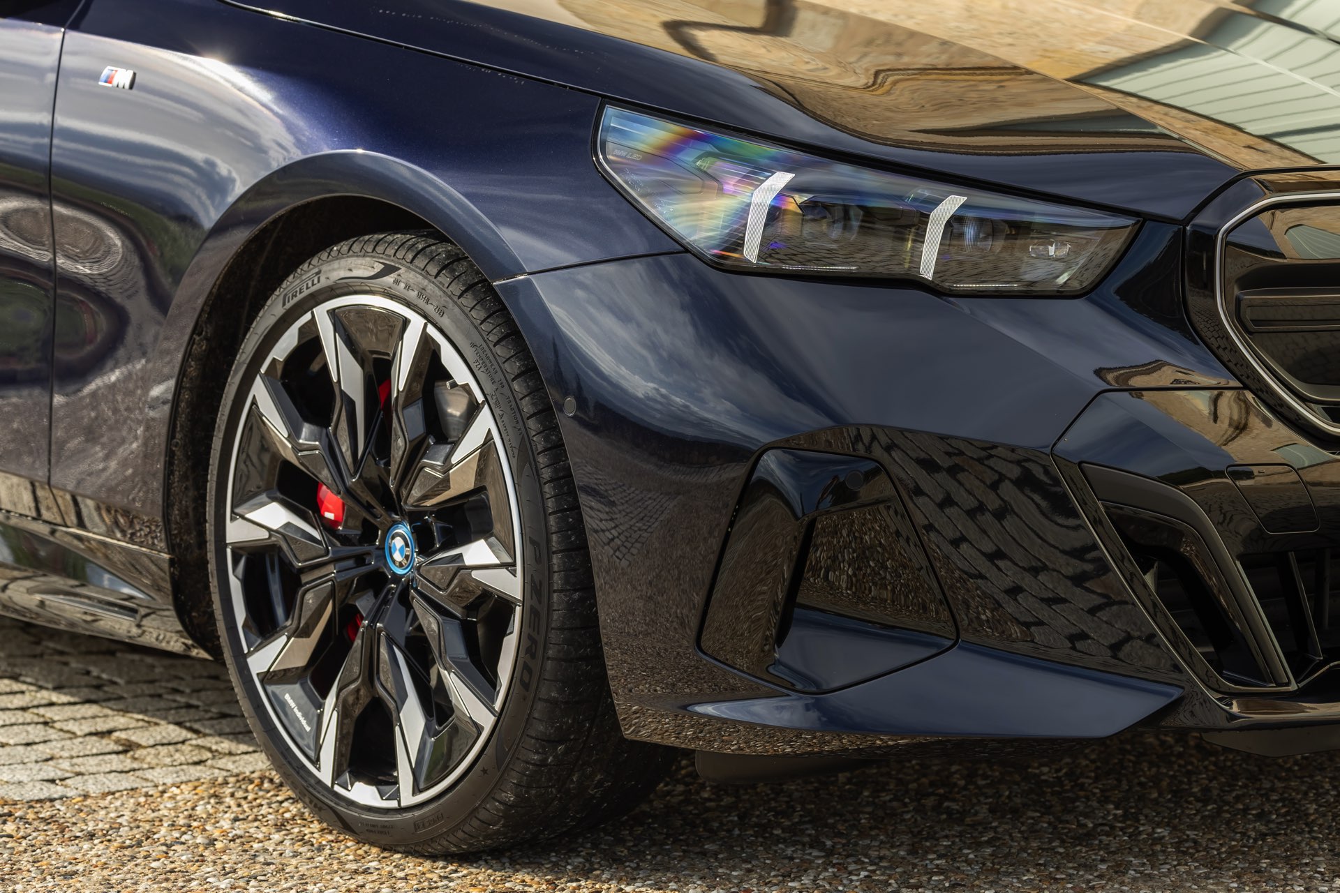 Dass Schwarz nicht gleich Schwarz ist, zeigt ein aktuelles Foto-Set vom neuen BMW i5 M60 in Carbonschwarz Metallic. Der Elektro-5er trägt insgesamt gleich drei unterschiedliche Schwarz-Töne, was bei genauerem Hinsehen und im richtigen Licht auch gut erkennbar ist. Am klarsten ist der Kontrast zwischen dem im Sonnenlicht dezent dunkelblau schimmernden Carbonschwarz und dem deutlich intensiveren Hochglanzschwarz von Lufteinlass-Blenden, Seitenschwellern, Heckschürzen-Einsatz sowie Nieren und Fenster-Einfassungen der Shadow Line mit erweiterten Umfängen, eine dritte Schattierung bringen die schwarzen Elemente der 21 Zoll großen BMW Individual Aerodynamikräder 954 I Bicolor Jetblack.