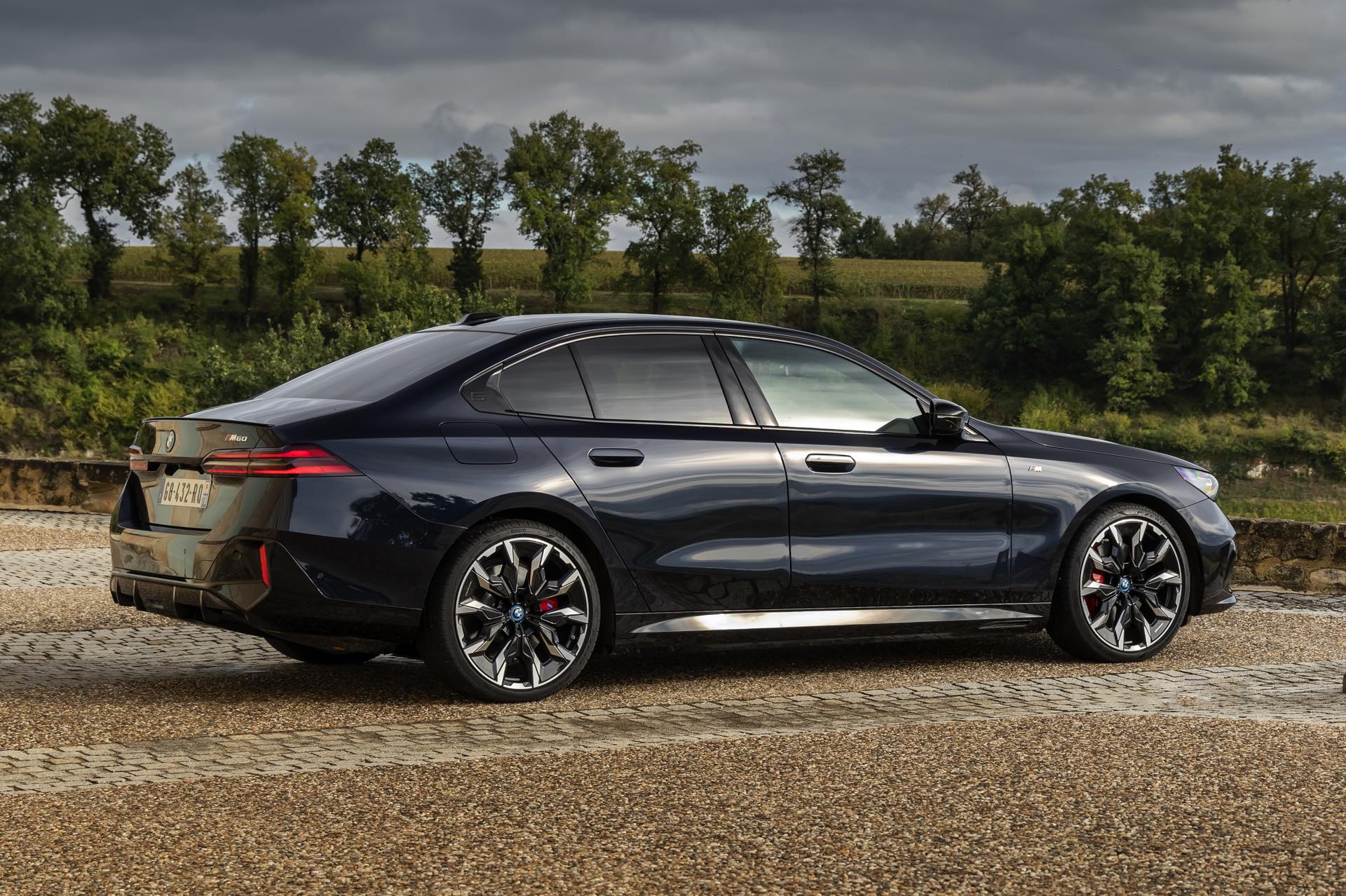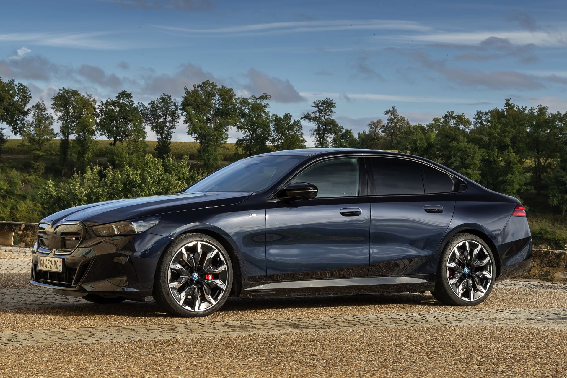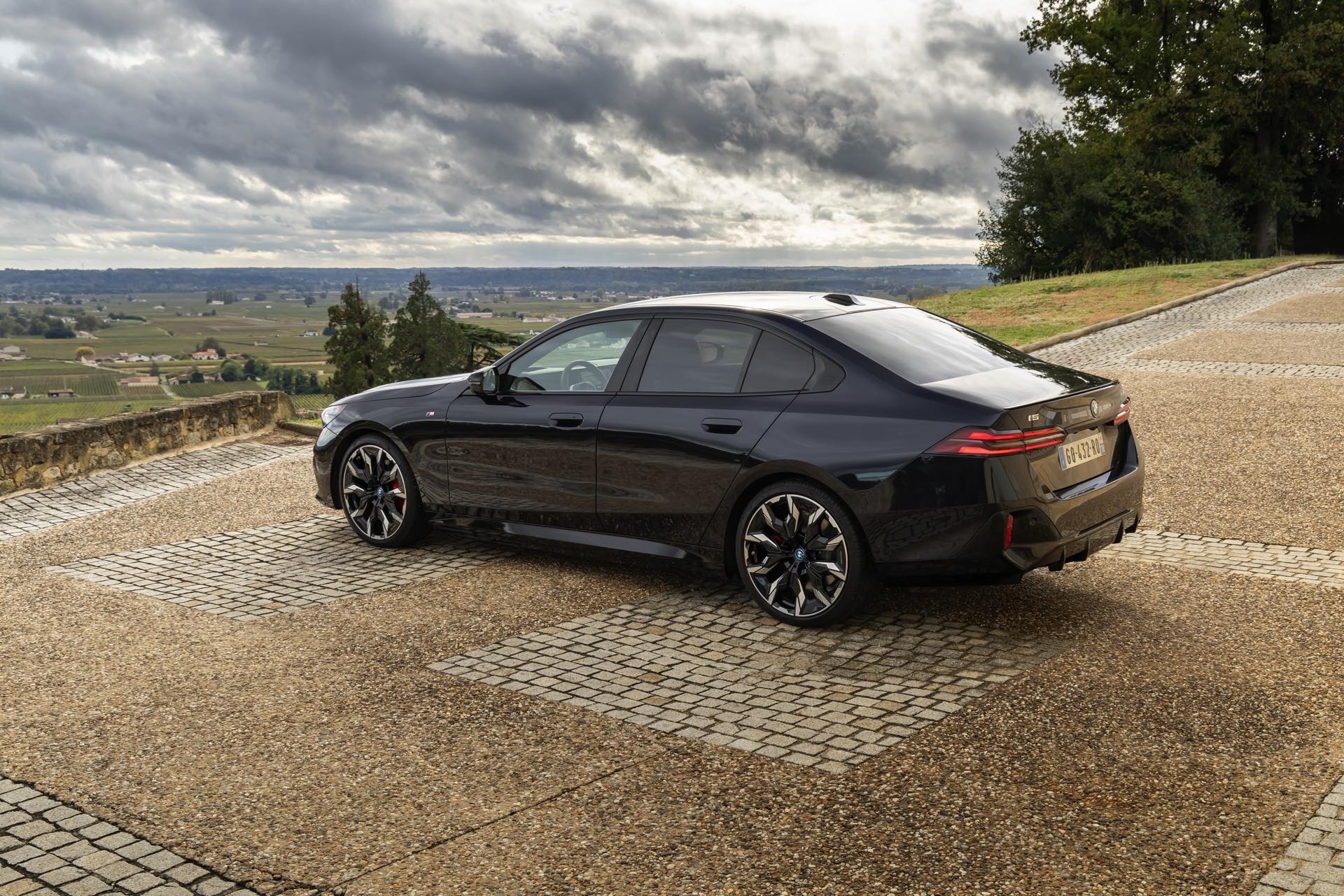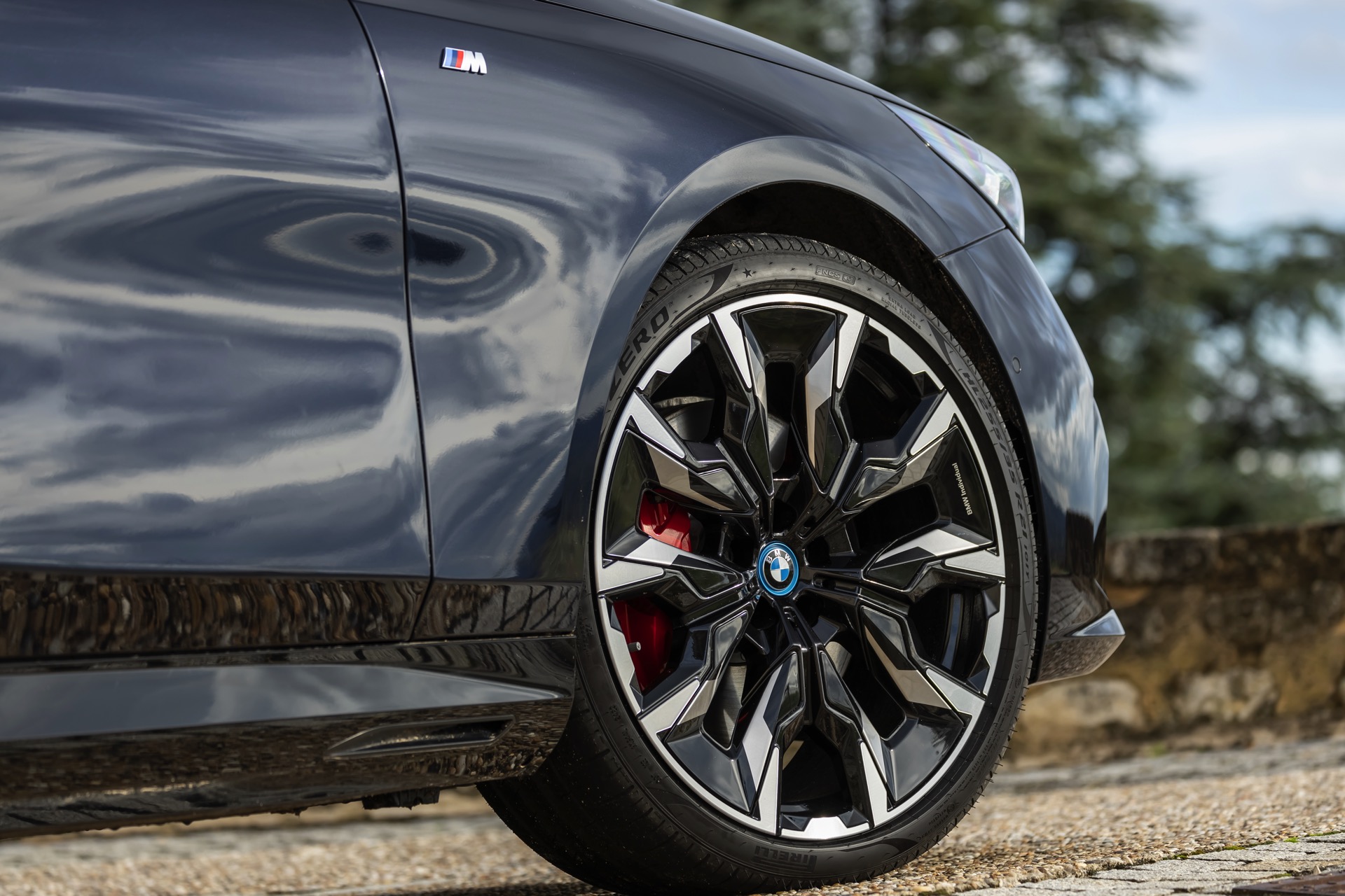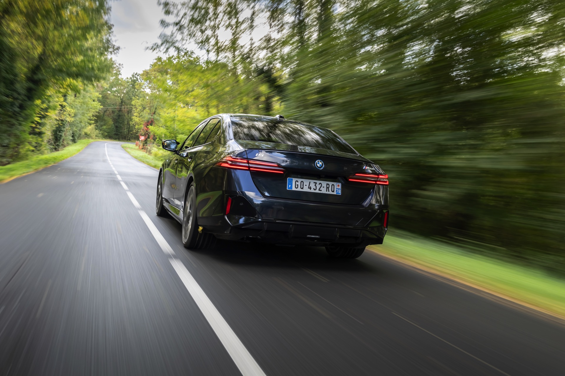 Dass Schwarz nicht gleich Schwarz ist, zeigt ein aktuelles Foto-Set vom neuen BMW i5 M60 in Carbonschwarz Metallic. Der Elektro-5er trägt insgesamt gleich drei unterschiedliche Schwarz-Töne, was bei genauerem Hinsehen und im richtigen Licht auch gut erkennbar ist. Am klarsten ist der Kontrast zwischen dem im Sonnenlicht dezent dunkelblau schimmernden Carbonschwarz und dem deutlich intensiveren Hochglanzschwarz von Lufteinlass-Blenden, Seitenschwellern, Heckschürzen-Einsatz sowie Nieren und Fenster-Einfassungen der Shadow Line mit erweiterten Umfängen, eine dritte Schattierung bringen die schwarzen Elemente der 21 Zoll großen BMW Individual Aerodynamikräder 954 I Bicolor Jetblack.