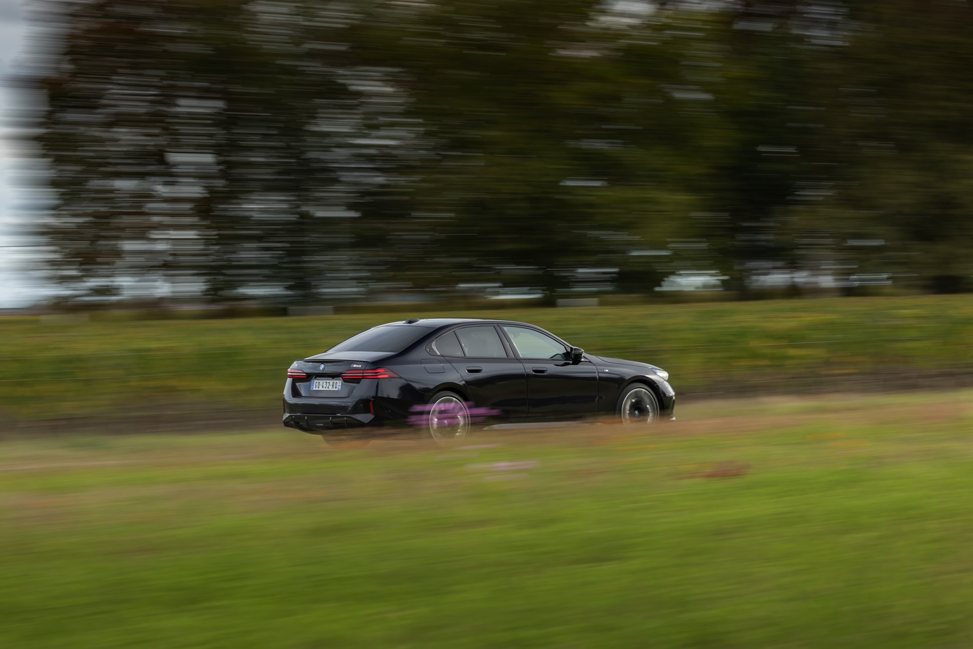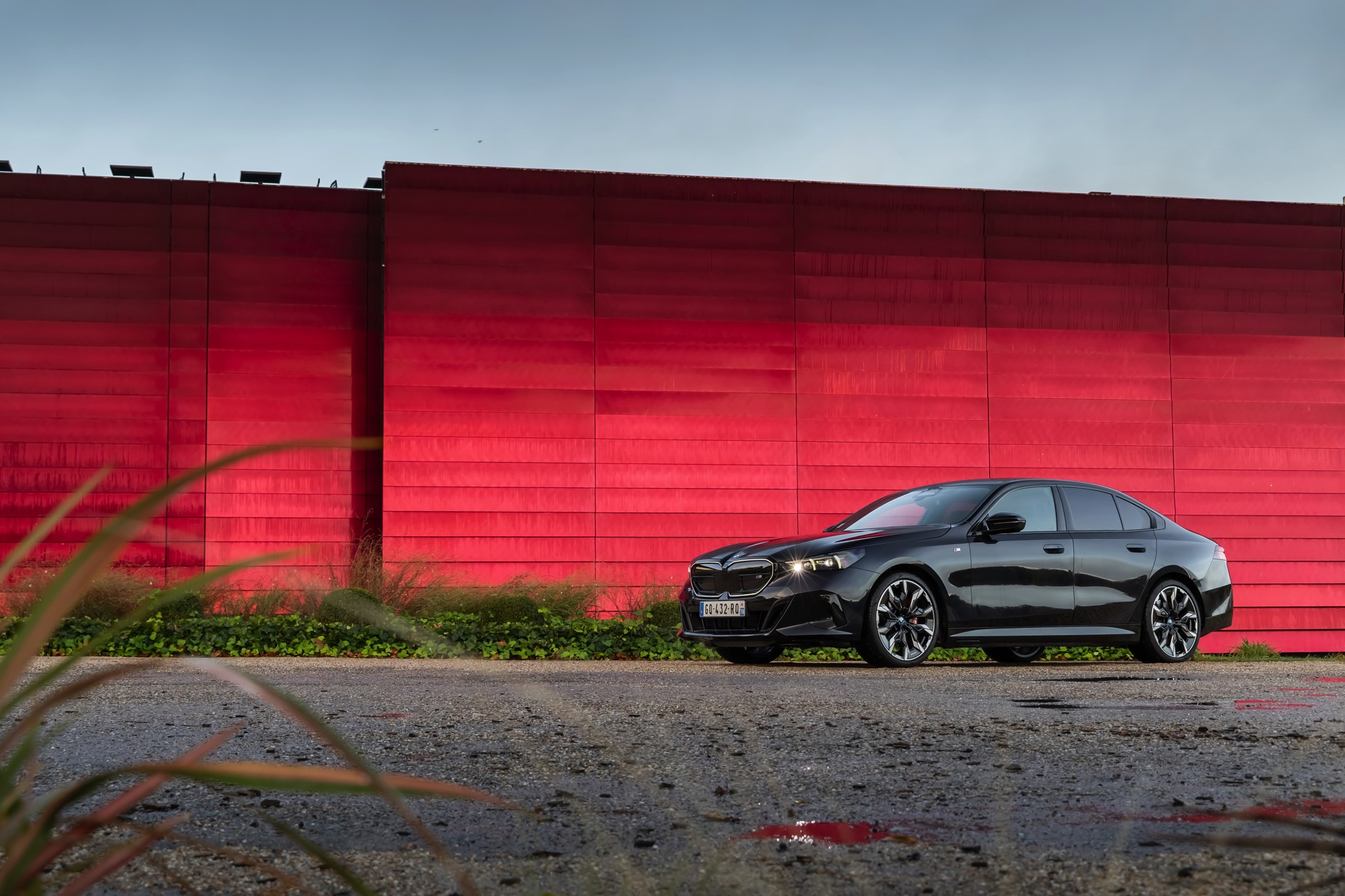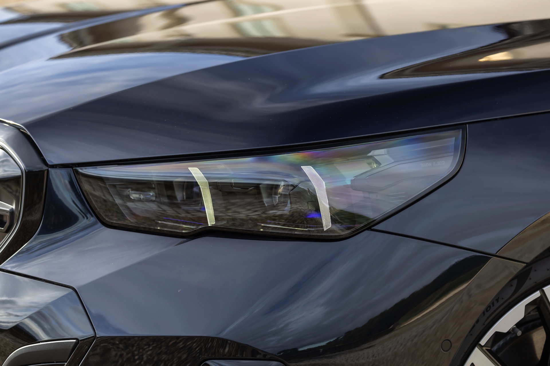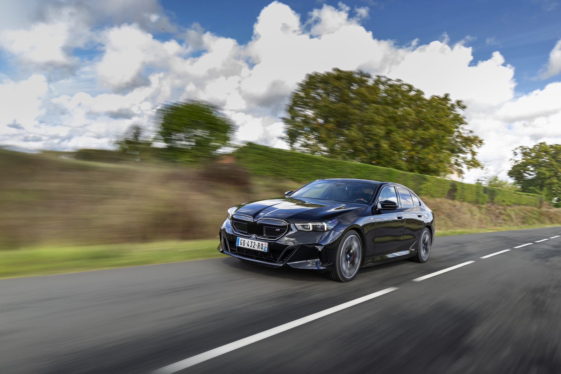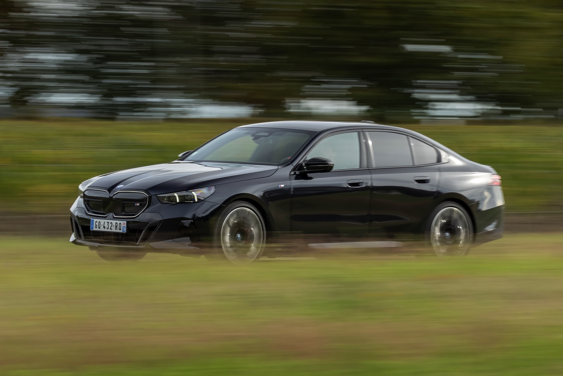 Dass Schwarz nicht gleich Schwarz ist, zeigt ein aktuelles Foto-Set vom neuen BMW i5 M60 in Carbonschwarz Metallic. Der Elektro-5er trägt insgesamt gleich drei unterschiedliche Schwarz-Töne, was bei genauerem Hinsehen und im richtigen Licht auch gut erkennbar ist. Am klarsten ist der Kontrast zwischen dem im Sonnenlicht dezent dunkelblau schimmernden Carbonschwarz und dem deutlich intensiveren Hochglanzschwarz von Lufteinlass-Blenden, Seitenschwellern, Heckschürzen-Einsatz sowie Nieren und Fenster-Einfassungen der Shadow Line mit erweiterten Umfängen, eine dritte Schattierung bringen die schwarzen Elemente der 21 Zoll großen BMW Individual Aerodynamikräder 954 I Bicolor Jetblack.