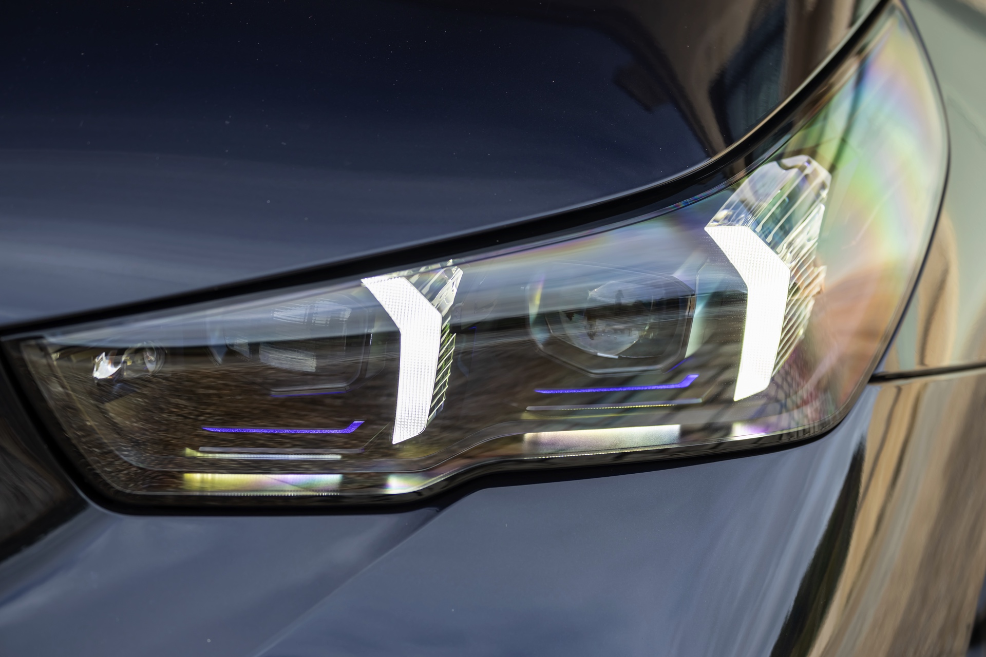 Kein Zweifel besteht darin, dass ein derart konfigurierter 5er im richtigen Licht ein echter Hingucker sein kann: Während er zunächst komplett schwarz erscheint, fallen nach und nach die Nuancen der unterschiedlichen Lackierungen ins Auge. Die im geparkten Zustand völlig schwarz erscheinende Niere erwacht mit dem Öffnen des Fahrzeugs zum Leben, ihre Einfassung wird auch während der Fahrt mit einem dünnen LED-Band illuminiert. Neben der Niere mit ihren horizontalen Streben sind auch die M-Außenspiegel ein klarer Hinweis auf den M Performance-5er.