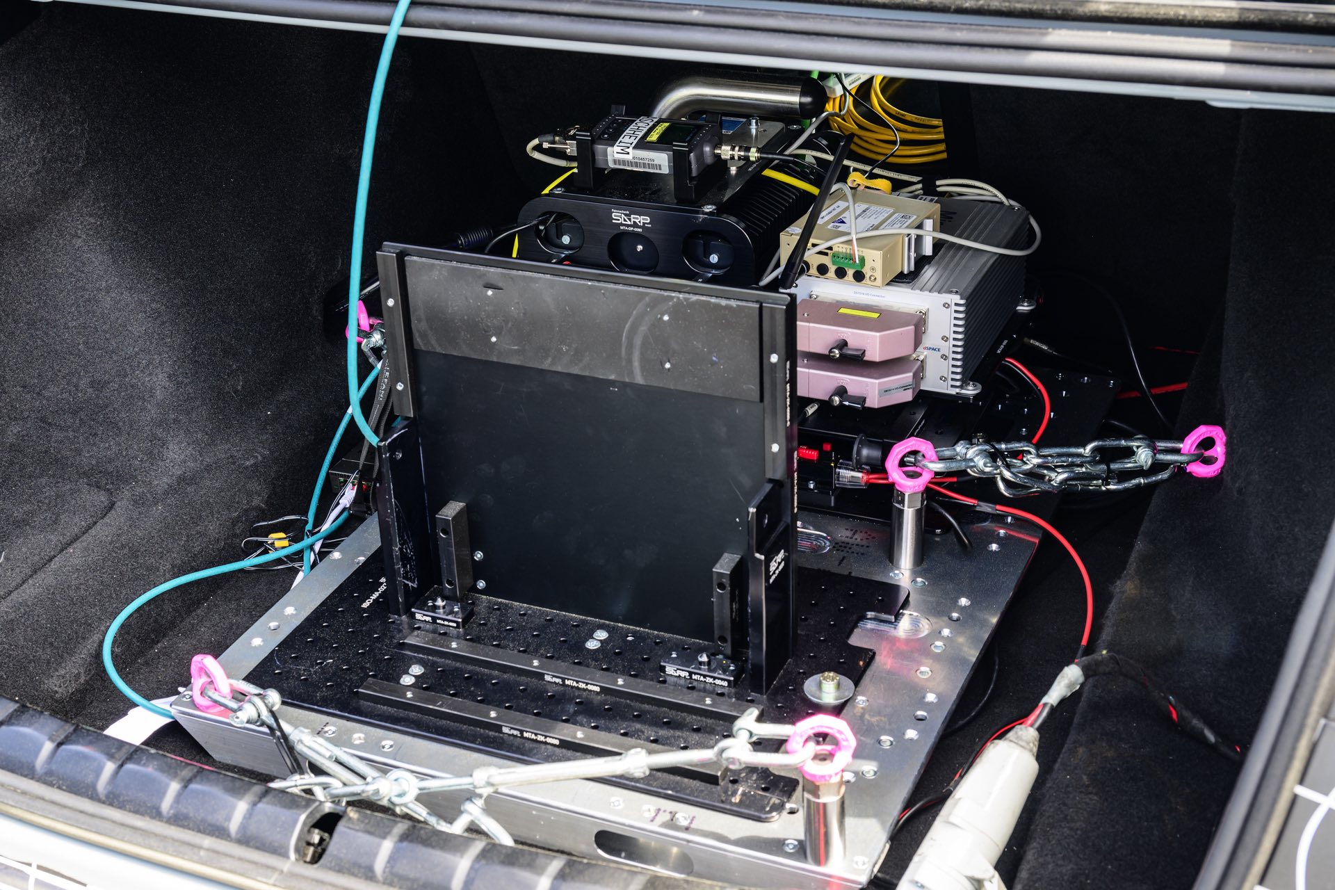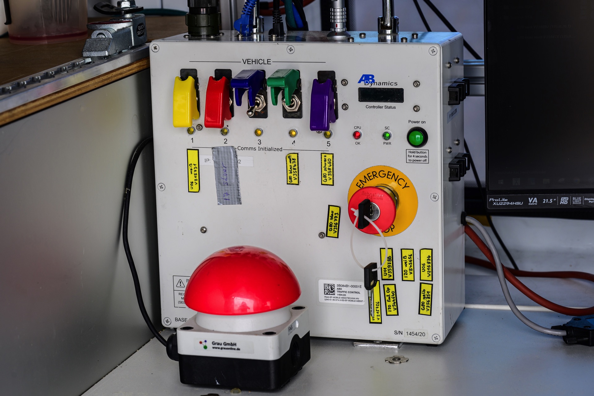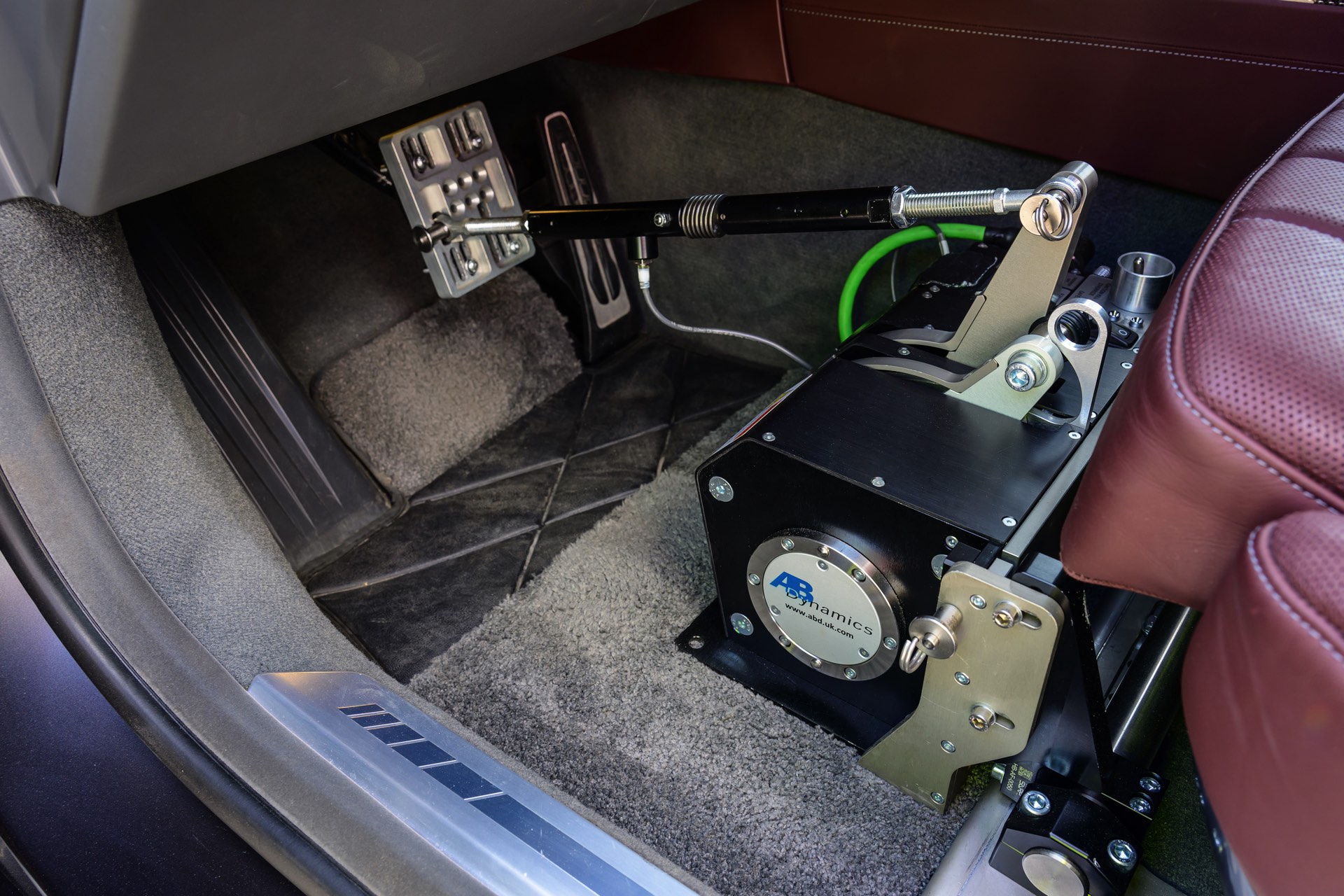 Dank der heutigen Systeme zum autonomen Fahren muss für das Driverless Development deutlich weniger zusätzliche Technik verbaut werden. Zur Unterstützung der Notaus-Funktion kann aber auch ein Roboter im Fahrer-Fußraum installiert werden, der zur Not mit voller Kraft auf das Bremspedal tritt und das Fahrzeug stoppt.
