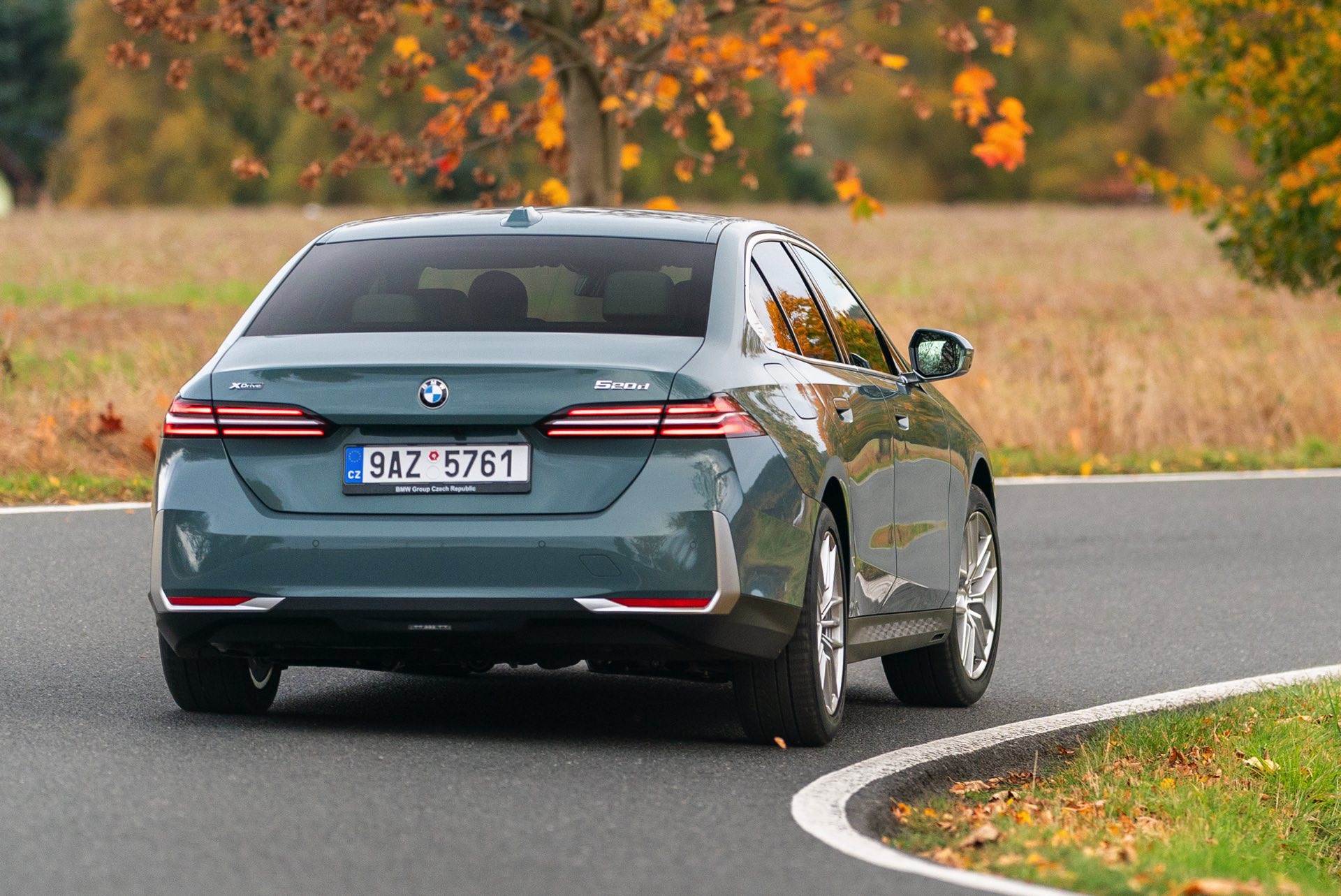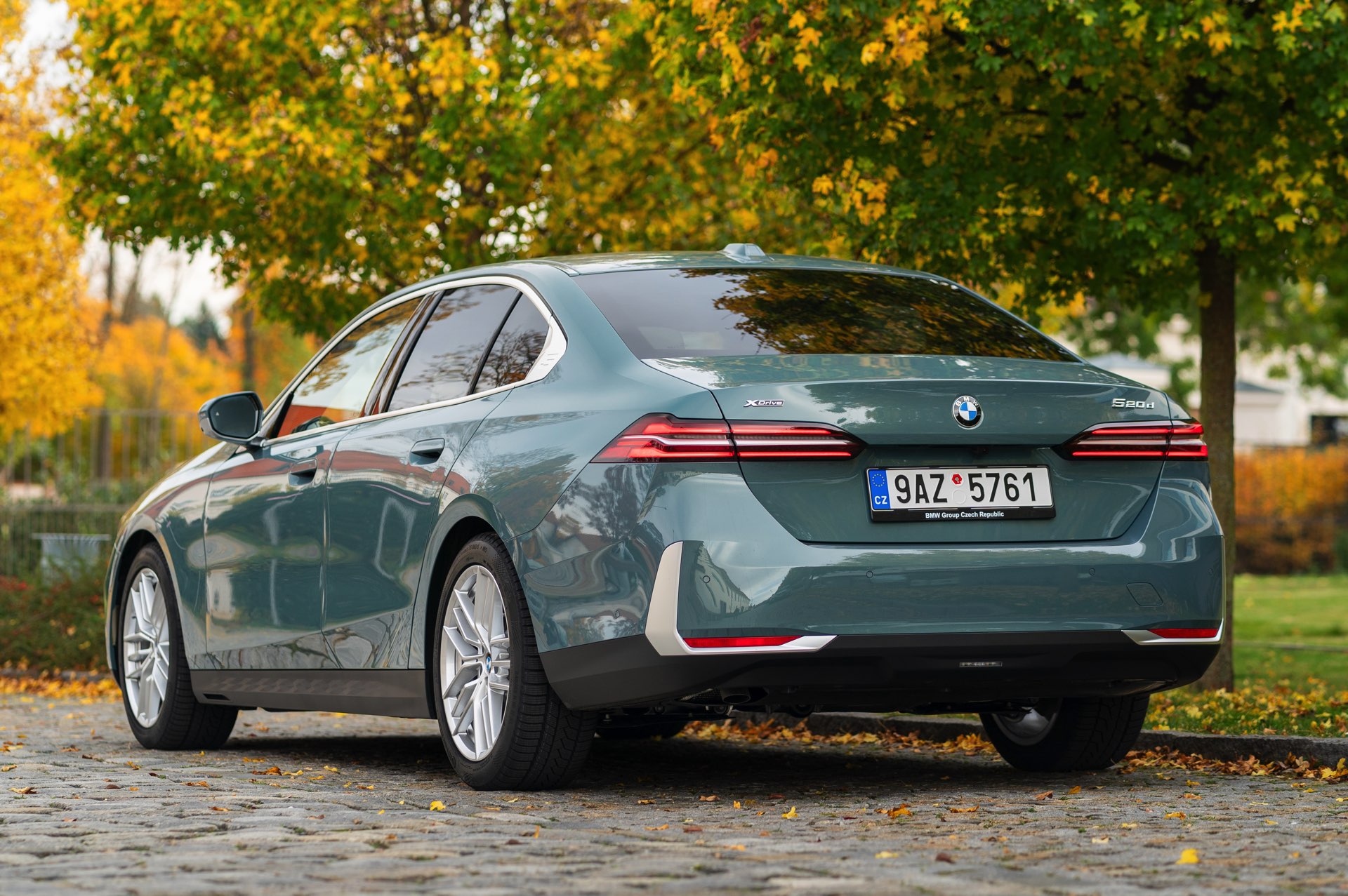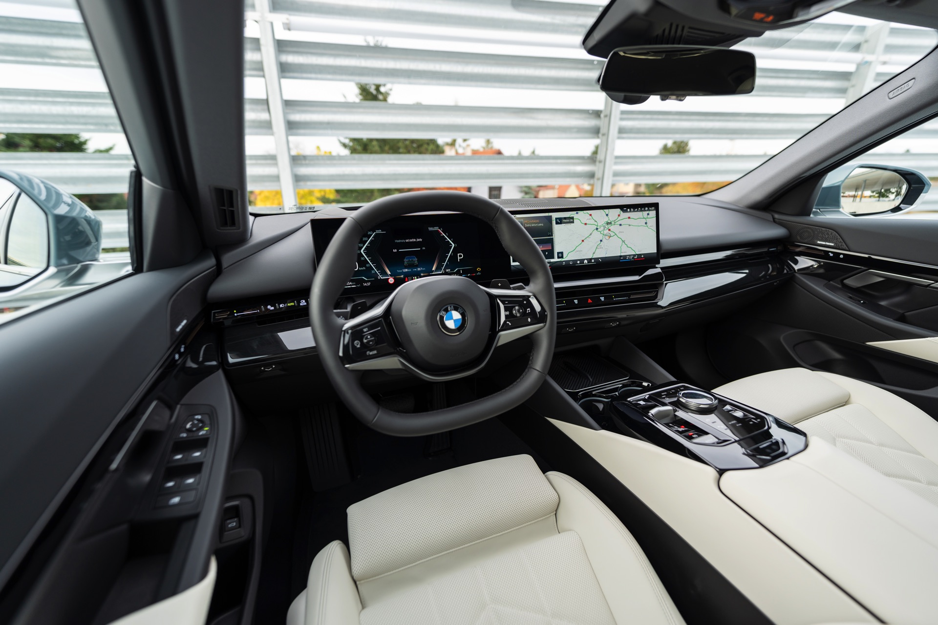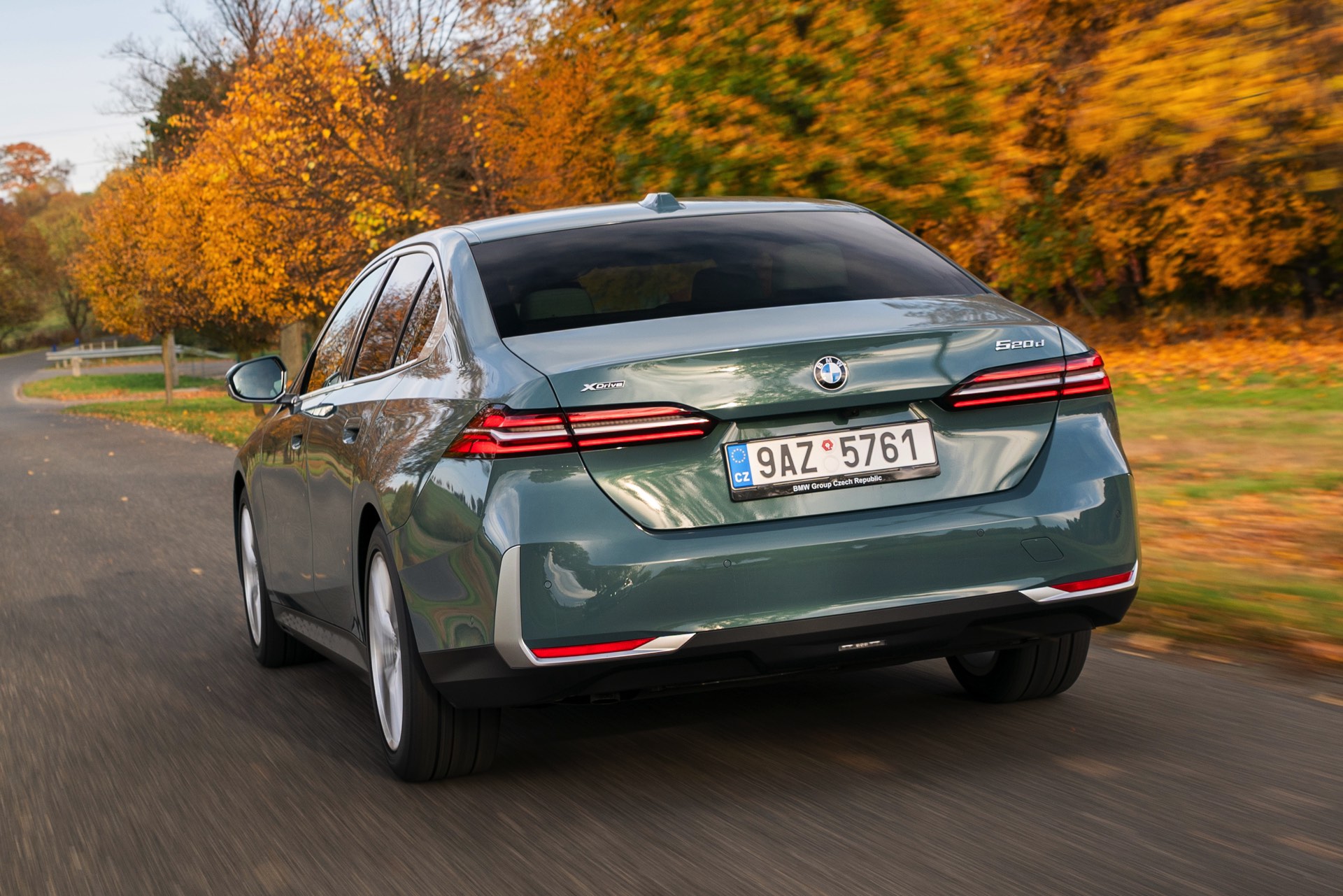 Wie die Schriftzüge am Heck verraten, handelt es sich beim gezeigten 5er um den neuen BMW 520d xDrive mit 197 PS Systemleistung. Der bewährte Vierzylinder-Diesel B47 wird dabei von einem 48-Volt-Bordnetz unterstützt und beschleunigt die Limousine in 7,3 Sekunden von 0 auf 100, die Höchstgeschwindigkeit liegt bei 228 km/h. Wer auf die Traktion des Allradantriebs verzichten kann, kann mit dem heckgetriebenen 520d auch 233 km/h schaffen und zudem von einem noch etwas geringeren Verbrauch profitieren.