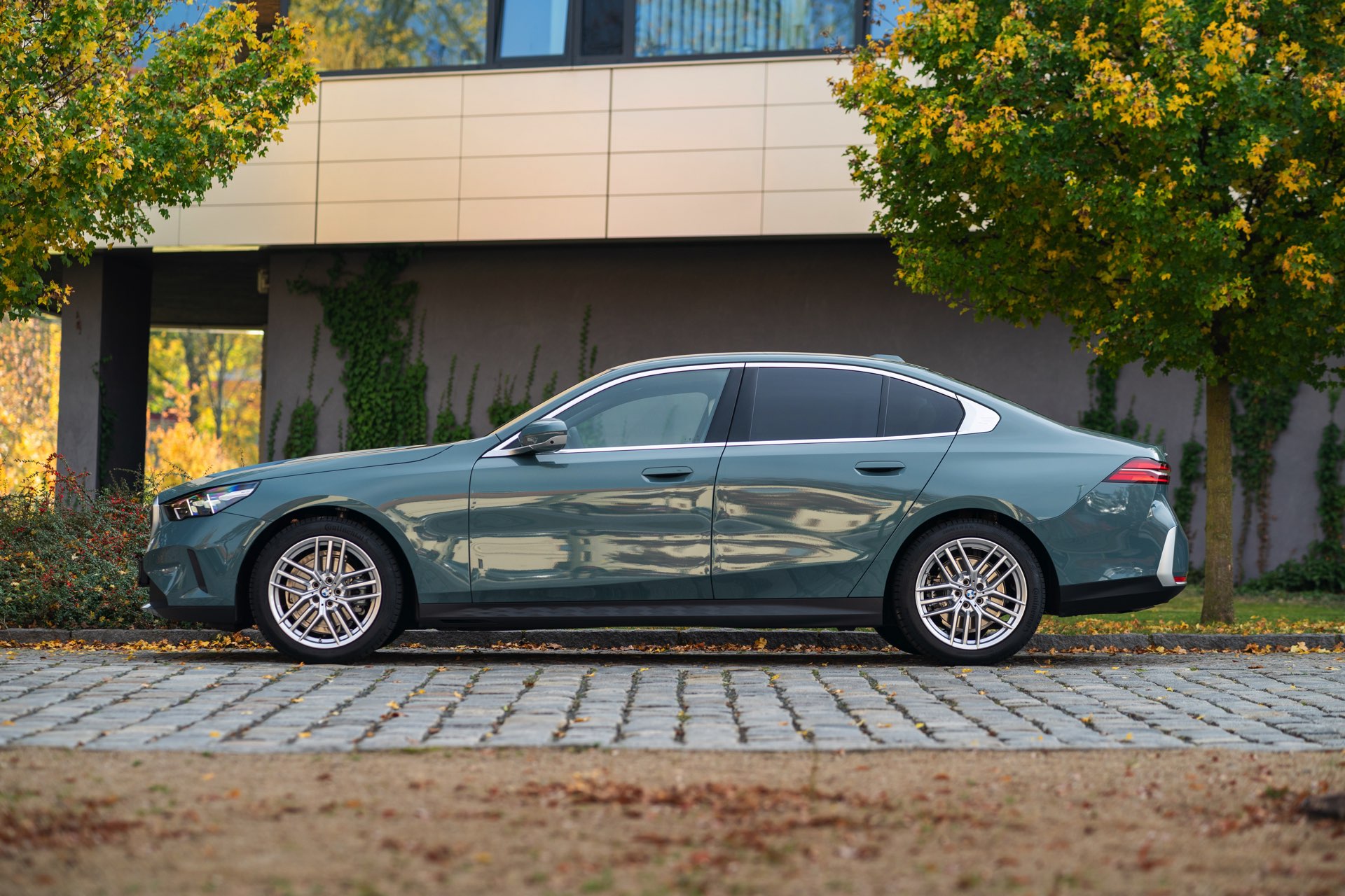Anders als auf den meisten Pressefotos präsentiert sich der neue BMW 5er (G60) in einer Foto-Serie aus der Tschechischen Republik: Statt üppiger Ausstattung für viele tausend Euro Aufpreis sehen wir den 520d in einer ausgesprochen zurückhaltenden Basis-Konfiguration, die sich gemessen an der Vielzahl der Möglichkeiten kaum vom Grundpreis der Business-Limousine abhebt. Der auf den Fotos gezeigte 5er trägt dabei eine sanft-grüne Lackierung in Cape York Green Metallic, die wir bisher nur mit dem teuren M Sport Pro-Paket zu Gesicht bekommen hatten.