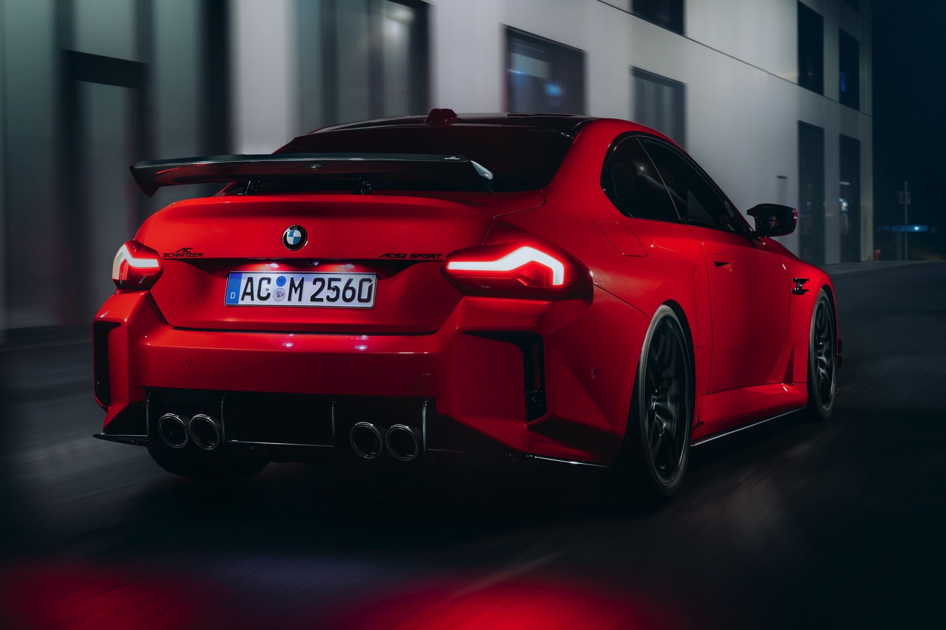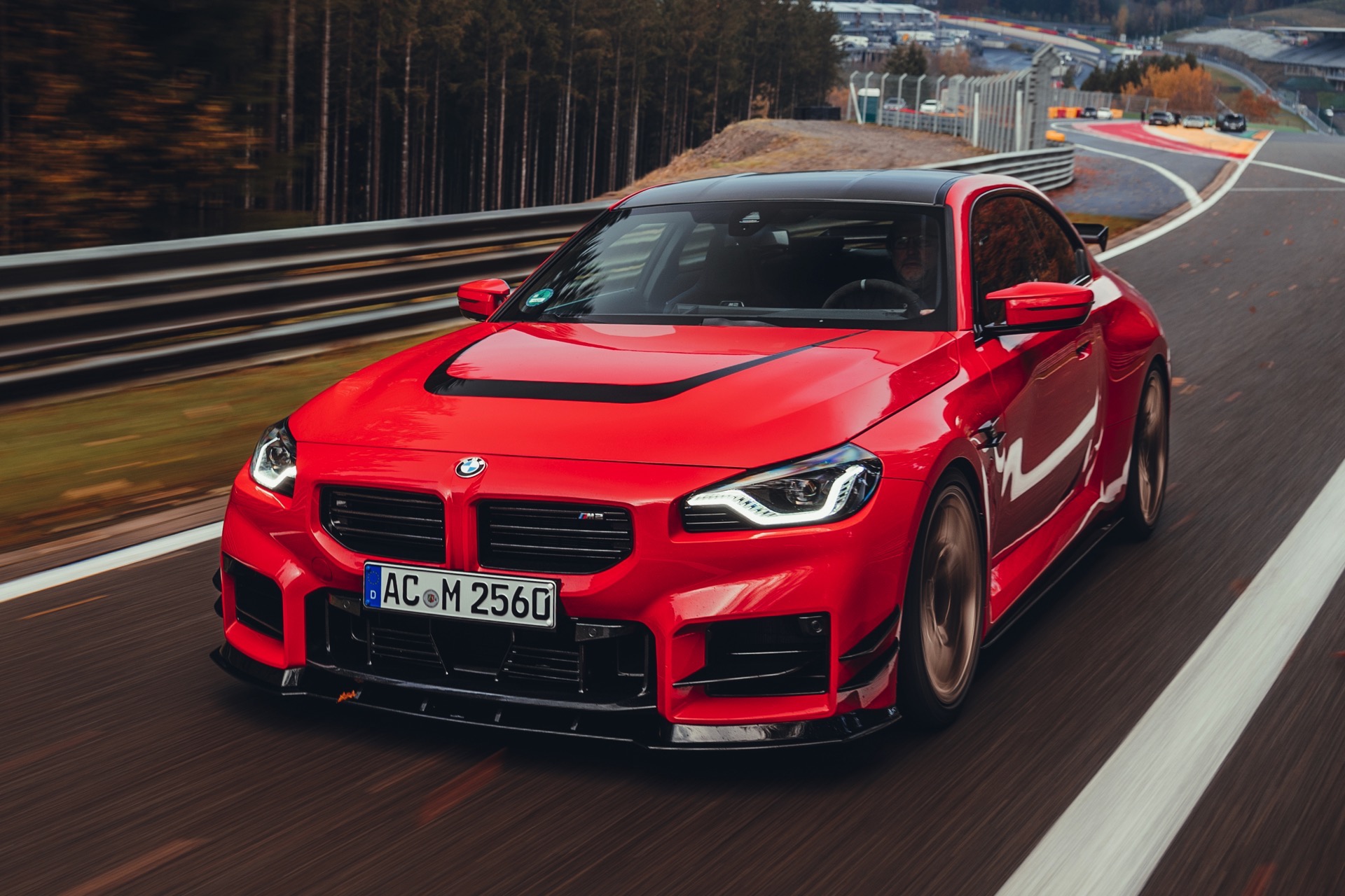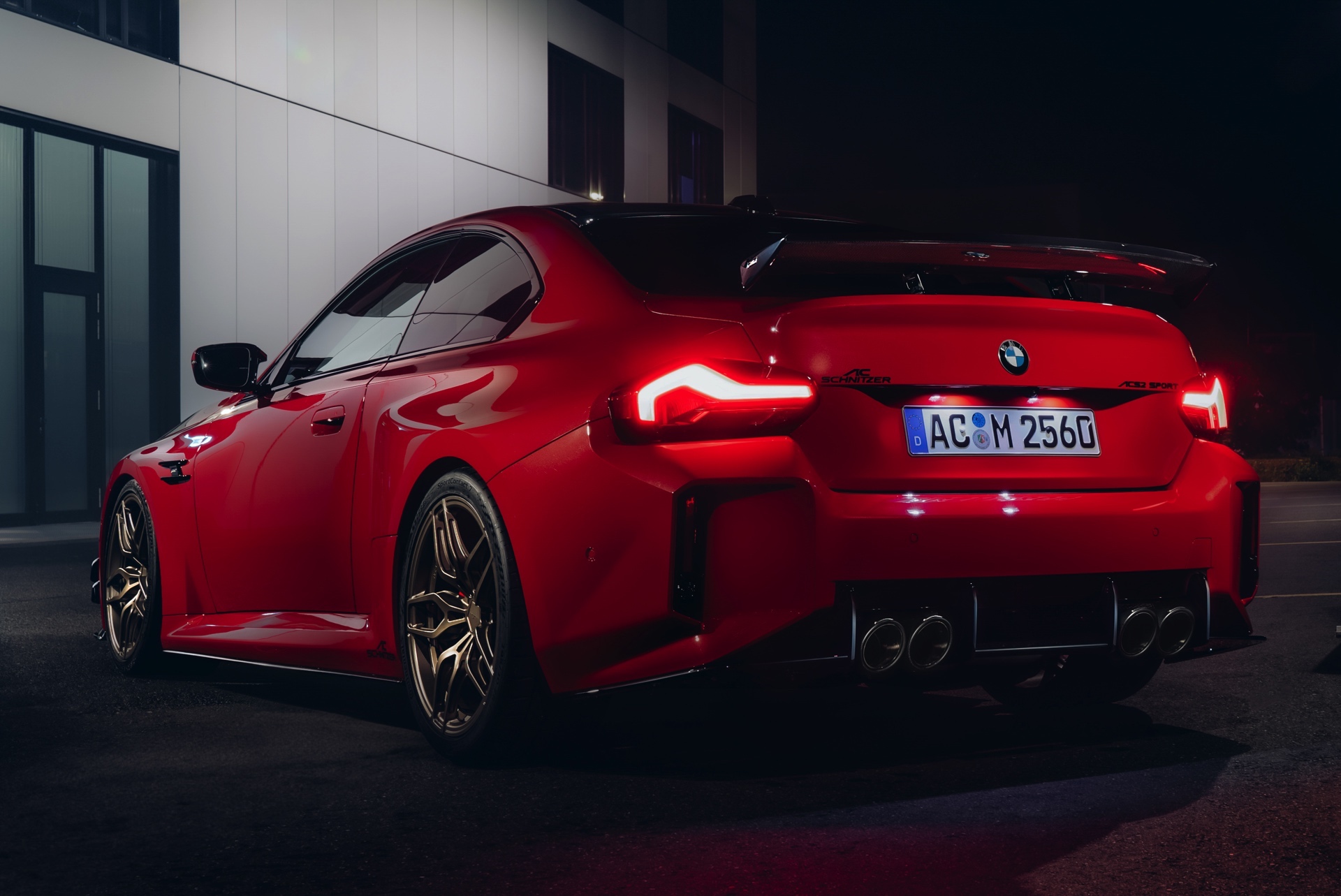 Auf die ersten Erlkönig-Fotos aus Spa folgt nun die vollständige Enthüllung des neuen BMW M2 (G87) mit AC Schnitzer-Tuning. Der nach dem Besuch in Aachen noch selbstbewusster auftretende Kompaktsportler feiert Anfang Dezember auf der Essen Motor Show 2023 seine offizielle Weltpremiere, schon jetzt zeigt er sich auf ersten Fotos den kritischen Blicken der Tuning-Szene. Für den ersten ungetarnten Aufschlag hat sich AC Schnitzer für eine Lackierung in Toronto Rot entschieden, die im scharfen Kontrast zu den Anbauteilen in Hochglanz-Schwarz und Sicht-Carbon steht.