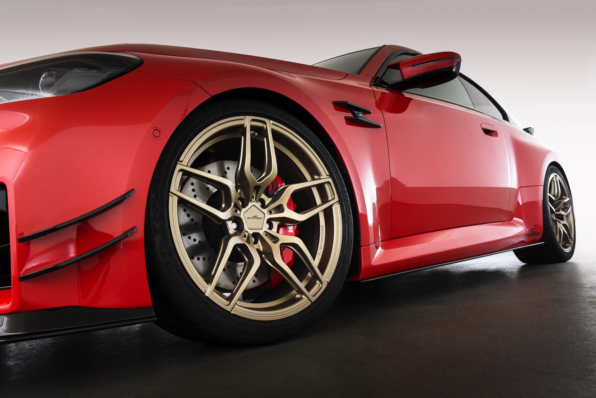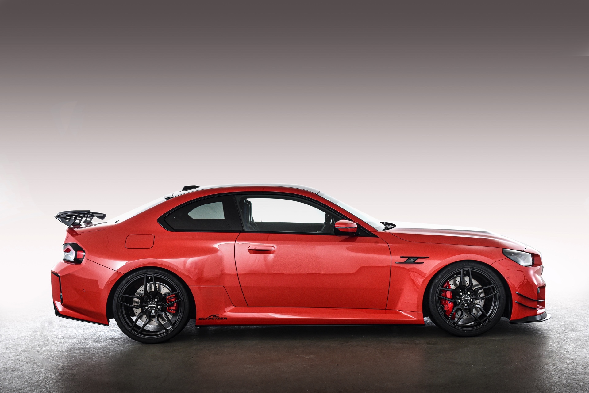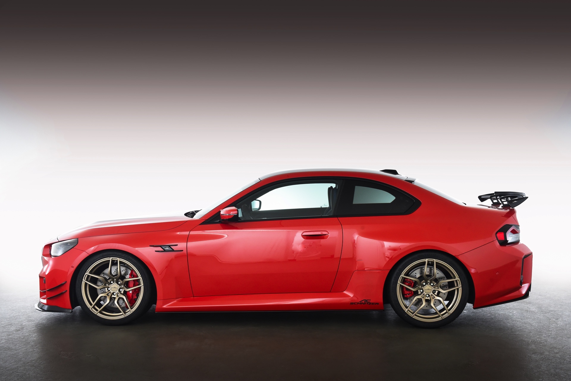In der Seitenansicht profitiert der BMW M2 (G87) vor allem von den in 20 und 21 Zoll erhältlichen Felgen, die in verschiedenen Designs und Farben erhältlich sind. Wer keinen Zollsprung zwischen Vorder- und Hinterachse wünscht, kann statt vorne 20 und hinten 21 Zoll auch vier Felgen mit 20 Zoll Durchmesser montieren. Noch besser zur Geltung kommen die Räder in Verbindung mit einer Tieferlegung, wobei AC Schnitzer sowohl simple Fahrwerksfedern für 15 bis 25 Millimeter als auch ein vielfach einstellbares Gewindefahrwerk mit 20 bis 35 Millimeter Tieferlegung anbietet.