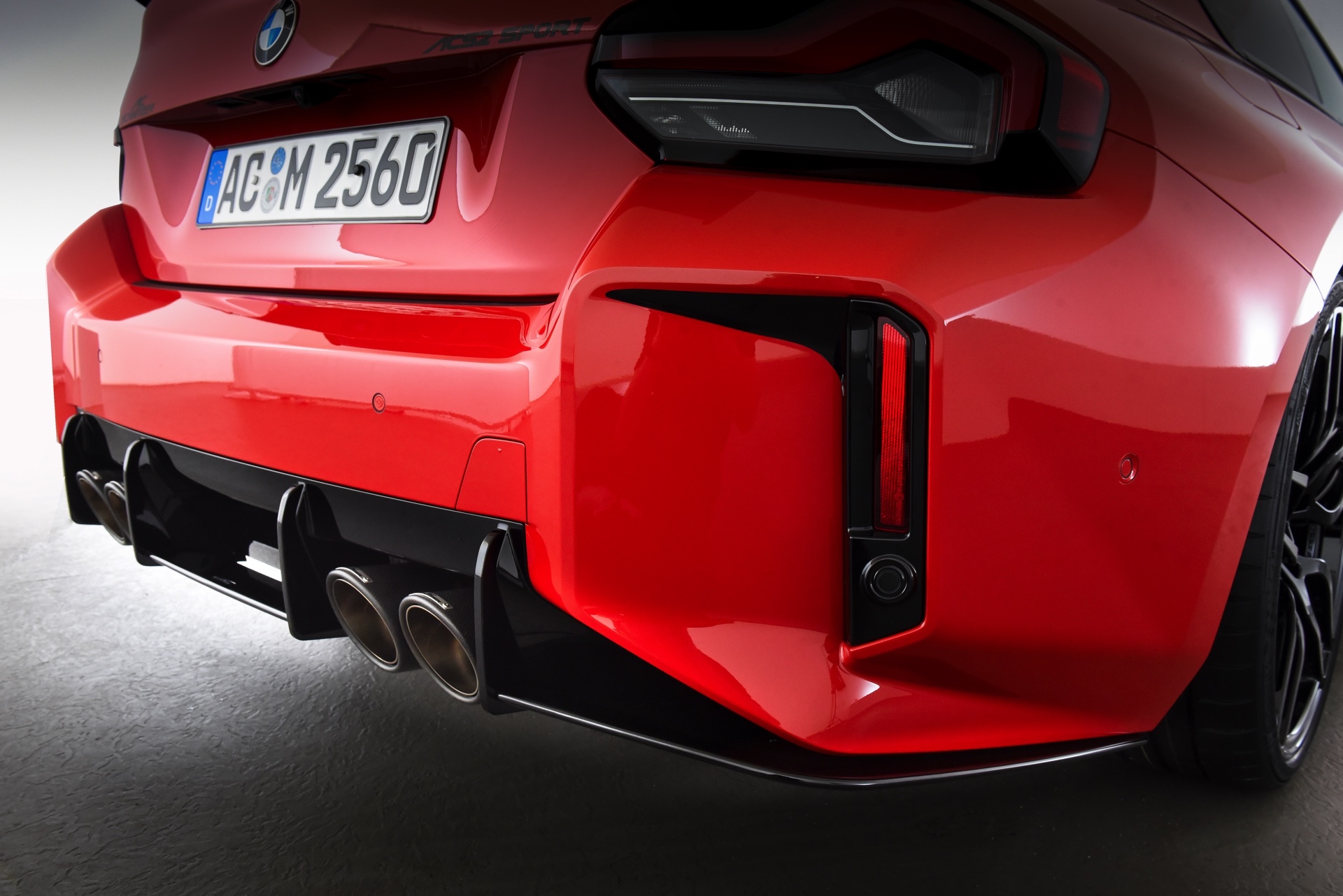 Vordergründig der Optik dienen die weiteren Aero-Komponenten wie Seitenschweller, Dachheckspoiler und der siebenteilige Diffusor-Einsatz für die Heckschürze. Letzterer umfasst die vier mächtigen 110-Millimeter-Endrohre des AC Schnitzer Schalldämpfers mit Klappensteuerung und sorgt ohne Frage für einen deutlich sportlicheren Look, auch wenn er keinen weiteren Abtrieb generiert.