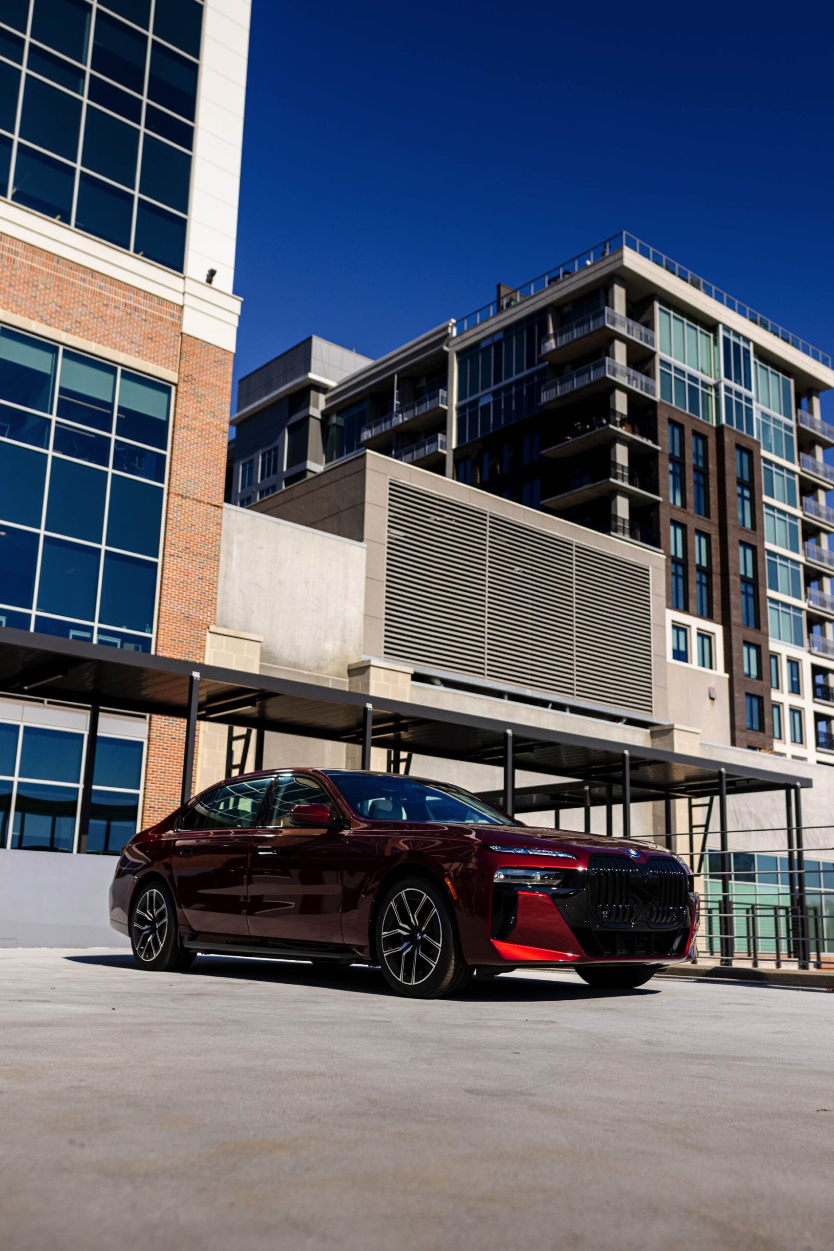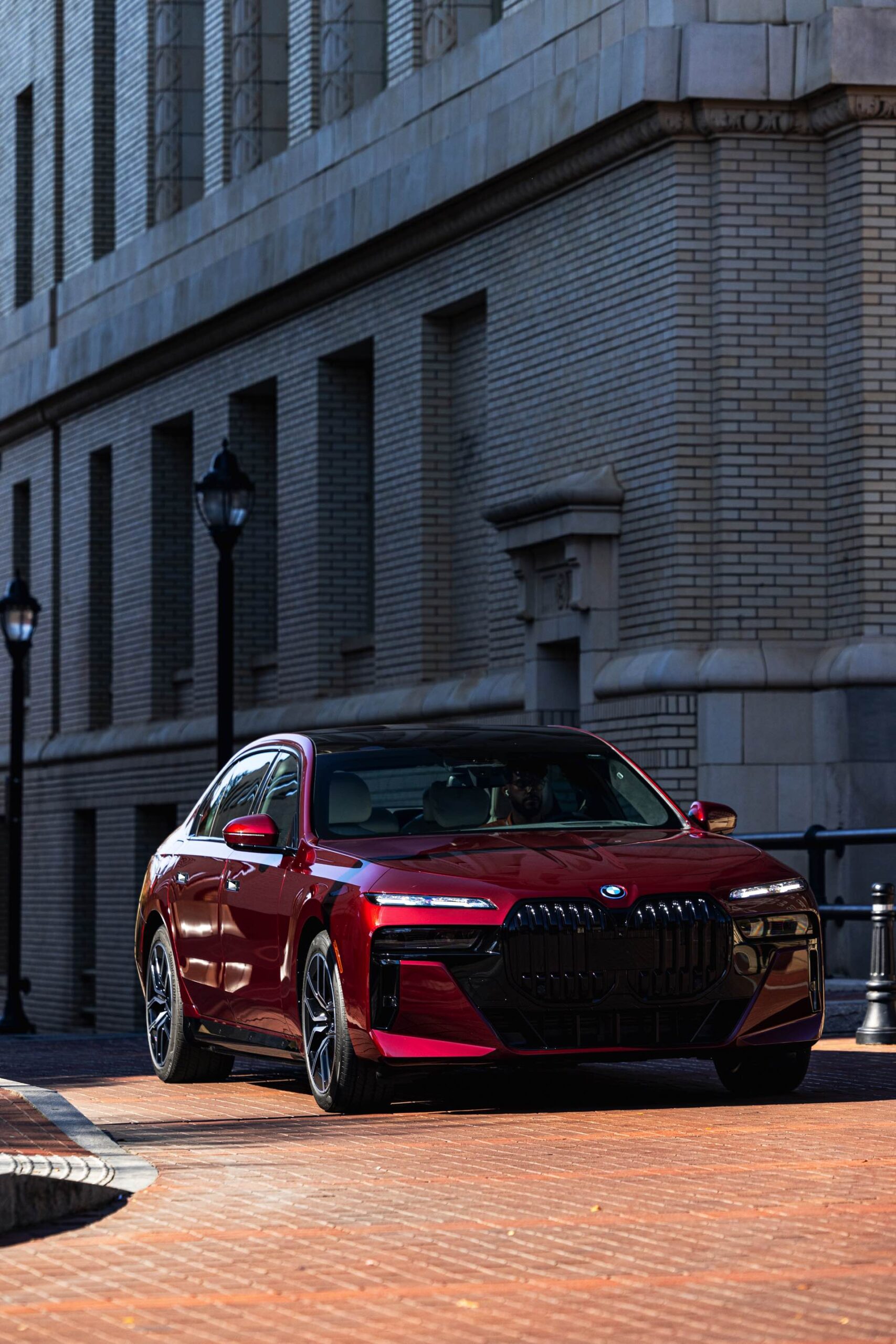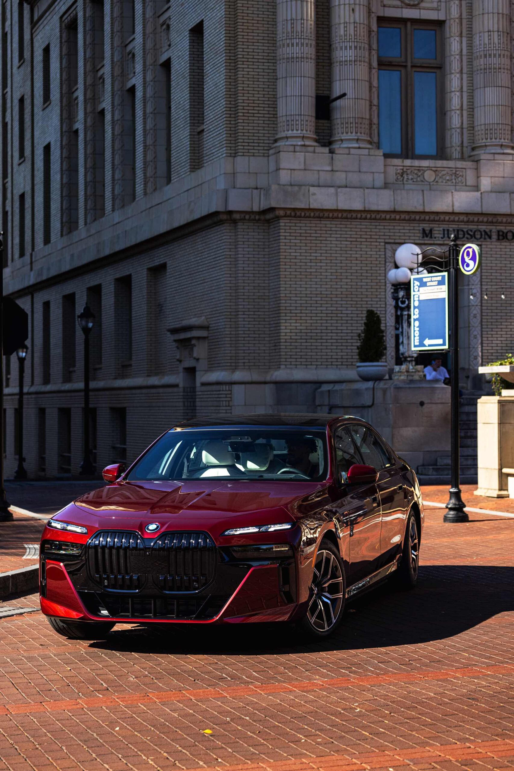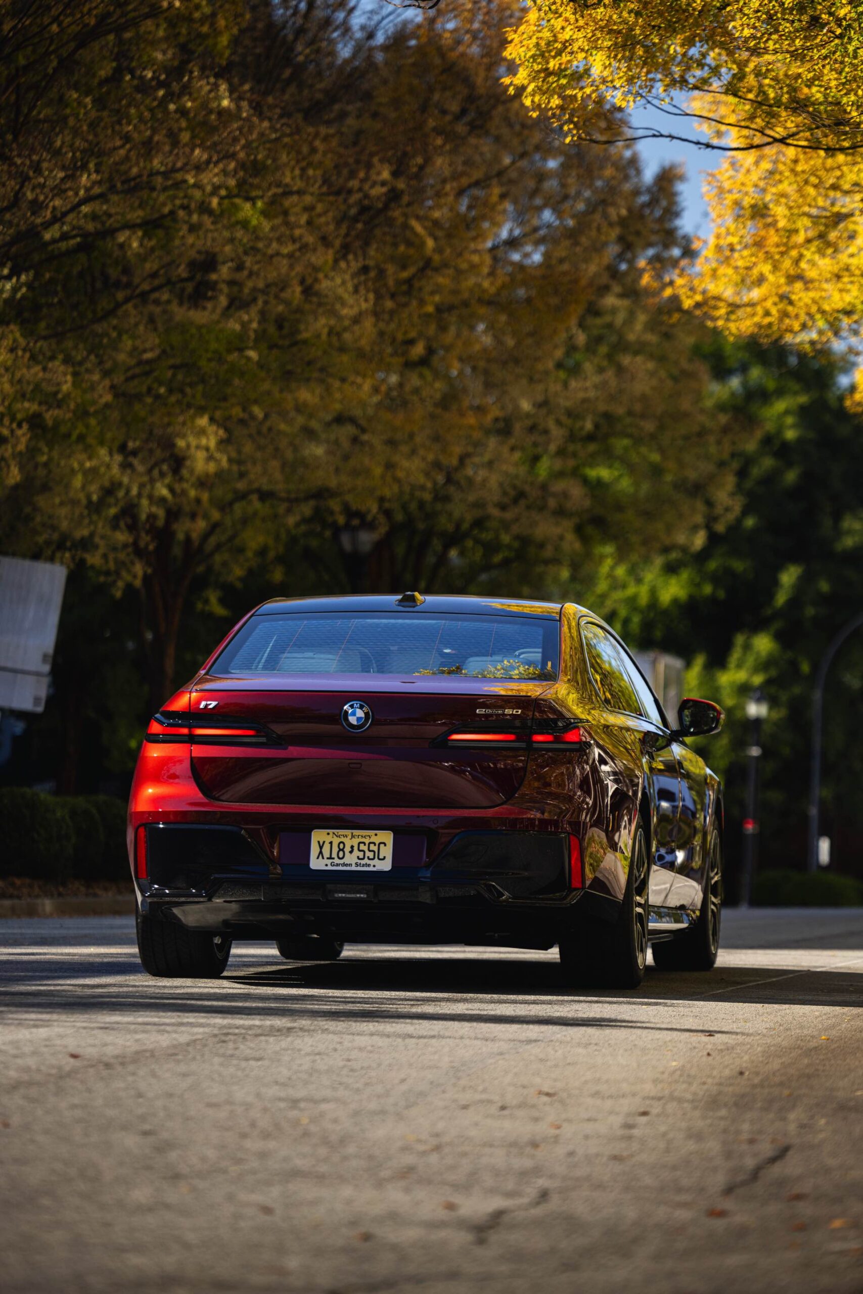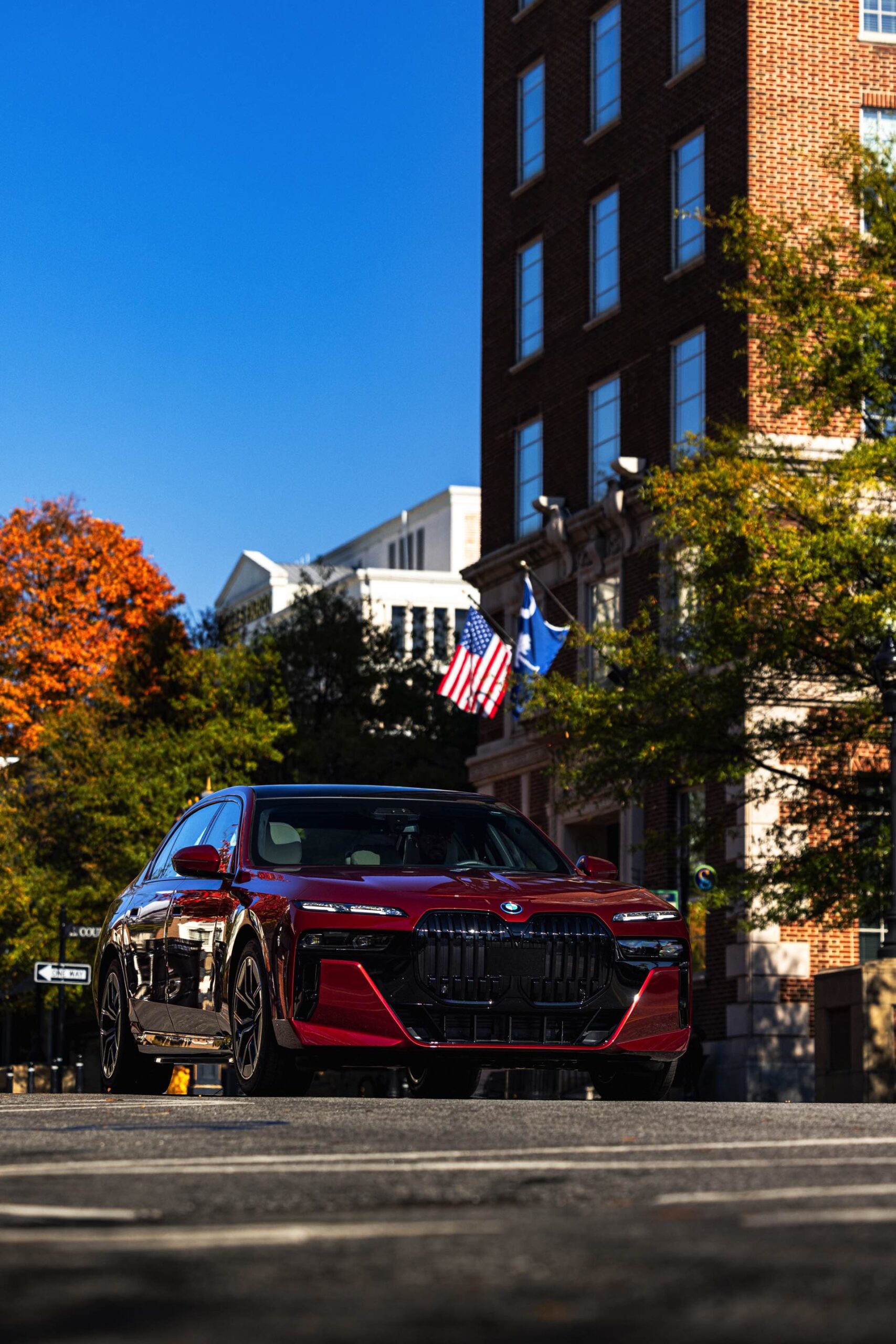 Noch mächtiger als bei uns wirkt die Niere der neuen BMW 7er-Reihe (G70) in der US-Version ohne vorderes Kennzeichen. Aktuelle Fotos zeigen uns einen amerikanischen BMW i7 eDrive50 mit M Sport Pro-Paket, der dank seiner Lackierung in Aventurinrot Metallic ein absoluter Hingucker ist. Die schwarzen Details der Shadow Line mit erweiterten Umfängen sorgen dabei für einen deutlichen Kontrast zur roten Lackierung und verleihen der Luxuslimousine einen sportlichen Touch. Bemerkenswert ist auch, wie sehr die unteren Elemente der horizontal geteilten Scheinwerfer bei einer solchen Konfiguration in den Hintergrund treten.