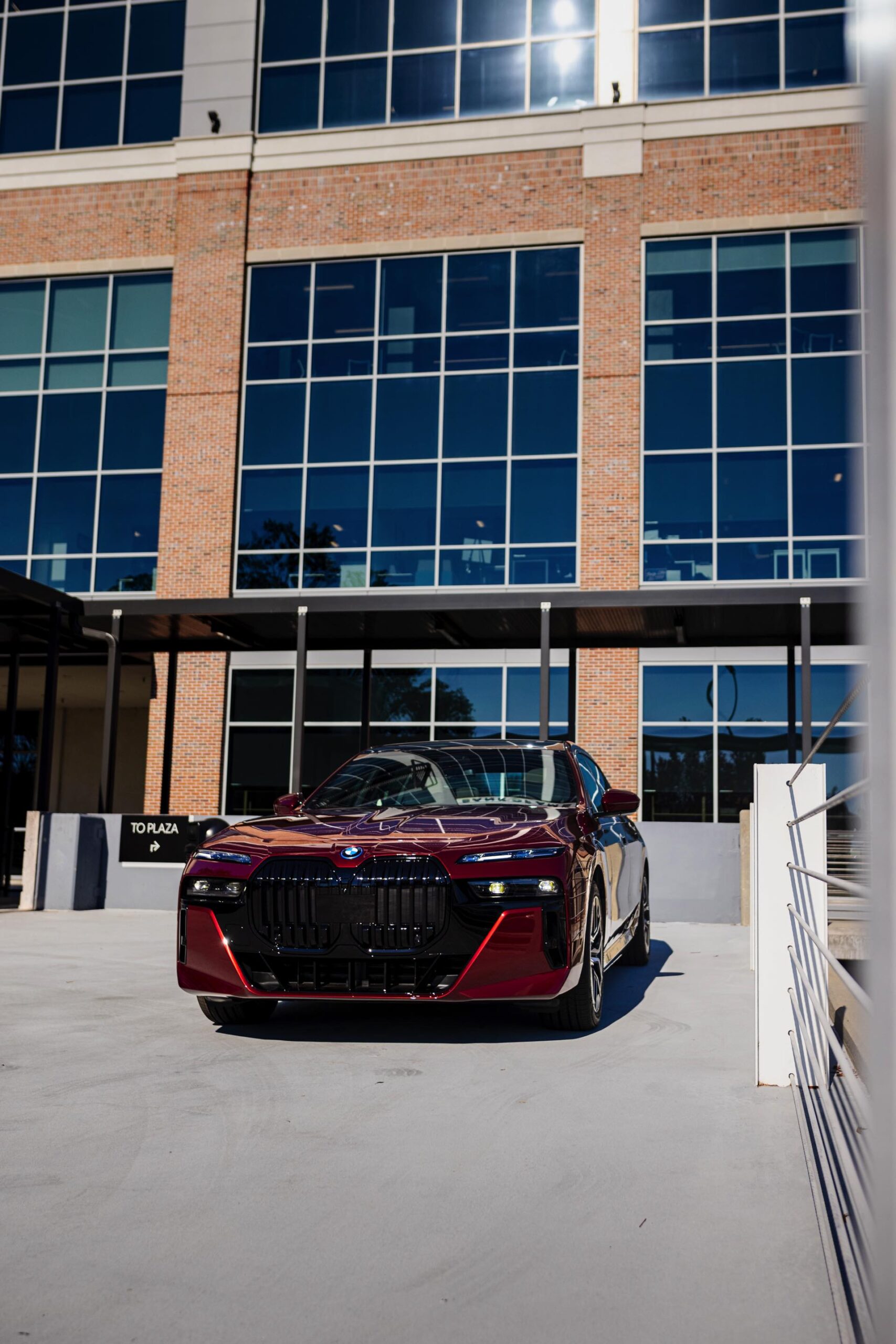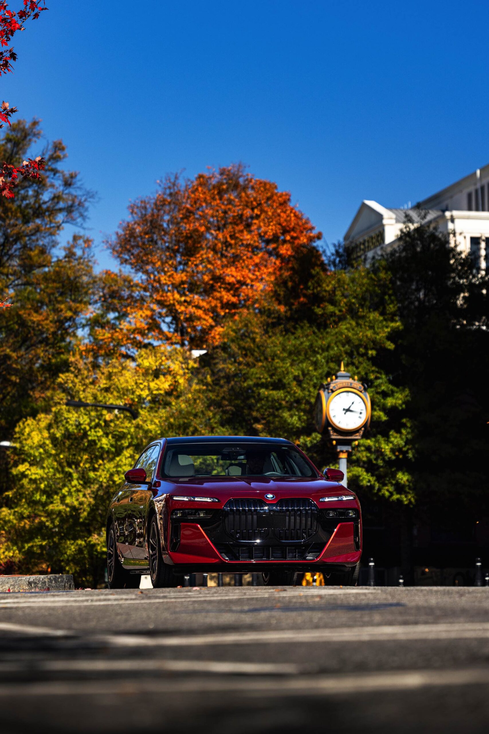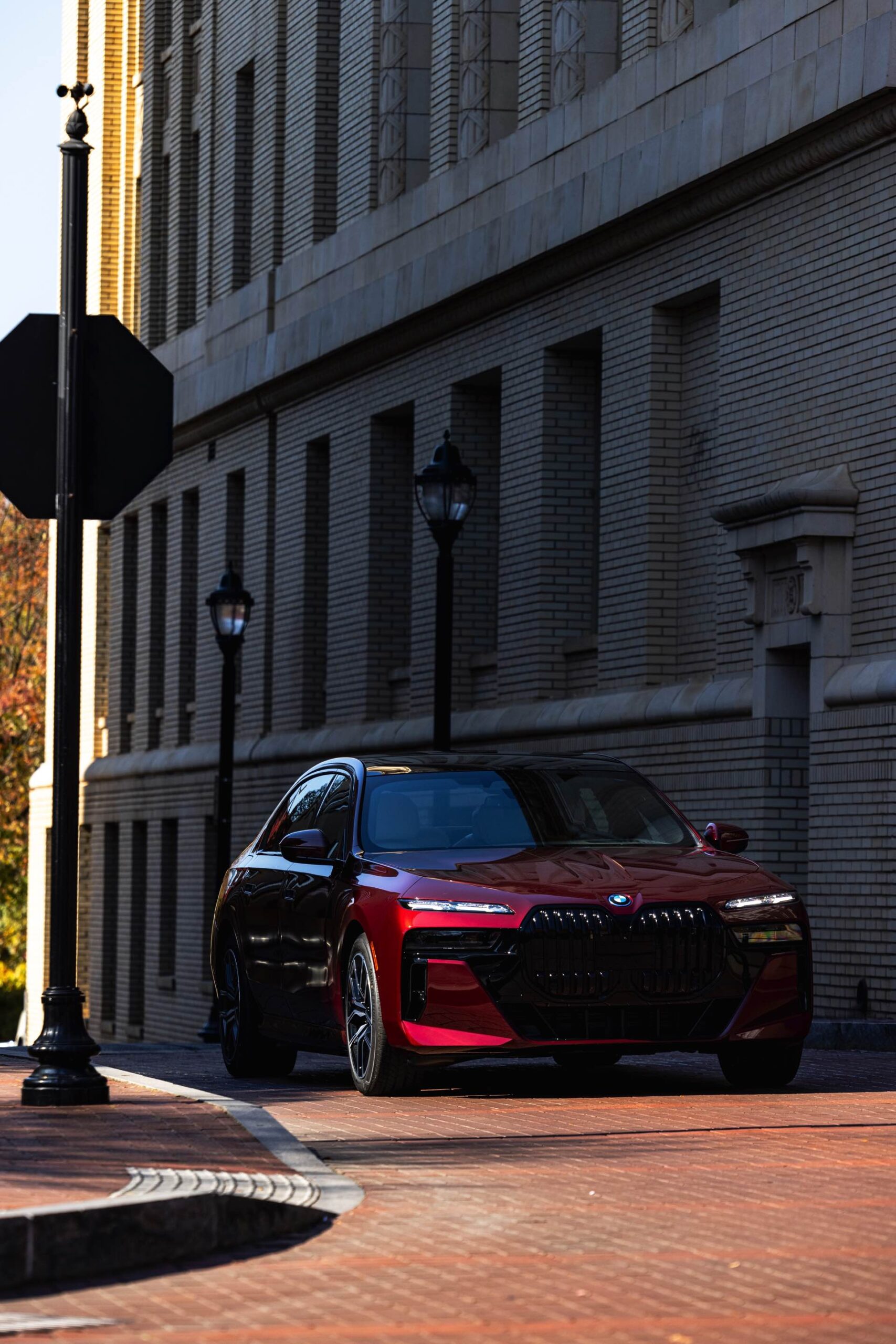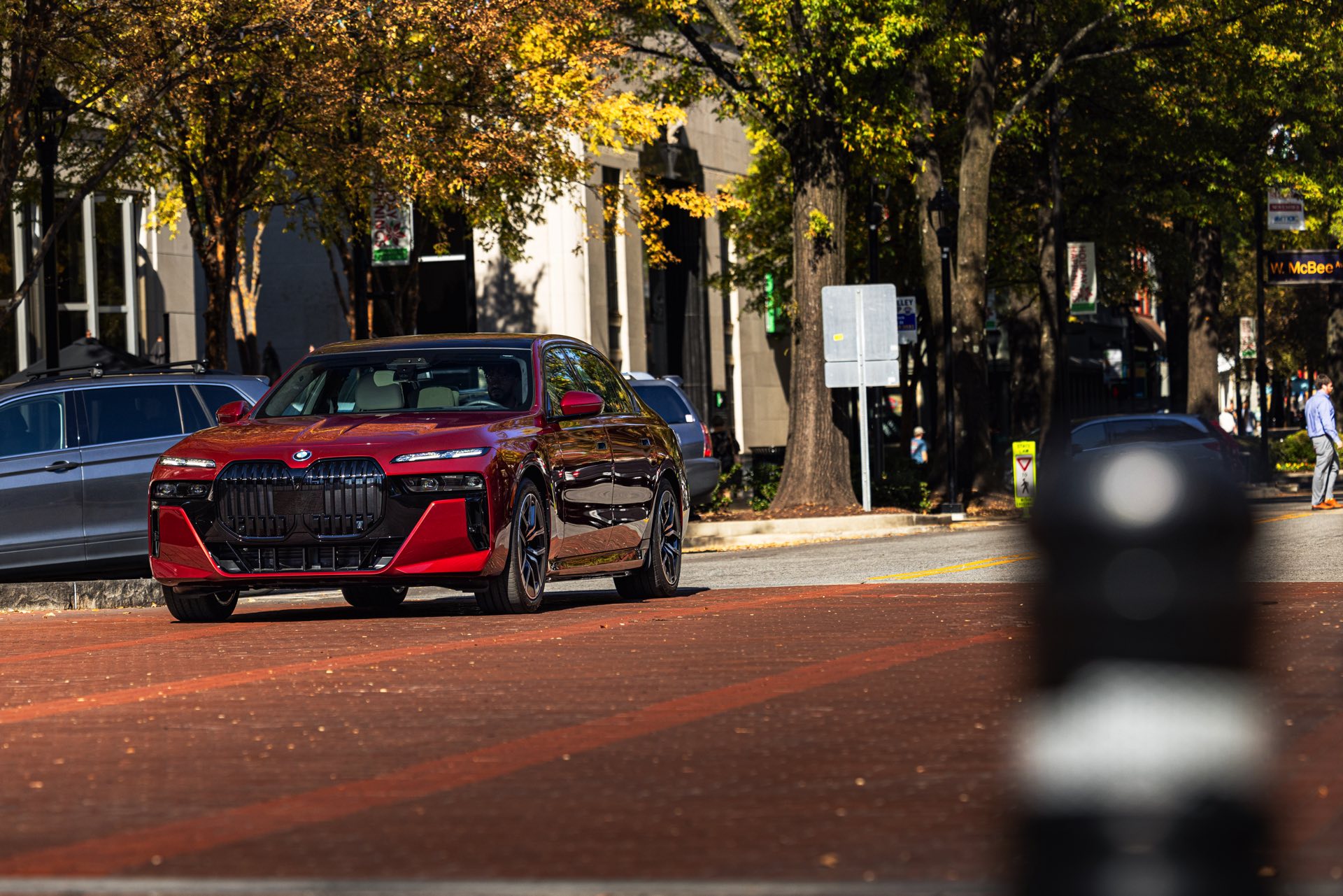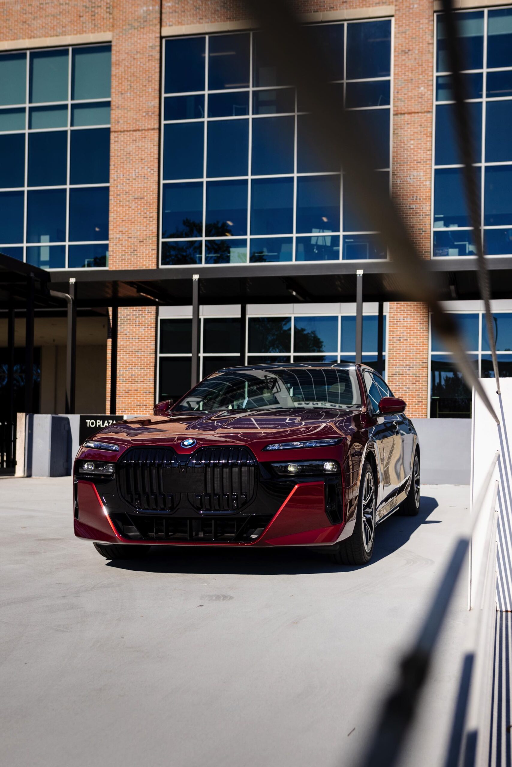 Noch mächtiger als bei uns wirkt die Niere der neuen BMW 7er-Reihe (G70) in der US-Version ohne vorderes Kennzeichen. Aktuelle Fotos zeigen uns einen amerikanischen BMW i7 eDrive50 mit M Sport Pro-Paket, der dank seiner Lackierung in Aventurinrot Metallic ein absoluter Hingucker ist. Die schwarzen Details der Shadow Line mit erweiterten Umfängen sorgen dabei für einen deutlichen Kontrast zur roten Lackierung und verleihen der Luxuslimousine einen sportlichen Touch. Bemerkenswert ist auch, wie sehr die unteren Elemente der horizontal geteilten Scheinwerfer bei einer solchen Konfiguration in den Hintergrund treten.