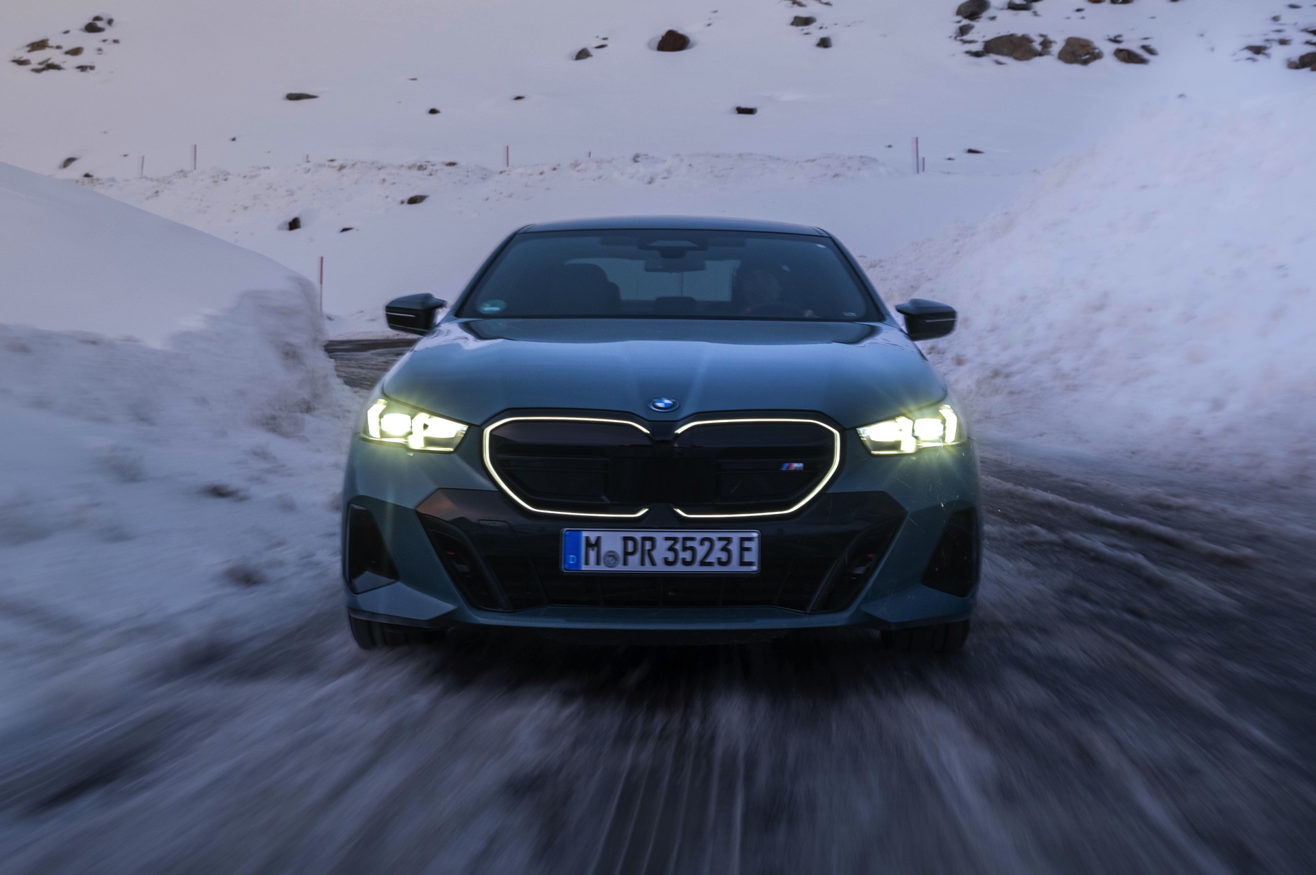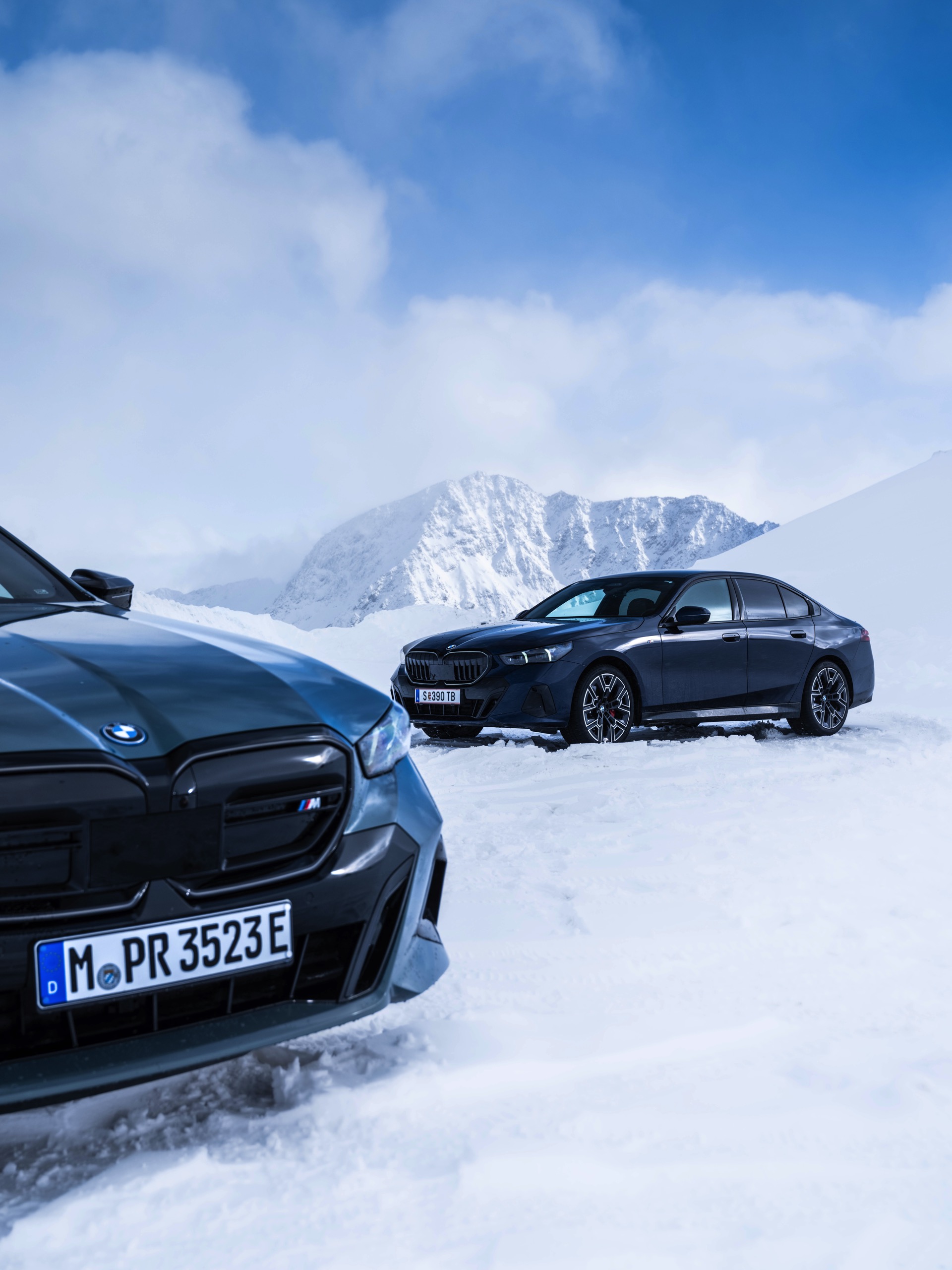 Neben Fotos im gleißenden Sonnenlicht des Gletschers gibt es auch mehrere Bilder, die die beiden Fahrzeuge in etwas düsterer Umgebung zeigen. Hier kommen auch die Iconic Glow-Nieren zur Geltung, die dank ihrer dezent beleuchteten Einfassung für eine unverwechselbare Nacht-Optik sorgen.