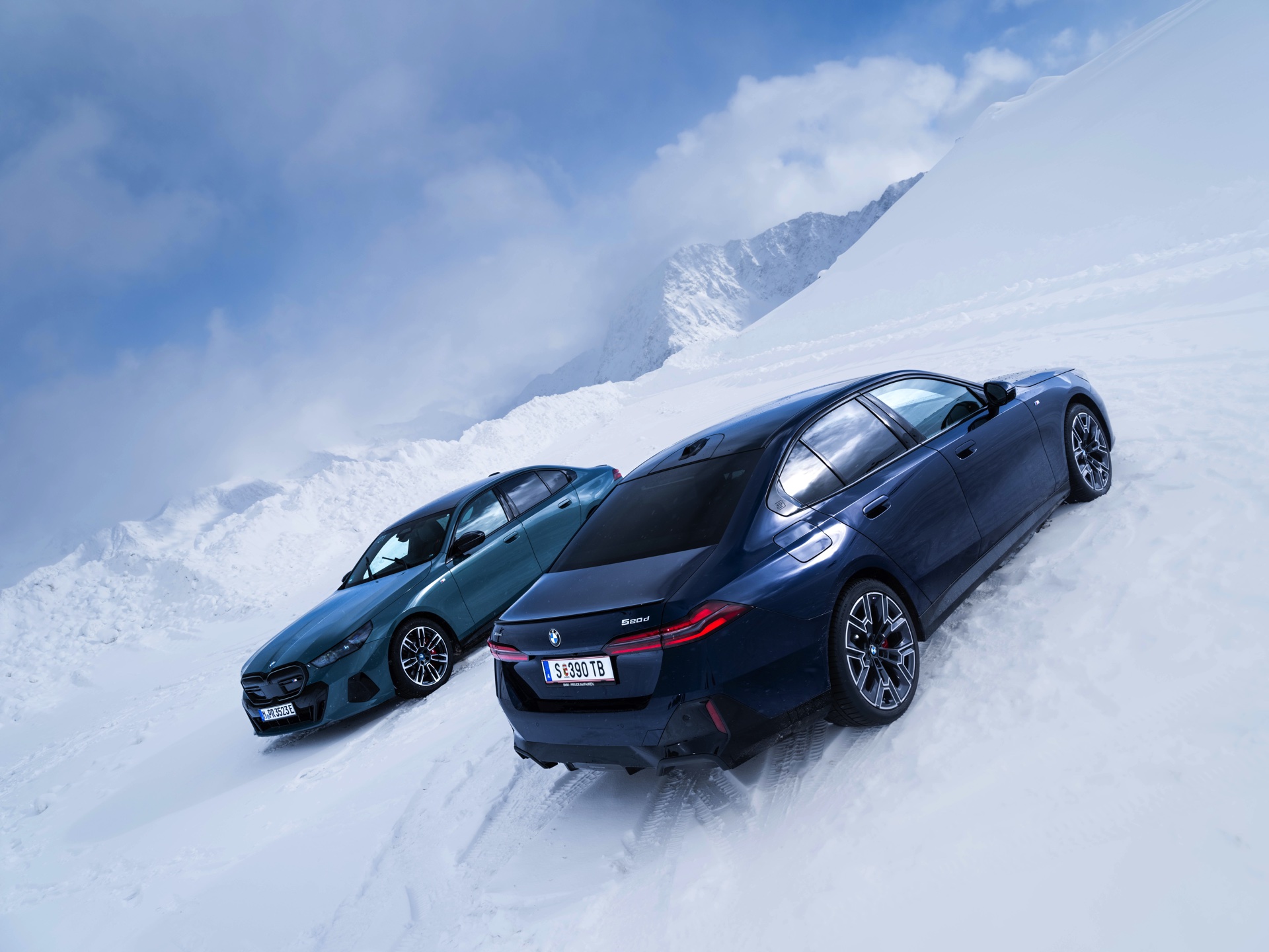Mit dem rutschigen Untergrund haben beide Varianten der 5er Limousine nur wenig Probleme, schließlich kommen beide mit Allradantrieb xDrive. Im Gegensatz zum i5 M60 ist der Antrieb der Vorderräder beim 520d keine Pflicht, denn genau wie 520i, 530e und i5 eDrive40 gibt es den Diesel-5er auch mit klassischem Hinterradantrieb.