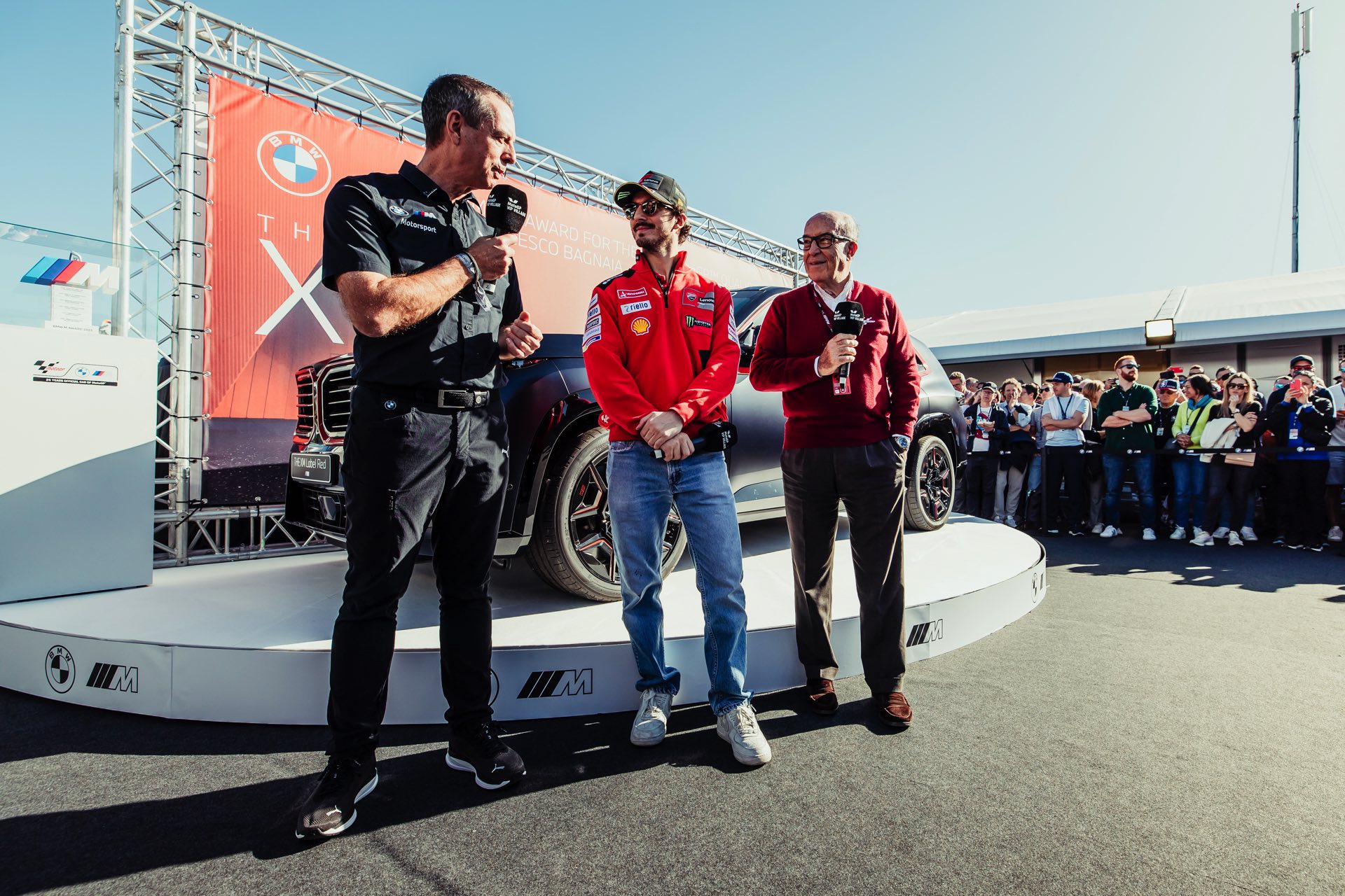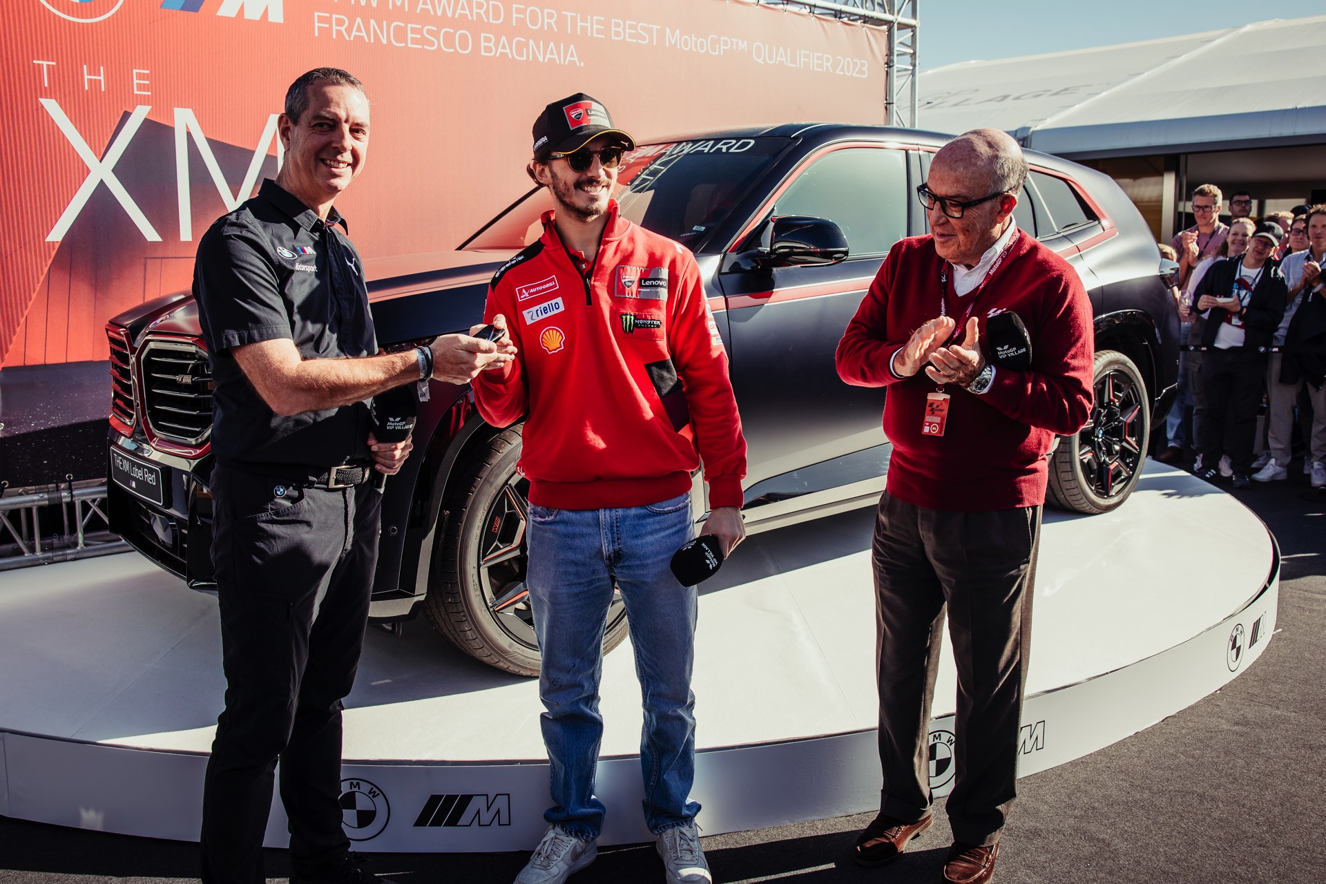 Carmelo Ezpeleta (Dorna CEO): “Willkommen zurück bei der Preisübergabe im BMW M Award und Gratulation zum zweiten Sieg in Folge, Pecco Bagnaia. Pecco war in dieser Saison im Qualifying regelmäßig an der Spitze der Zeitenliste zu finden und hat sich diese Auszeichnung damit mehr als verdient. Unser Dank geht an unseren engen Partner BMW M, der die Leistungen unserer Fahrer im Qualifying nun bereits im 21. Jahr mit dieser begehrten Auszeichnung würdigt. Der BMW XM Red Label setzt die Reihe der faszinierenden Siegerfahrzeuge nahtlos fort, und ich wünsche Pecco viel Vergnügen mit seinem neuen High-Performance-Automobil.