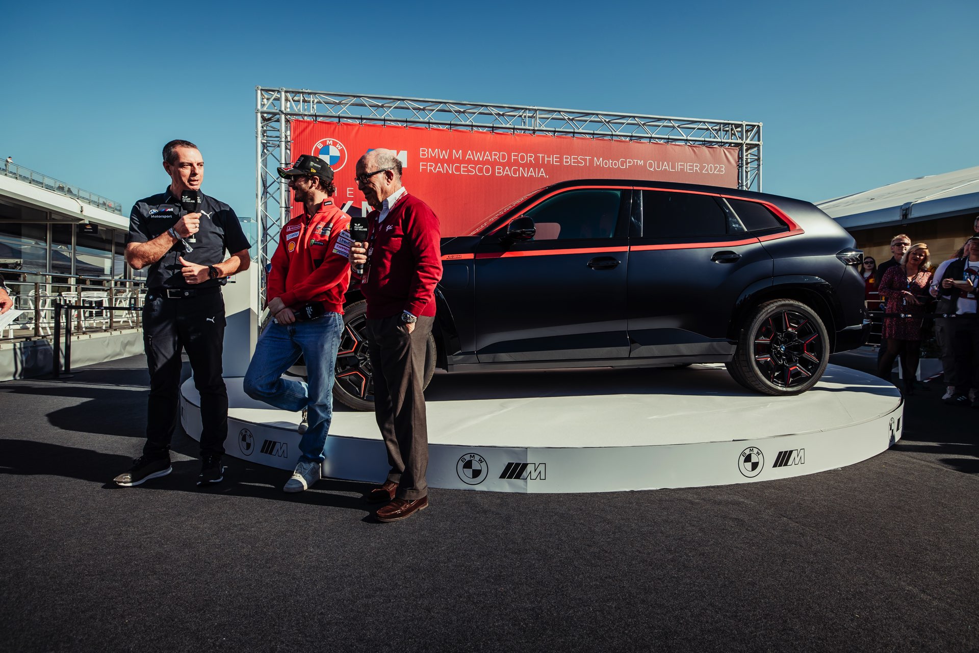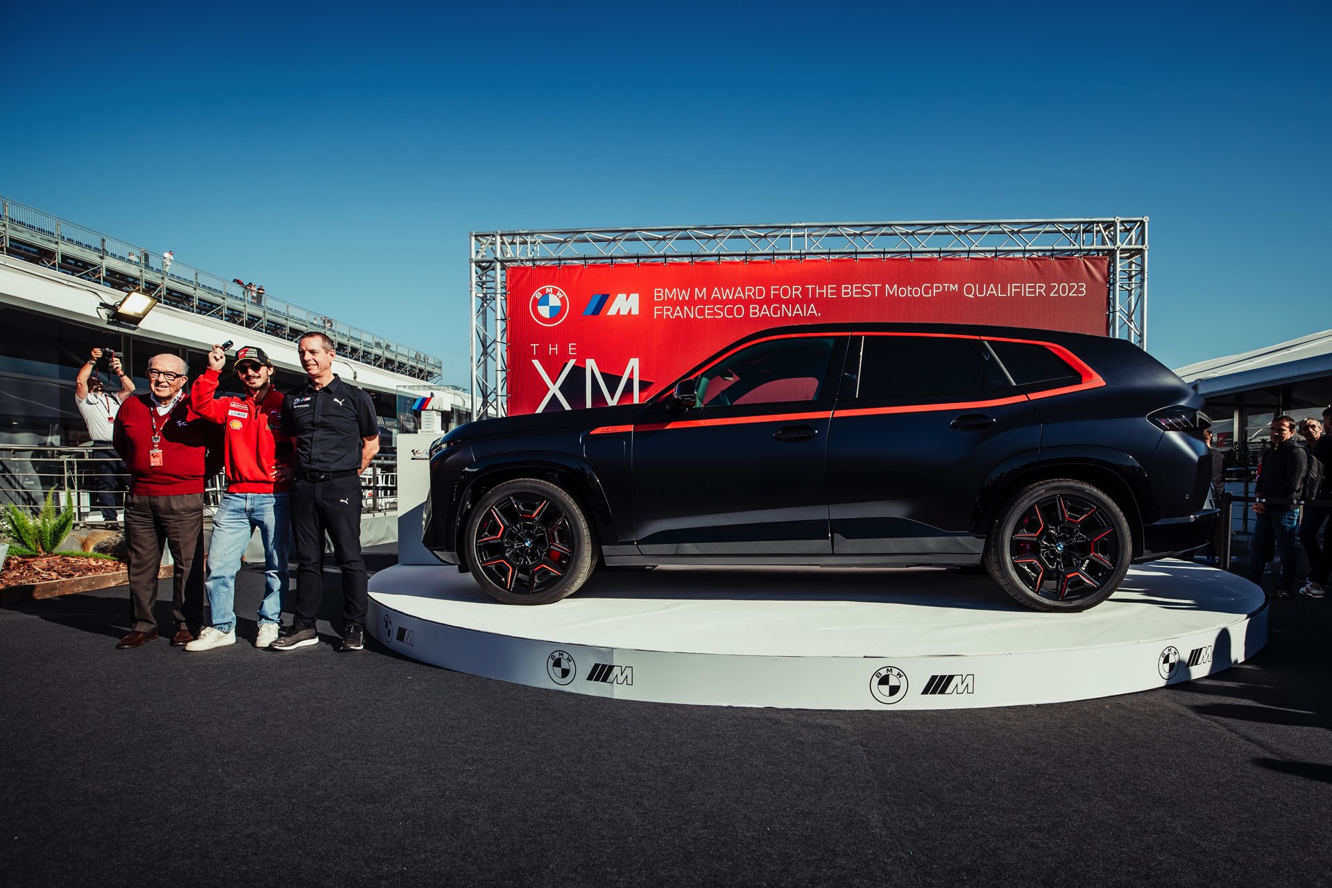 Frank van Meel (BMW M Geschäftsführer): “Herzlichen Glückwunsch an Pecco Bagnaia! Sein Speed im Qualifying war in dieser Saison besonders beeindruckend. Dass er sich den Sieg im BMW M Award in diesem Jahr bereits vorzeitig sichern konnte, spricht für sich. Hut ab vor dieser Leistung! Wir freuen uns sehr, diesen Top-Fahrer mit unserem Top-Modell auszeichnen zu können und sind sicher, dass er mit dem BMW XM Label Red viel Spaß haben wird. Mit seinem zweiten Sieg in Folge reiht Pecco sich ein in die Reihe klangvoller Namen, die den BMW M Award ebenfalls mehrfach gewonnen haben. Dazu gehört unter anderem MotoGP-Legende Valentino Rossi, der insgesamt drei Mal ein BMW M Siegerfahrzeug entgegennehmen konnte und heute auf vier Rädern als BMW M Werksfahrer mit BMW M GT3-Rennfahrzeugen sehr erfolgreich ist.