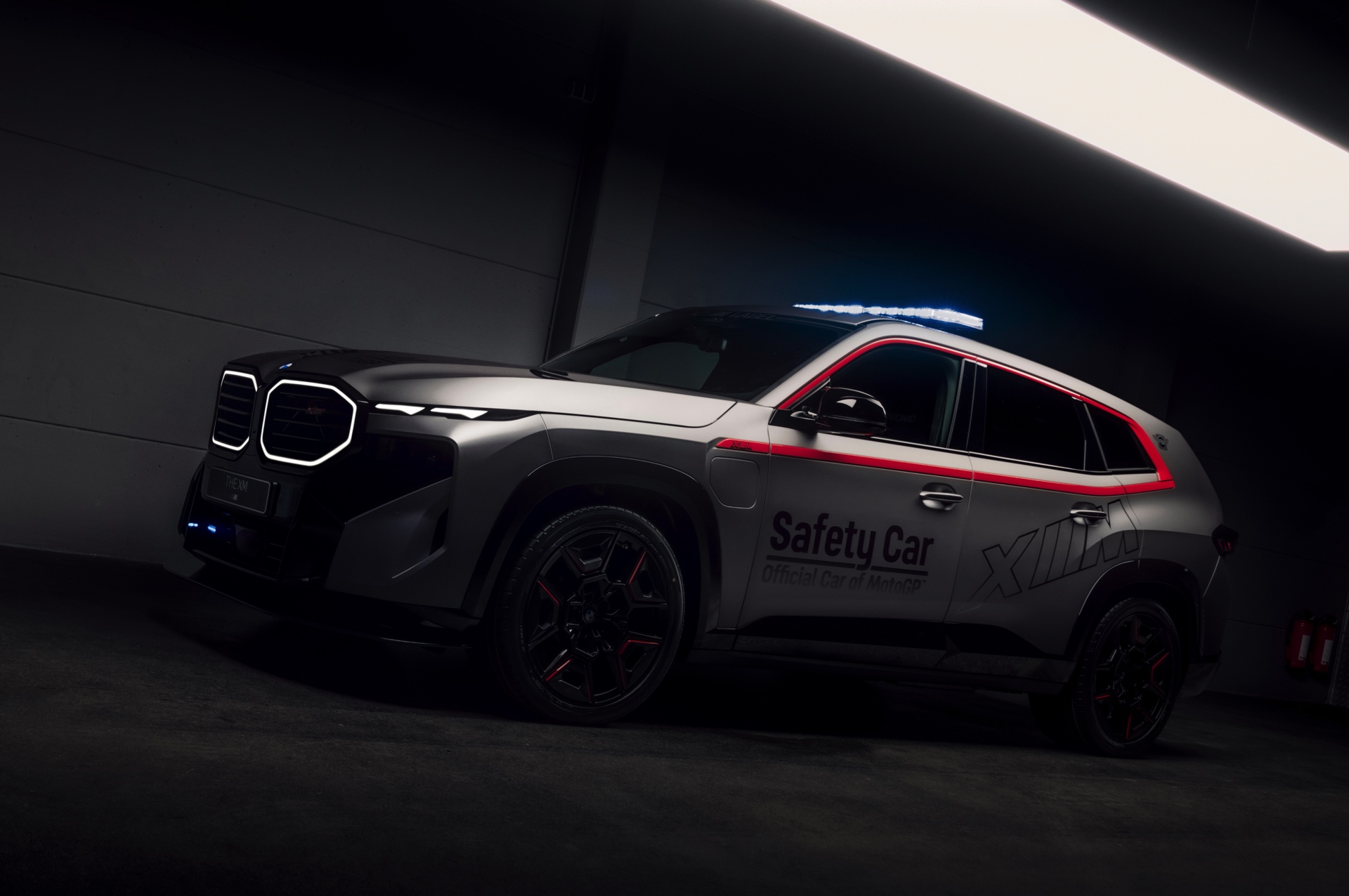 In einer ganz anderen, aber kaum weniger markanten Farb-Kombination wurde außerdem das BMW XM Safety Car 2024 vorgestellt, das ebenfalls auf dem Label Red basiert. Für den Einsatz an der Spitze des Feldes hat der XM einen zusätzlichen Frontsplitter, diverse Lichttechnik-Elemente sowie einen Feuerlöscher, Recaro-Sitze und Sechspunkt-Gurte für den Innenraum erhalten. Bei seinen Einsätzen 2024 wird das Safety Car in den typischen M-Farben antreten, die in Valencia gezeigte Ausführung in Frozen Pure Grey bleibt also ein Unikat zu Vorschau-Zwecken.