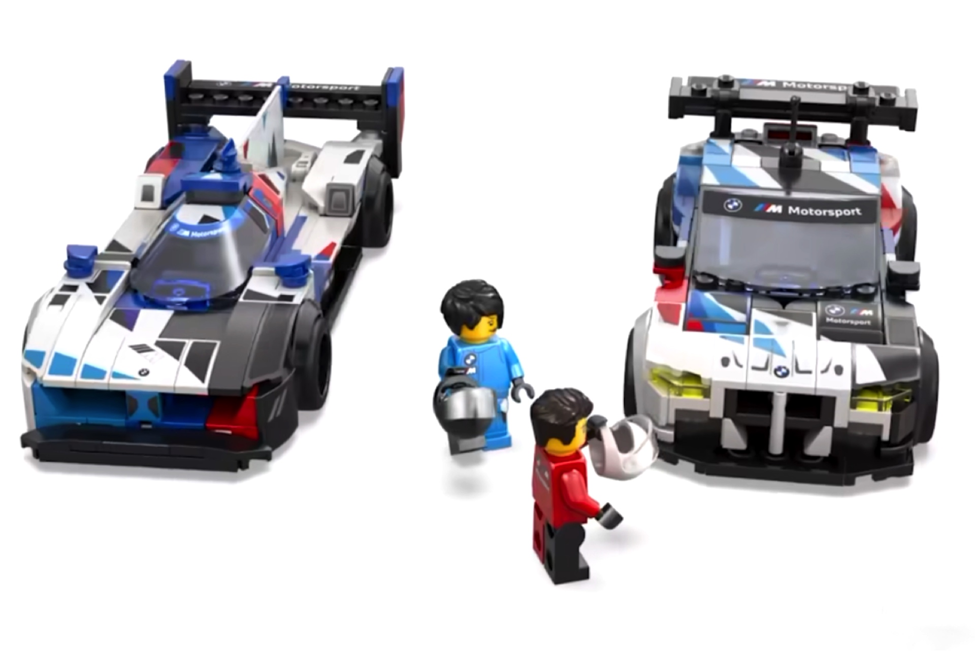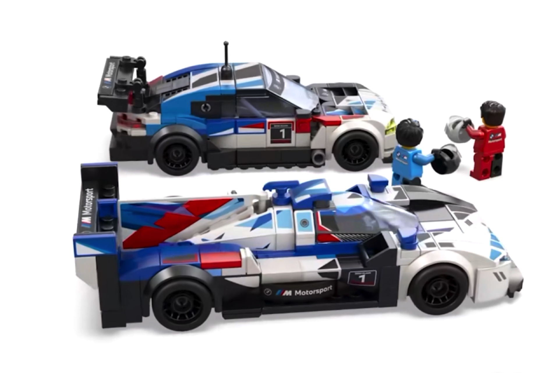Beide Fahrzeuge tragen eine aktuelle BMW M-Livery, die mit Sicherheit auch im Kindergarten für einen sportlichen Auftritt sorgt. Neben den beiden Motorsport-Boliden wird es offenbar auch zwei Lego-Figuren geben, die mit hellblauem und rotem Anzug samt BMW M Motorsport-Branding die Piloten der Rennwagen darstellen.