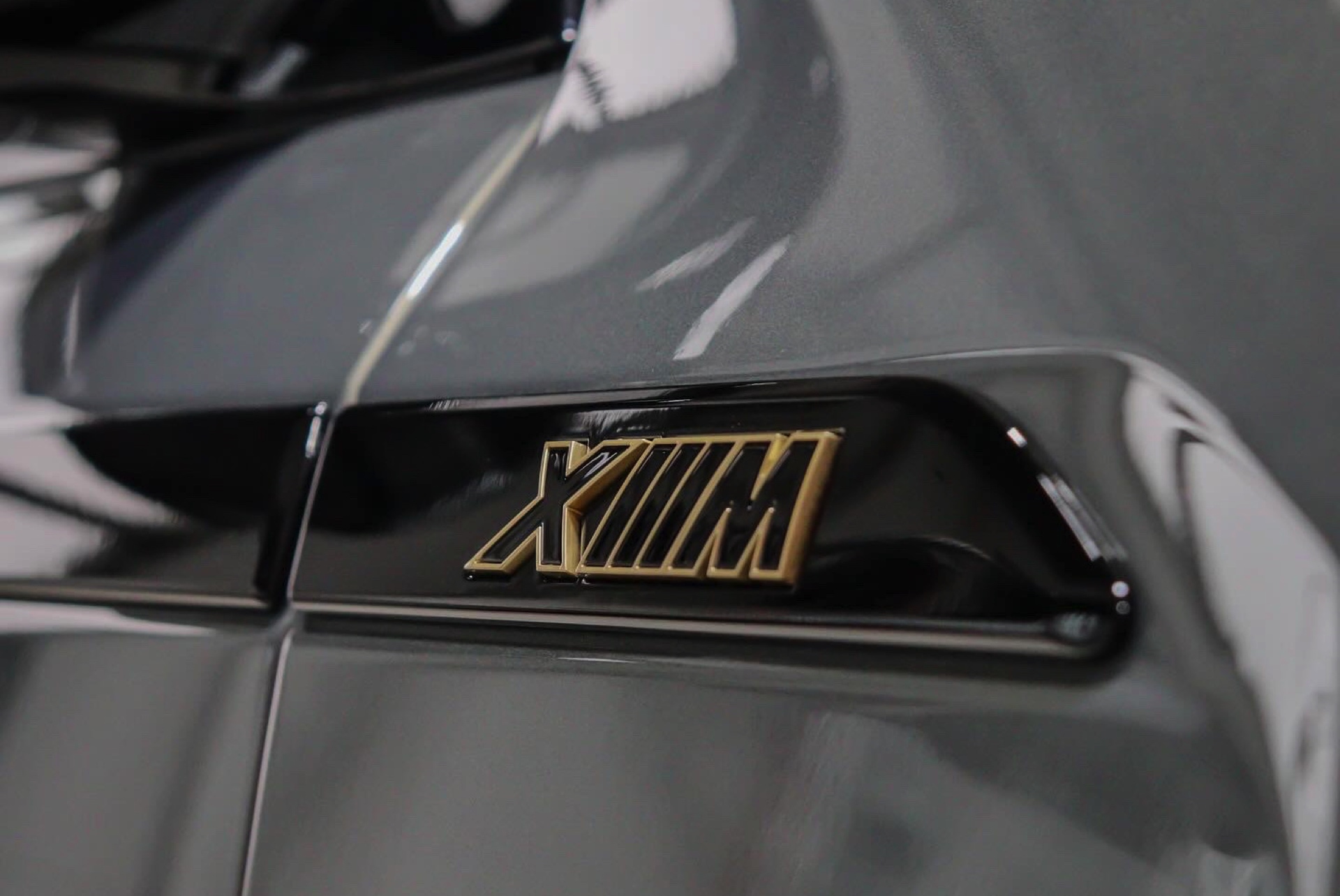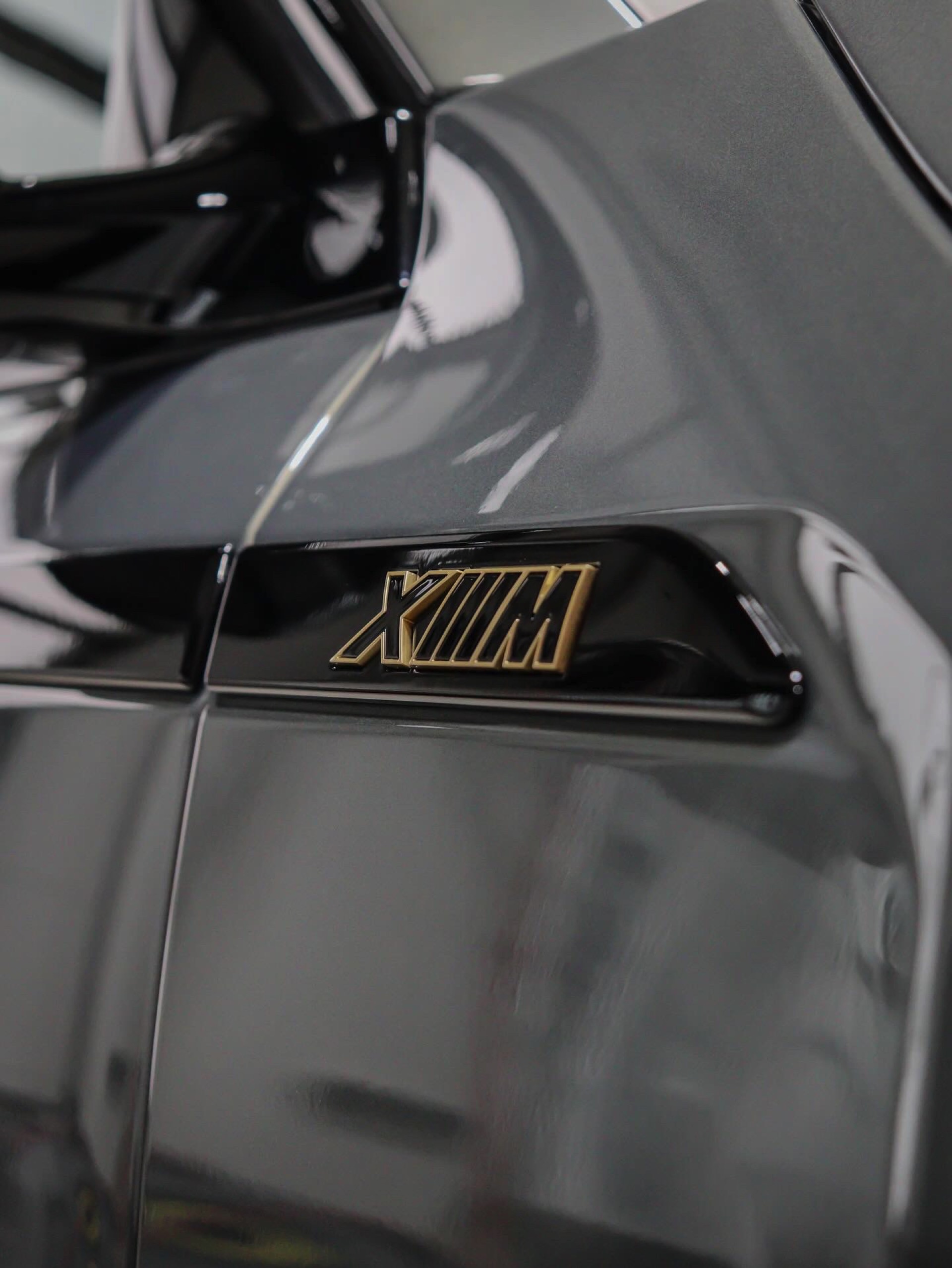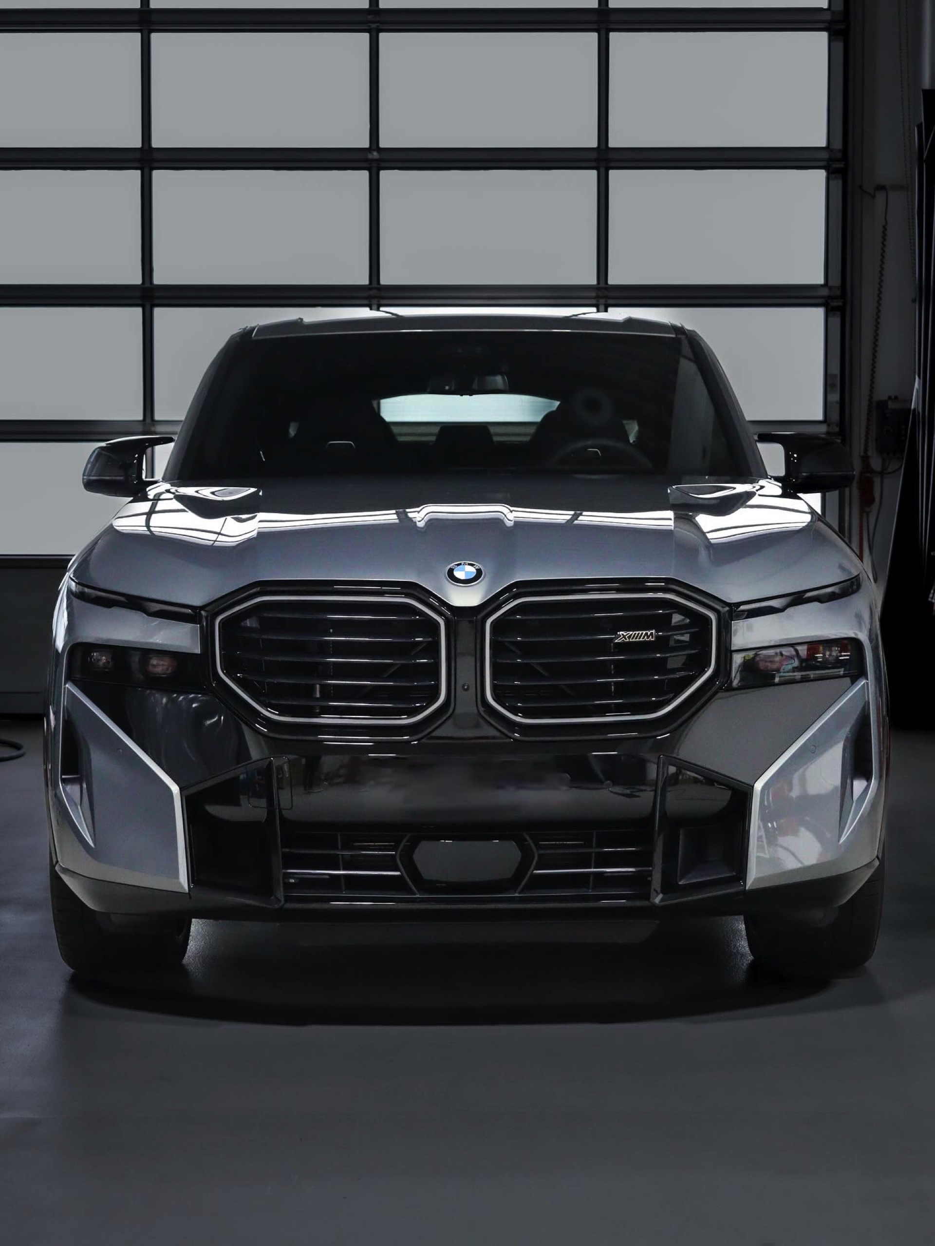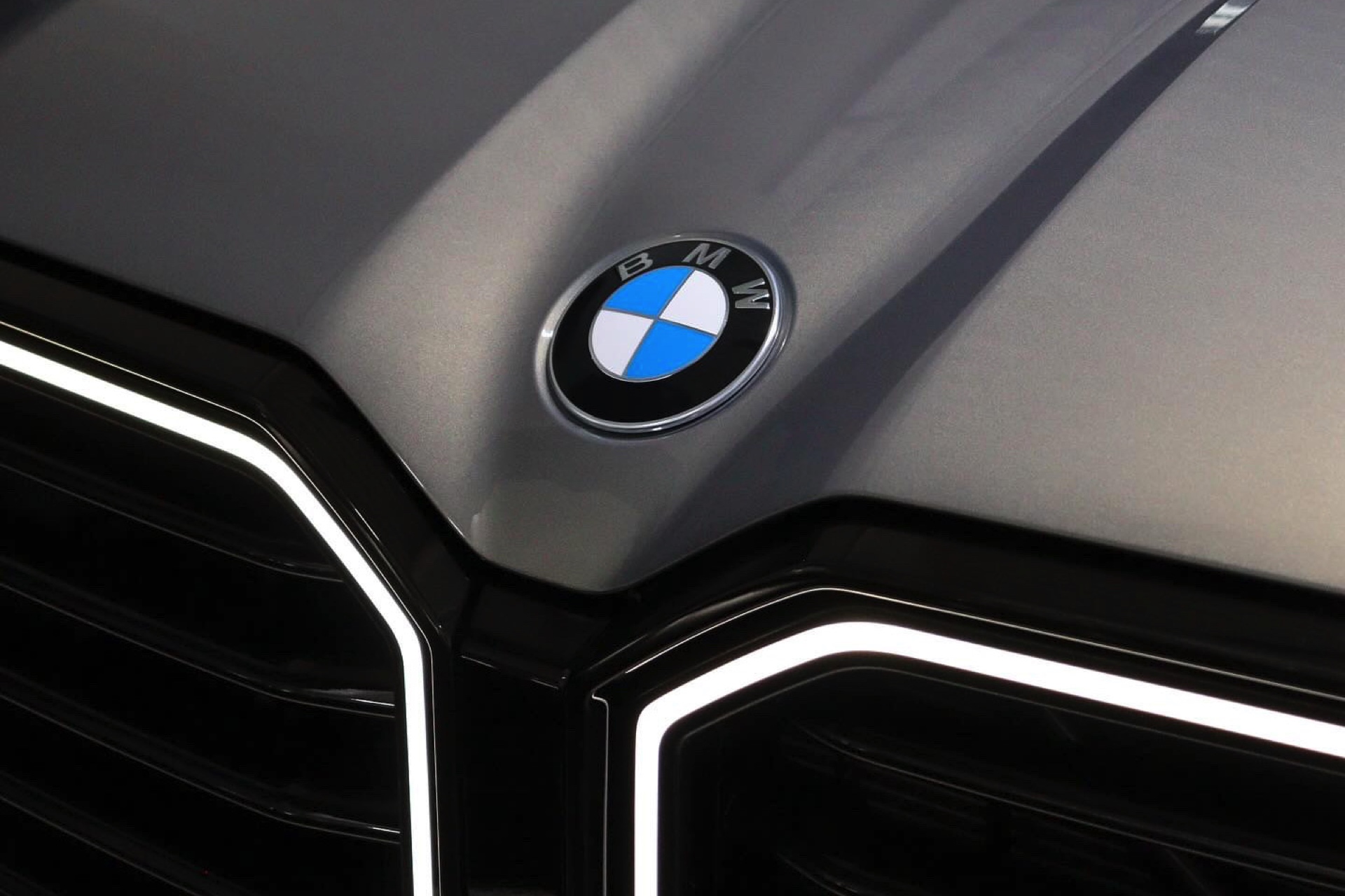 Die Lackierung in Stratusgrau (Farbcode 440) wird bei seinem Fahrzeug mit der Shadow Line mit erweiterten Umfängen kombiniert, sodass fast alle serienmäßig goldenen Details in Hochglanz-Schwarz gehalten sind. Hierzu zählen insbesondere die Einfassungen von Nieren und Fenstern, die mit einem Finish in Gold für einen ganz anderen Auftritt sorgen würden, der gerade in Europa nicht jedermanns Geschmack trifft. Auch ohne goldene Details ist der BMW XM alles andere als ein unauffälliges Fahrzeug, schon allein die beleuchteten Iconic Glow-Nieren und die ohne aktiviertes Abblend- oder Fernlicht extrem schmal wirkenden Scheinwerfer heben das Power-SUV klar vom Rest der Modellpalette ab.