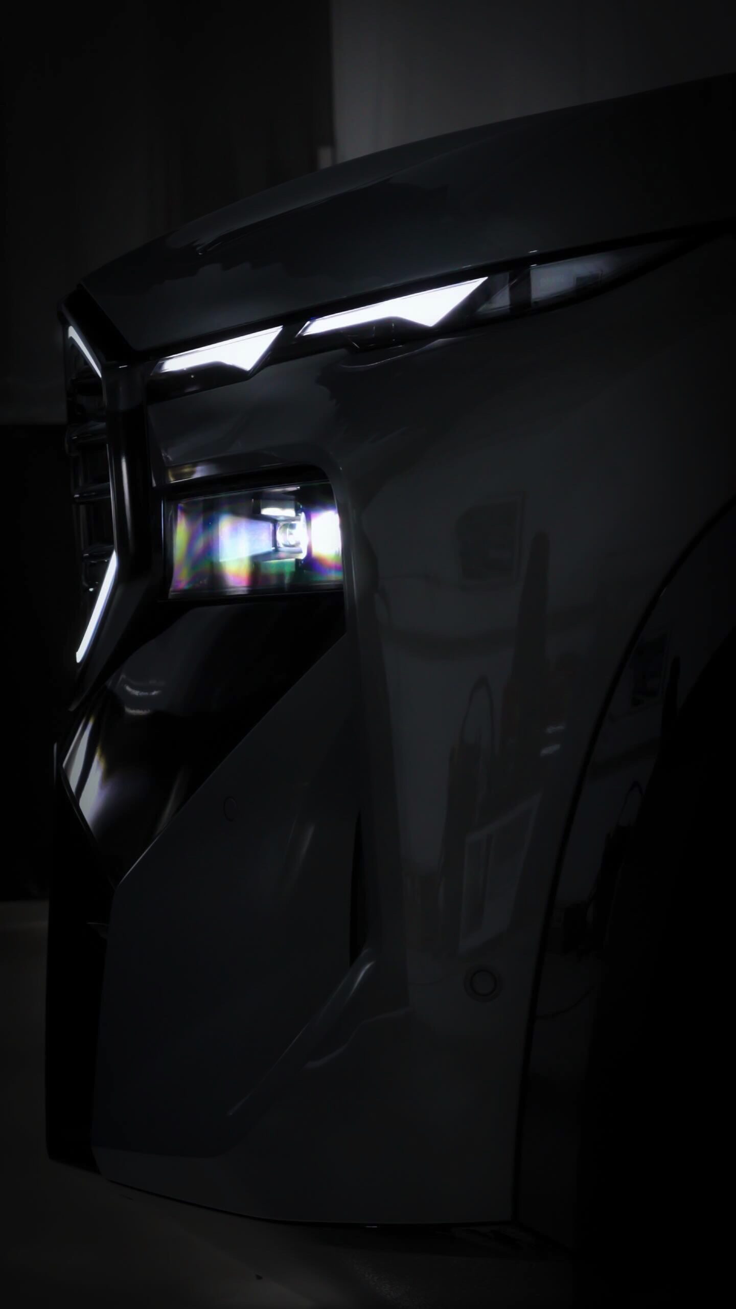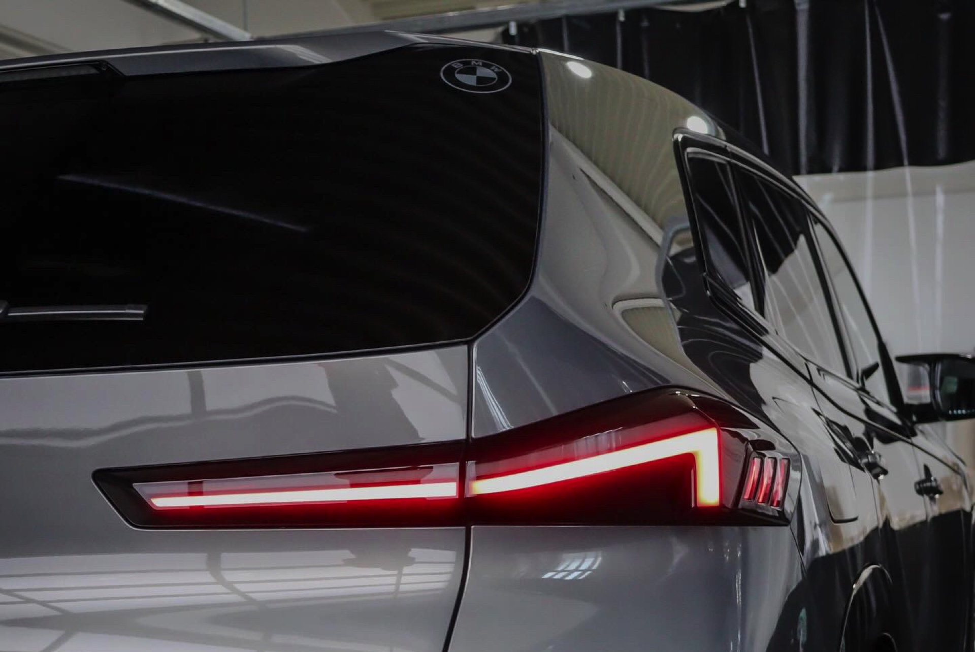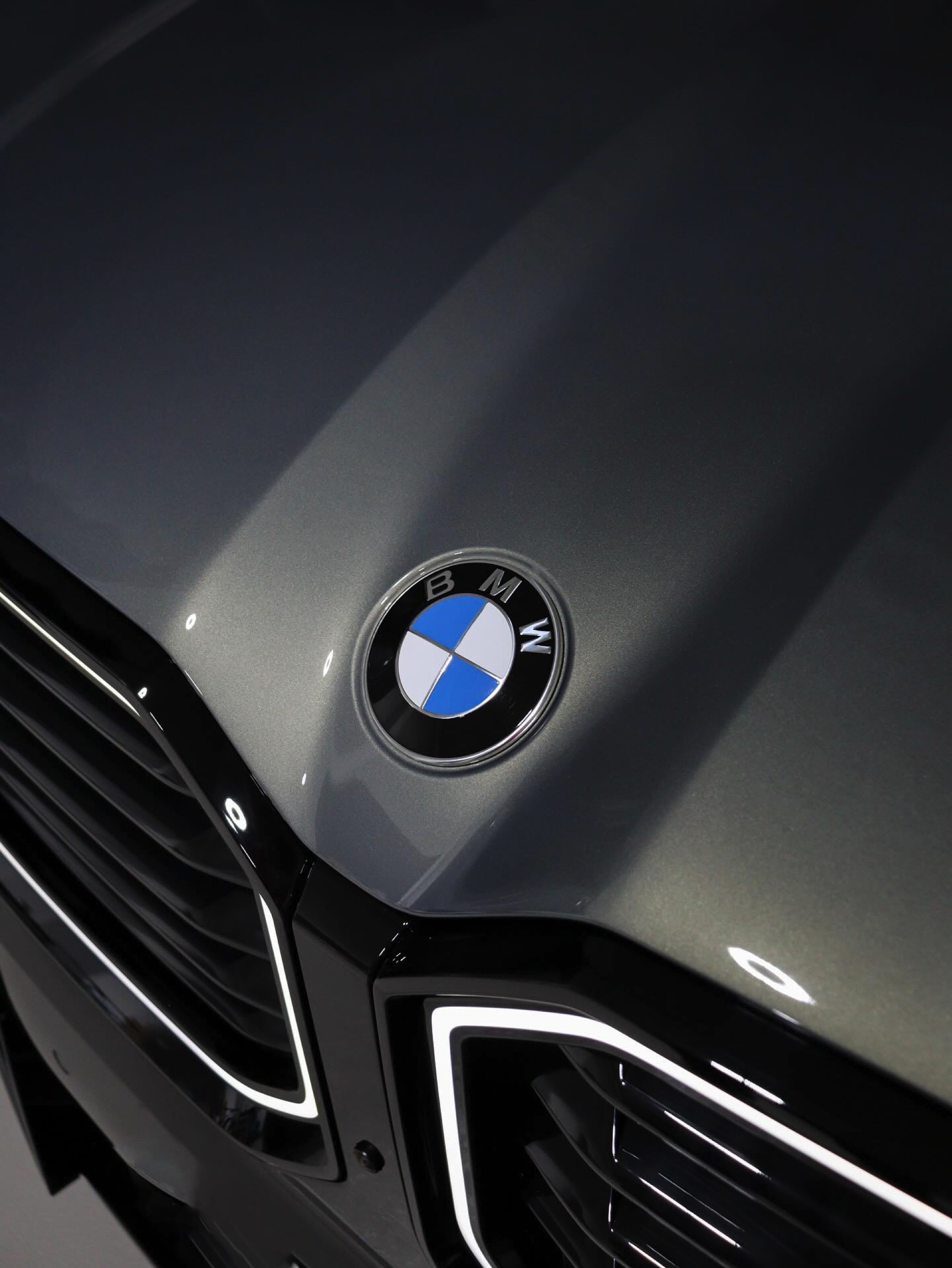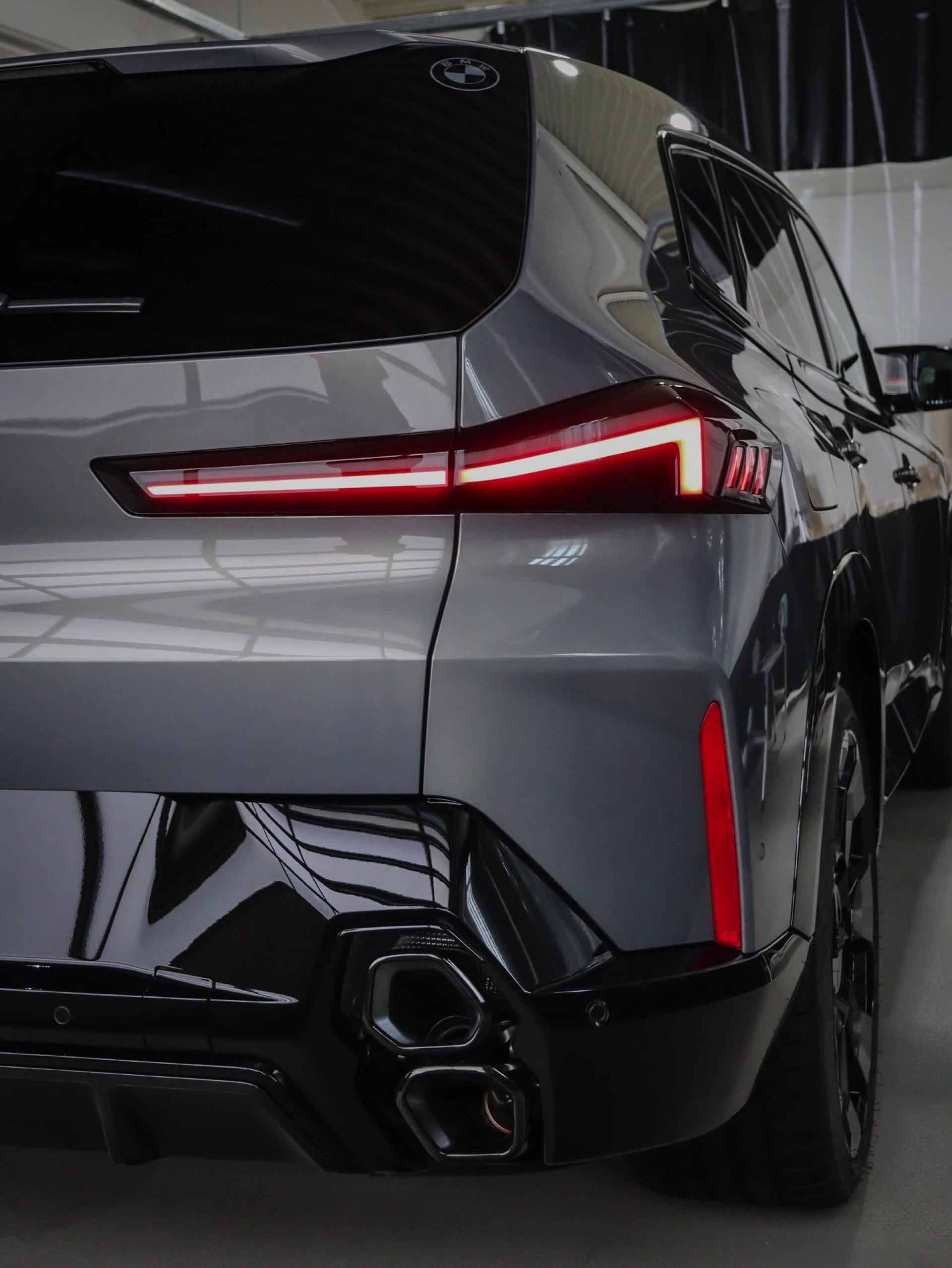 Die Lackierung in Stratusgrau (Farbcode 440) wird bei seinem Fahrzeug mit der Shadow Line mit erweiterten Umfängen kombiniert, sodass fast alle serienmäßig goldenen Details in Hochglanz-Schwarz gehalten sind. Hierzu zählen insbesondere die Einfassungen von Nieren und Fenstern, die mit einem Finish in Gold für einen ganz anderen Auftritt sorgen würden, der gerade in Europa nicht jedermanns Geschmack trifft. Auch ohne goldene Details ist der BMW XM alles andere als ein unauffälliges Fahrzeug, schon allein die beleuchteten Iconic Glow-Nieren und die ohne aktiviertes Abblend- oder Fernlicht extrem schmal wirkenden Scheinwerfer heben das Power-SUV klar vom Rest der Modellpalette ab.