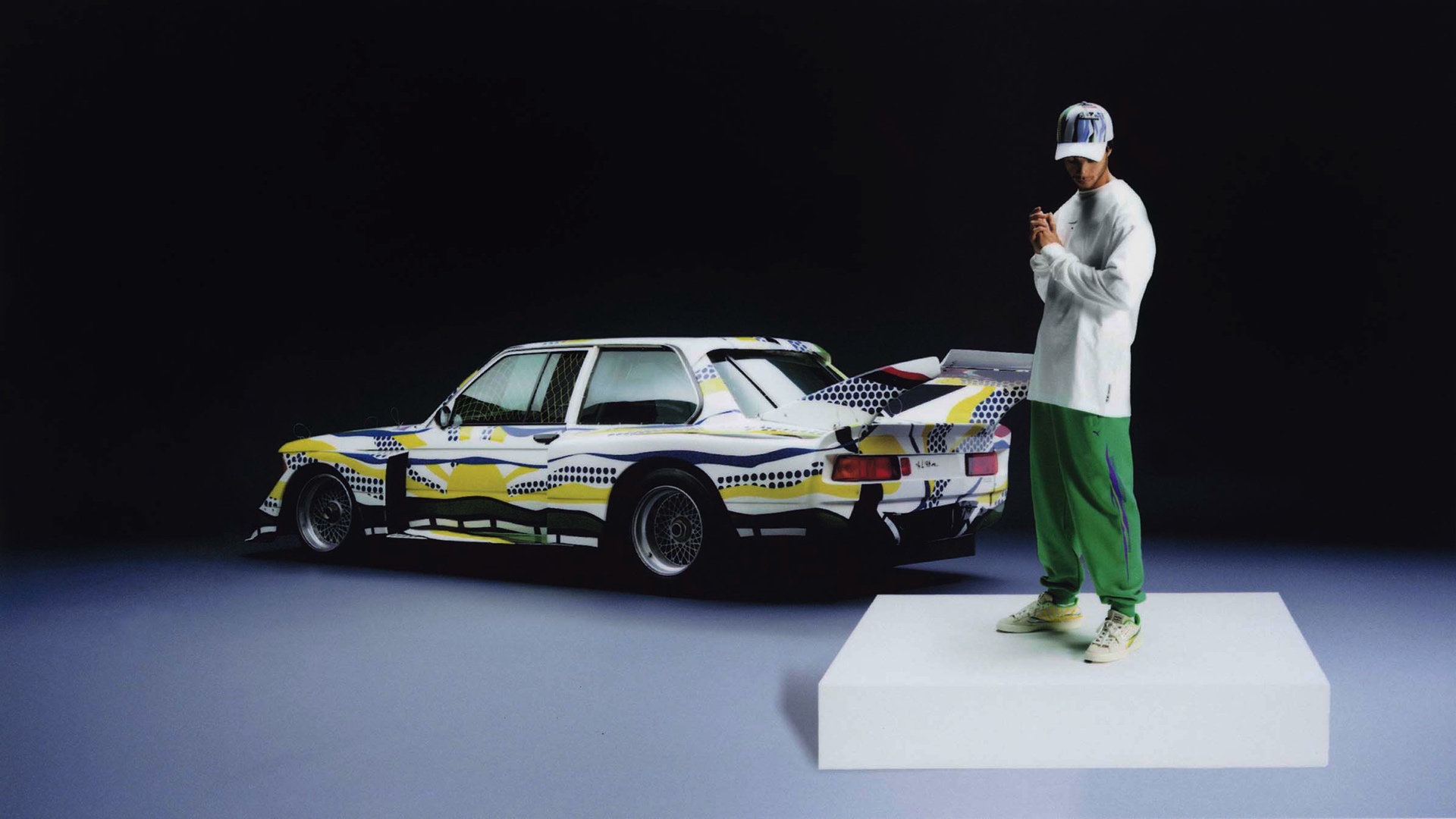 Als Leinwand diente dem Künstler ein BMW 320i Turbo auf Basis der ersten 3er-Generation (E21): Der Rennwagen kam bei den 24 Stunden von Le Mans zum Einsatz und fuhr dort tatsächlich einen Klassensieg ein – zu einer Zeit, als bei Serien-BMW noch lange nicht an Motoren mit Turbo-Aufladung zu denken war und die meisten 3er sogar noch mit Vergaser unterwegs waren. In der Rennversion trugt der Turbo-3er nicht nur einen riesigen Heckflügel und mächtige Kotflügel-Verbreiterungen, sondern als Art Car auch die für Roy Lichtenstein typischen “Ben-Day-Dots”: "