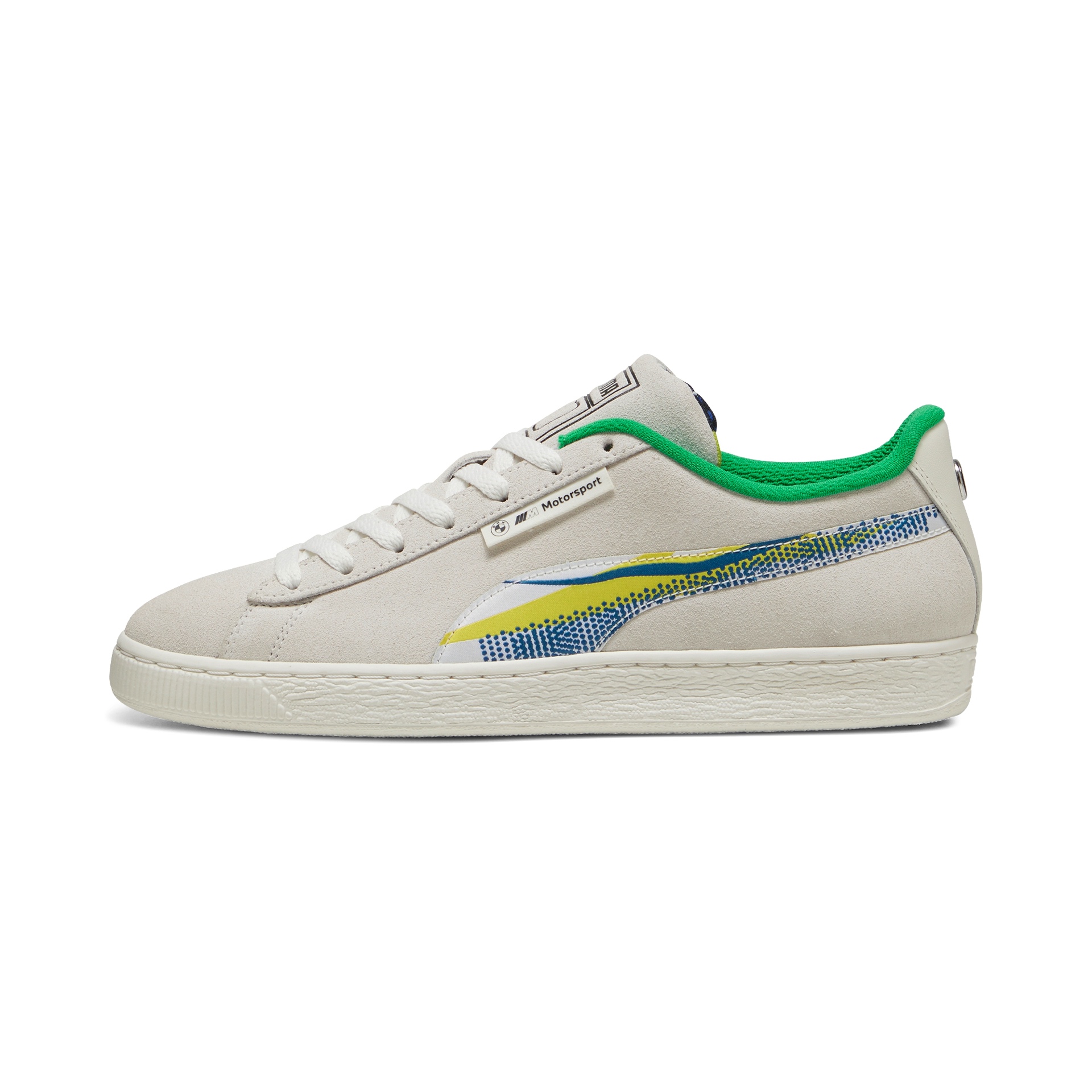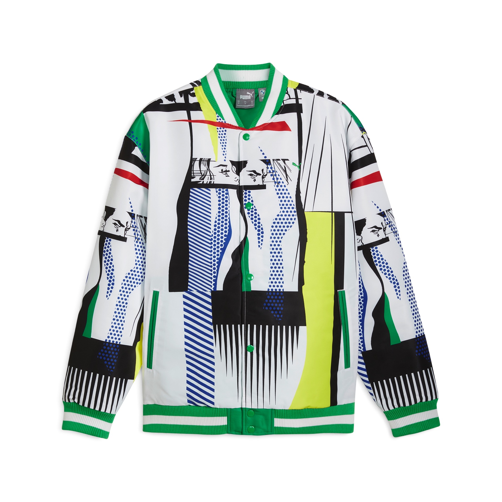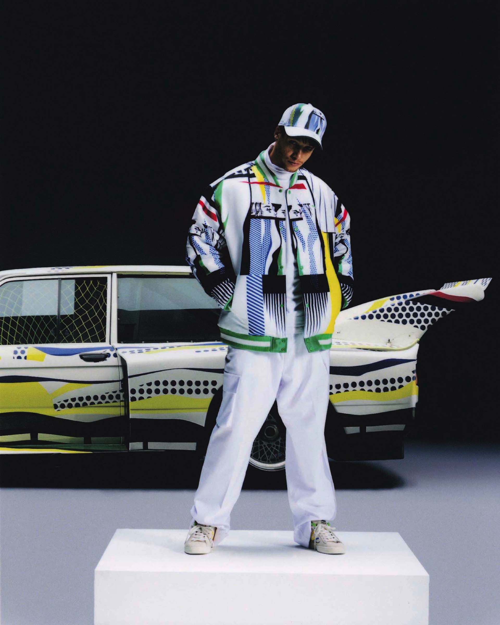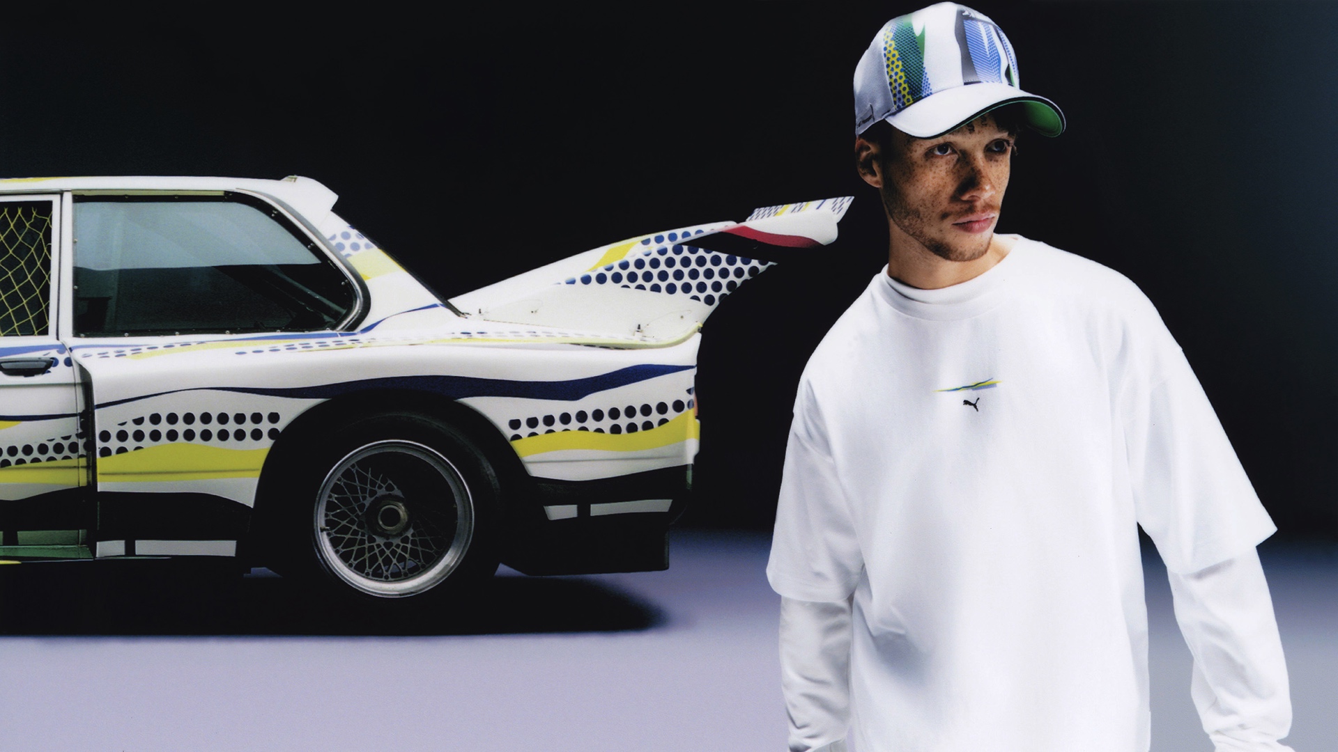Die farbigen “Ben-Day-Dots” sind auch das wiederkehrende Element auf den Kleidungsstücken der Puma BMW Art Car Capsule Collection. Die Kollektion setzt sich aus Jacke, Hose, T-Shirt, Cap und Sneakern zusammen, sodass sich Lichtenstein-Fans von Kopf bis Fuß im Look des Art Cars einkleiden können. Natürlich darf dabei auch der eine oder andere Hinweis auf BMW Motorsport nicht fehlen.