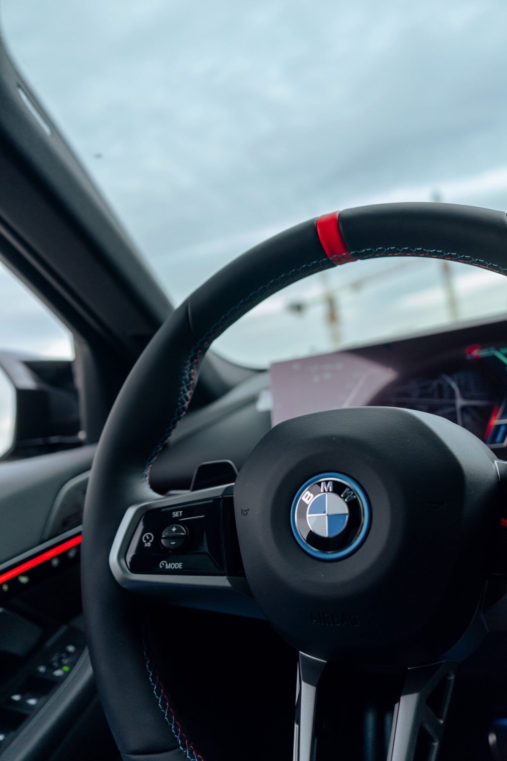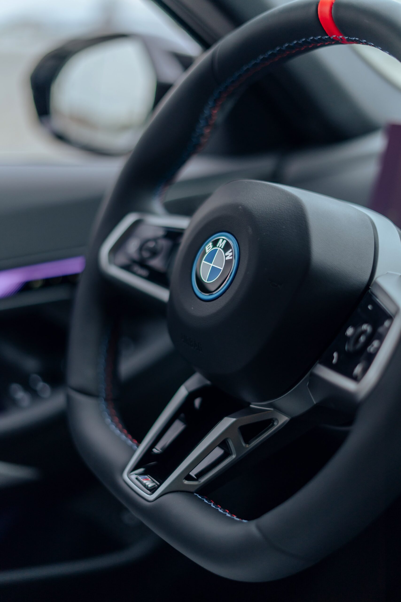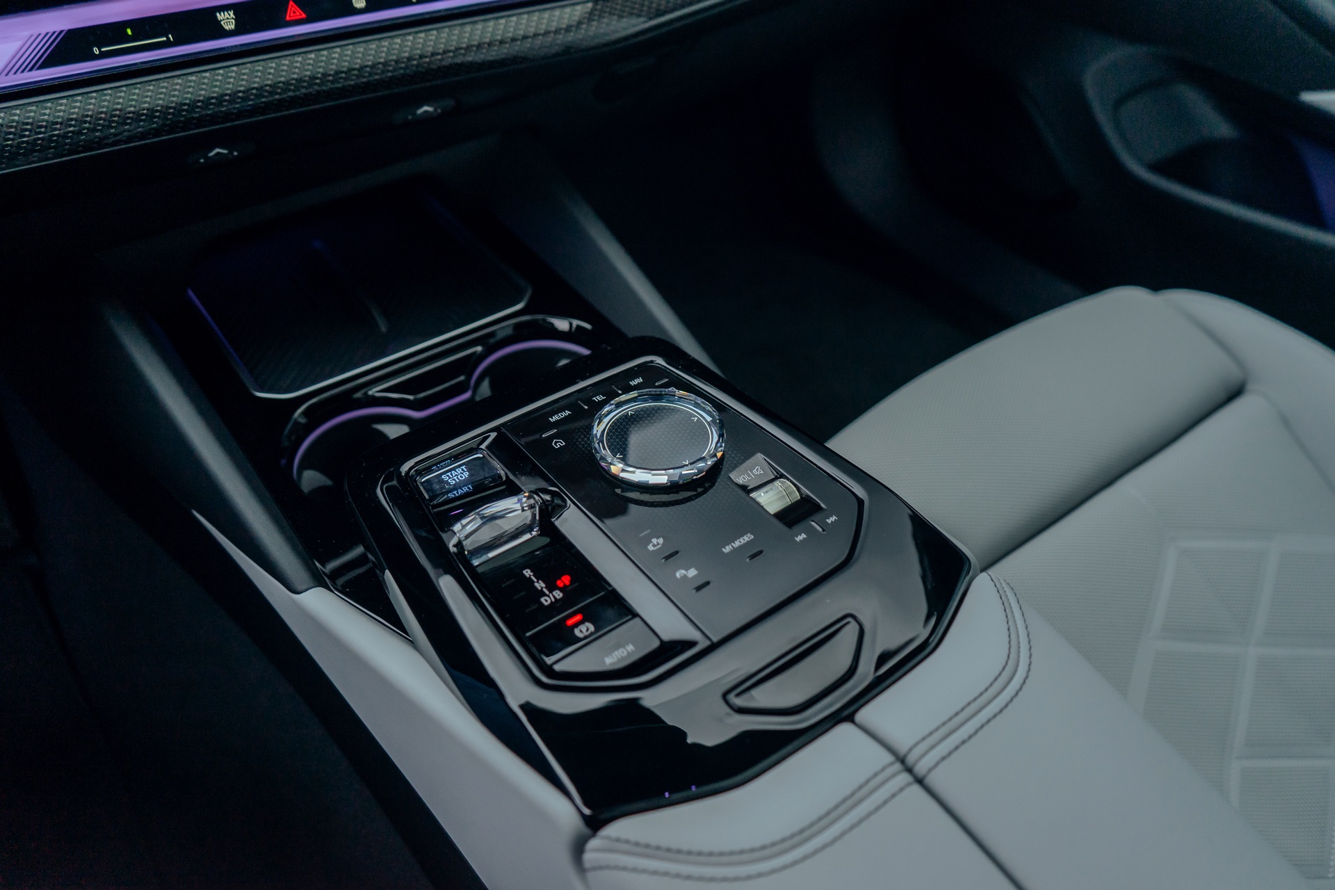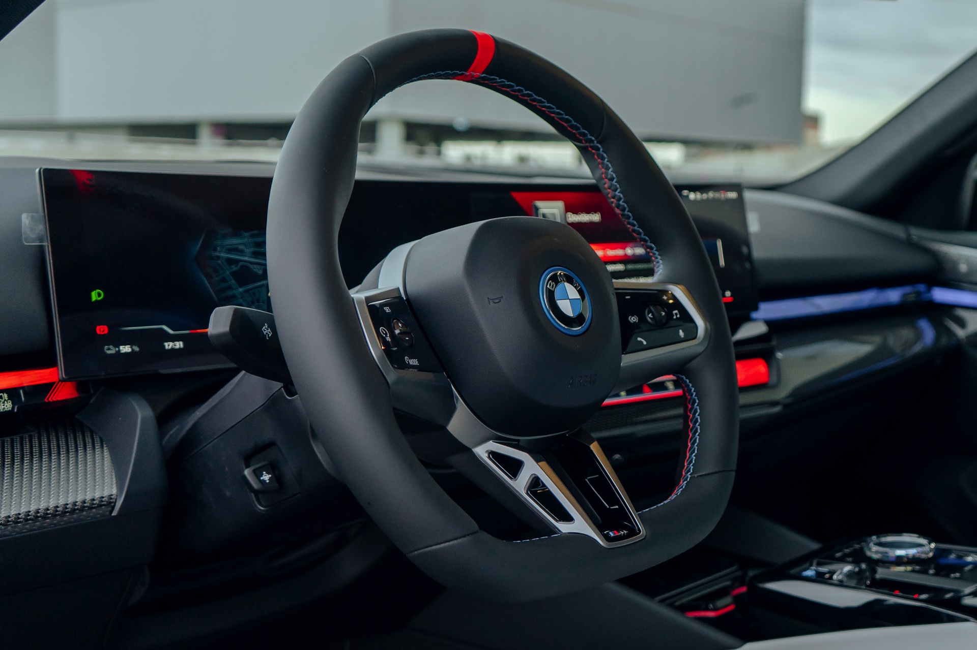 Im Innenraum weist vor allem die rote 12-Uhr-Markierung am Lenkrad auf den 601 PS starken Antrieb der Limousine hin, bei entsprechender Farbwahl für die Interaction-Bar gibt es aber noch einige weitere rote Elemente für einen sportlicheren Touch. Kombiniert werden die dynamischen Details mit der edlen BMW Individual Bicolor-Lederausstattung ‘Merino’ in Silverstone II und Atlas Grey sowie mit den Interieurleisten ‘Carbon Fibre’ samt eingearbeiteter Silberfäden.