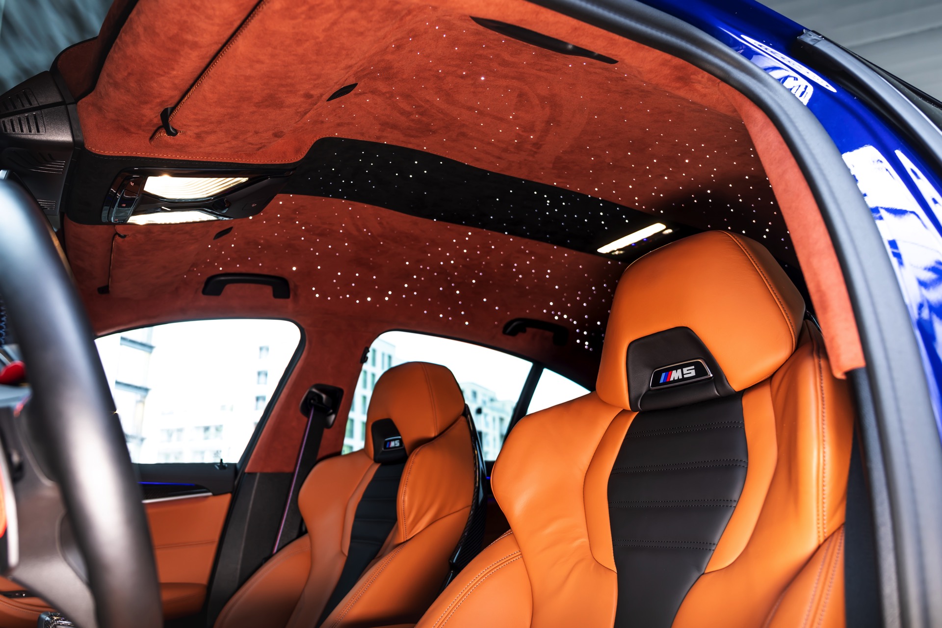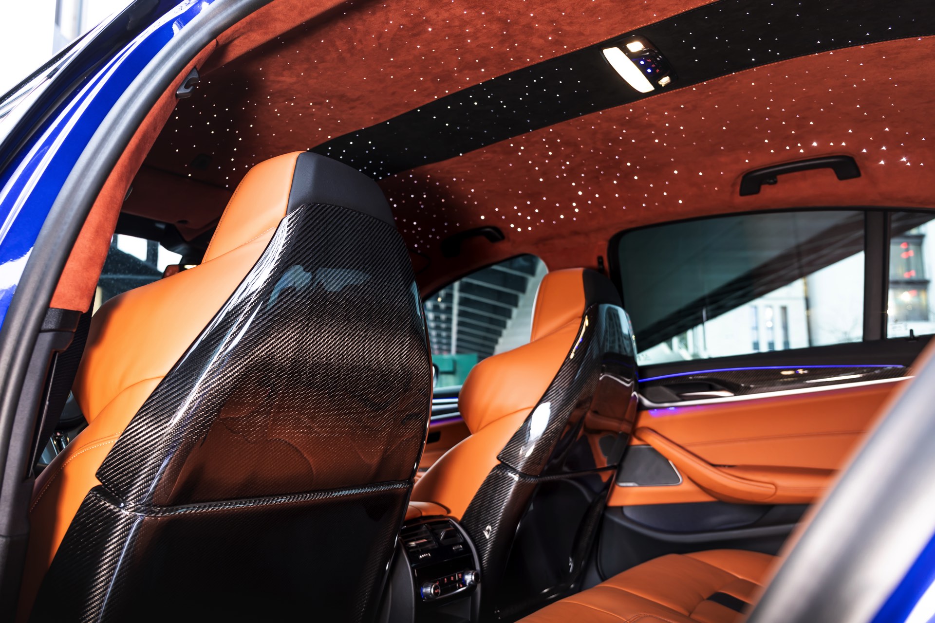Betont edel geht es im Innenraum zu: Hier trifft braunes Leder auf jede Menge Alcantara und Carbon, ein Sky Roof genanntes Sternen-Firmament im Dachhimmel erinnert an die exklusiven Dachgestaltungen von Rolls-Royce.