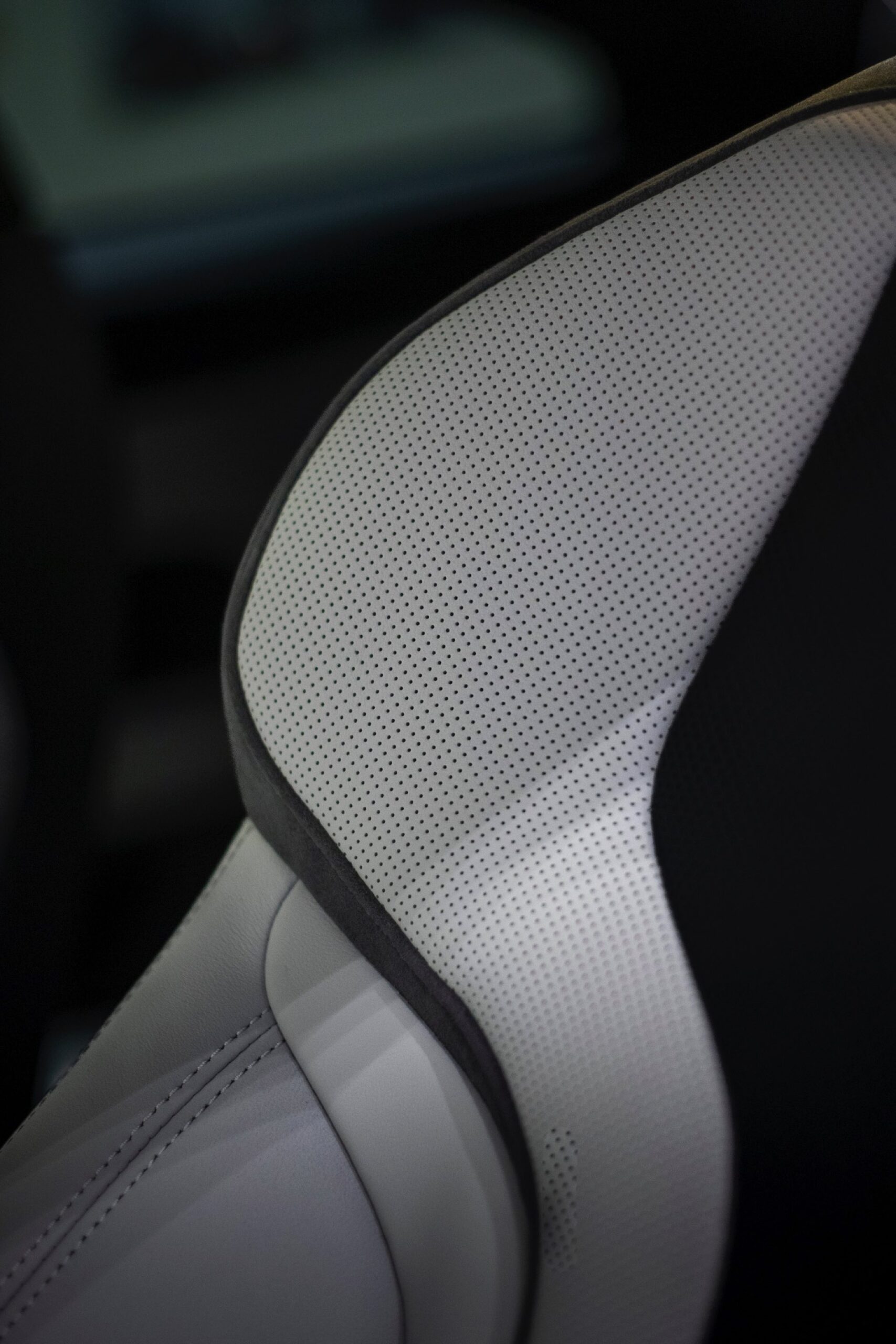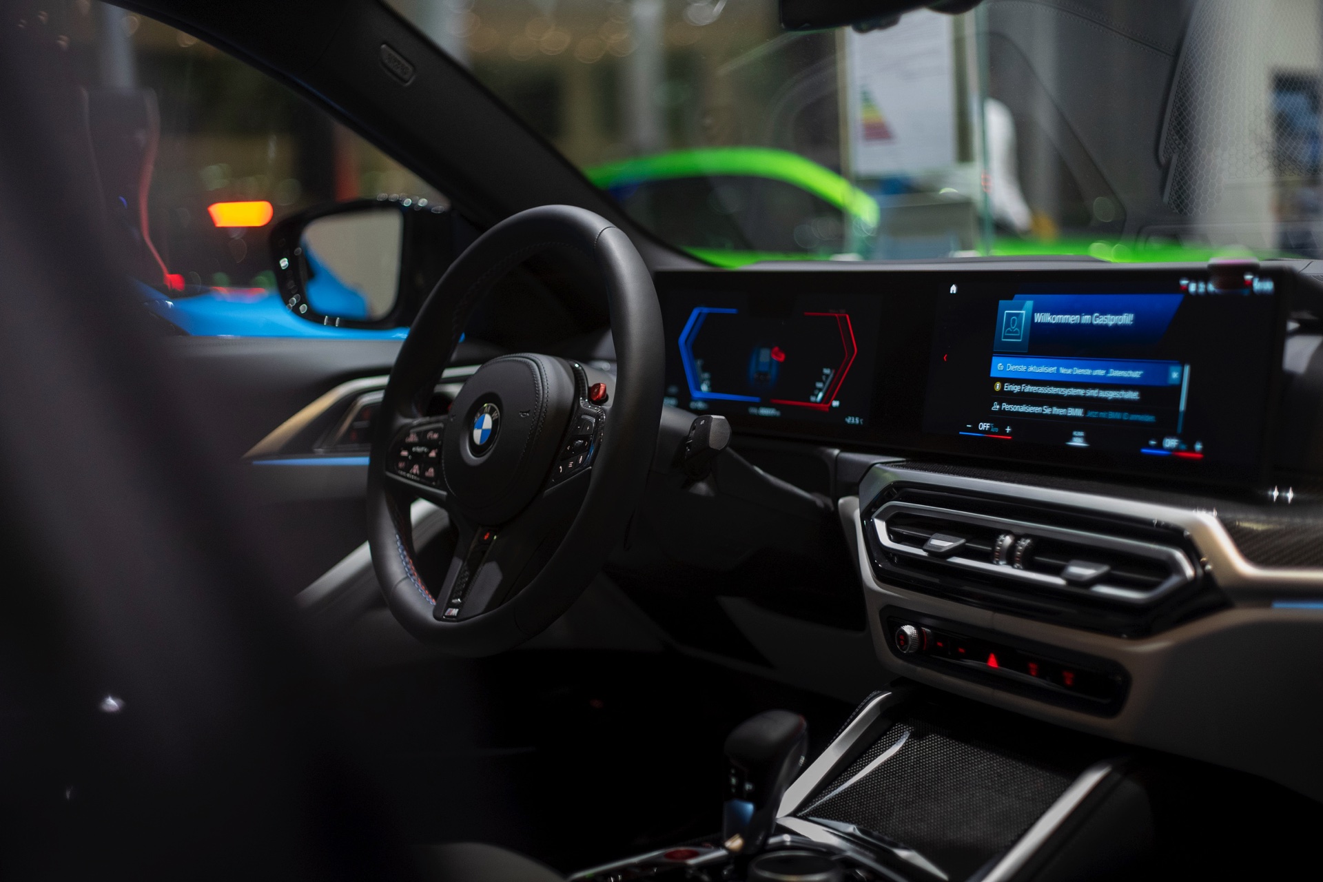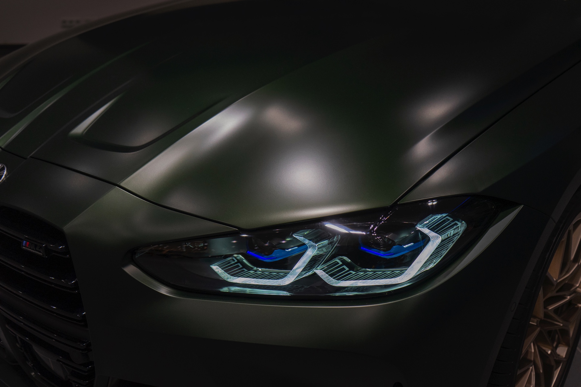 Edel und exklusiv geht es auch im Innenraum zu: Die äußere Lackierung in Frozen Deep Green wird beim gezeigten M4 mit der Bicolor Vollleder-Ausstattung Merino in Silverstone und Schwarz kombiniert, dazu kommen die Interieurleisten ‘Carbon Fibre’. Dass dem M4 Competition volle 125 PS zum M5 CS fehlen, dürfte sich in dieser Umgebung leicht verschmerzen lassen.