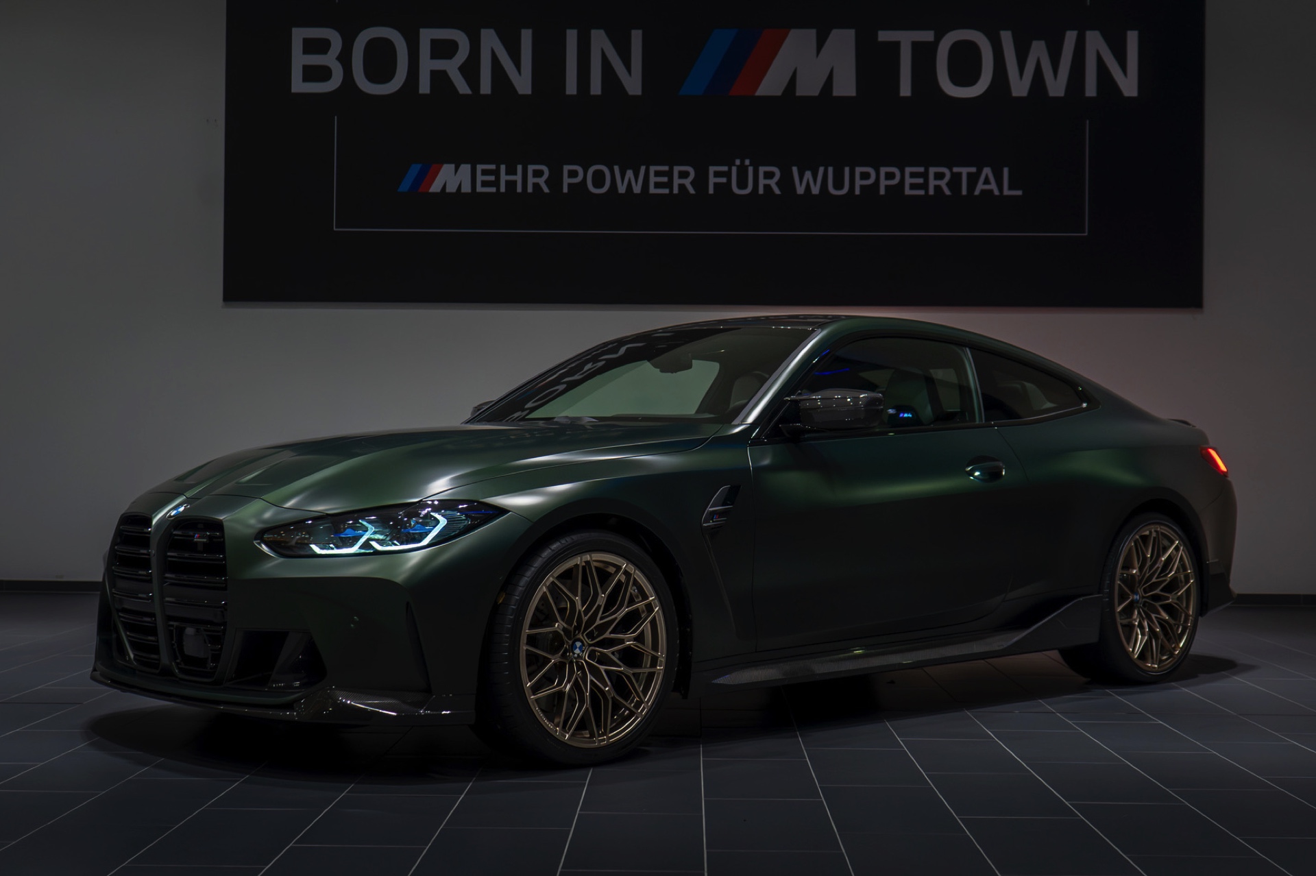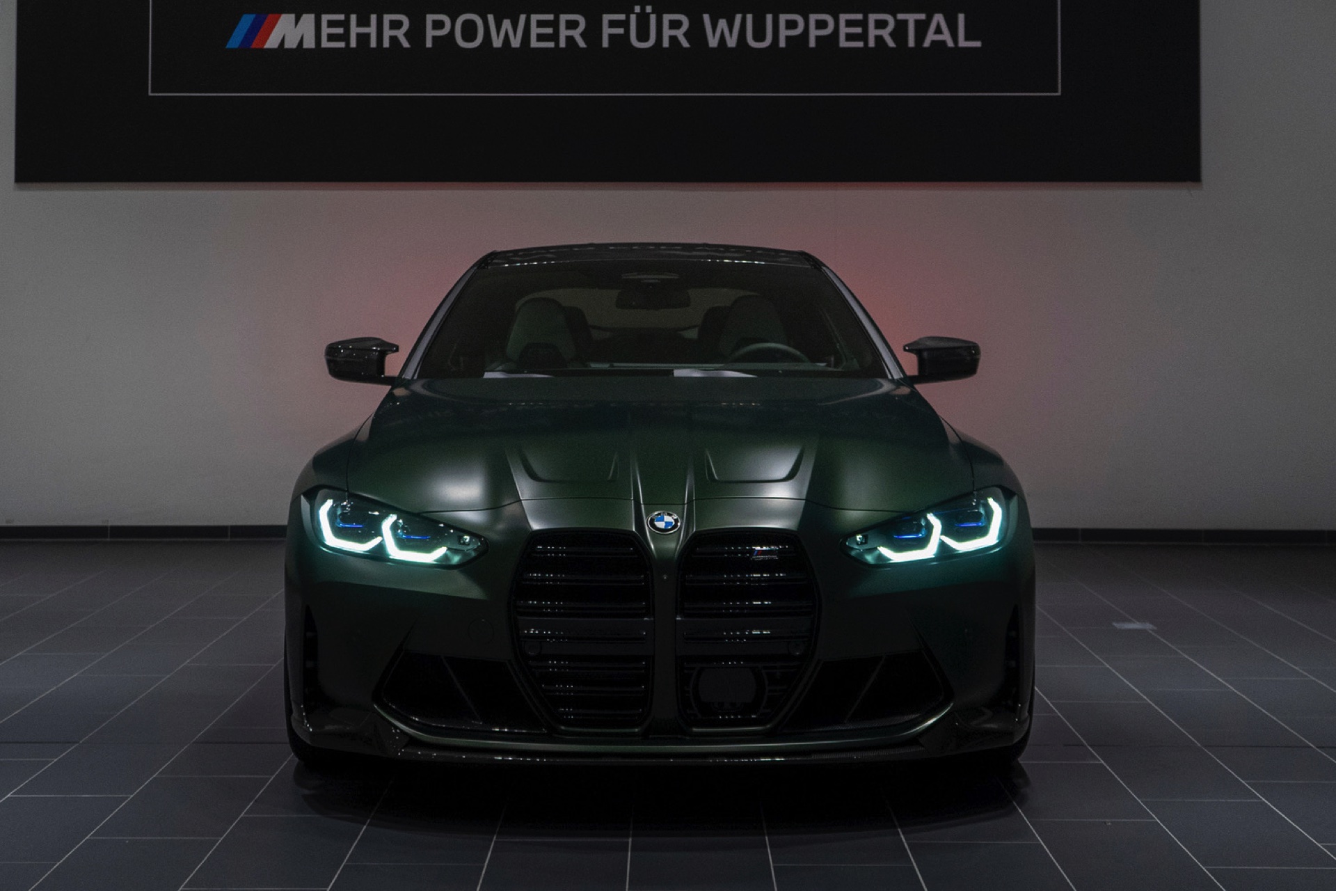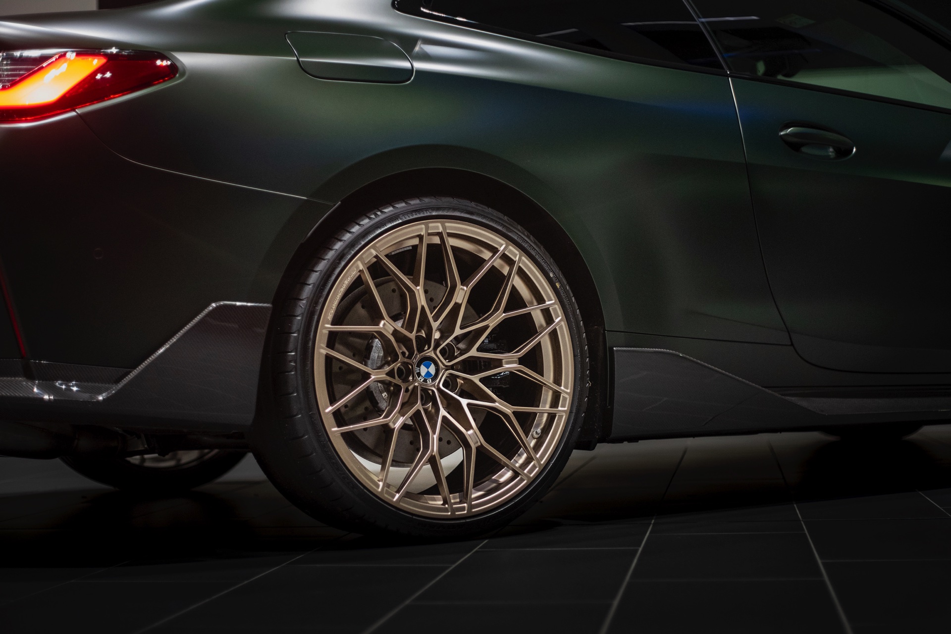 Aktuelle Fotos aus dem Wuppertaler M-Stützpunkt der Procar Automobile GmbH zeigen uns ein BMW M4 Coupé (G82), das nicht nur eine Individual-Lackierung in Frozen Deep Green trägt: Das matte Dunkelgrün wird noch mit einigen Tuning-Teilen aus dem Programm von BMW M Performance ergänzt, sodass auch an die charakteristischen goldenen Felgen des M5 CS erinnert werden kann. Die Zubehör-Felgen Kreuzspeiche 1000 M tragen eine Lackierung in Goldbronze matt, passen damit perfekt zur matten Hauptlackierung und sind auch für die aktuelle Generation von M2 und M3 erhältlich. "