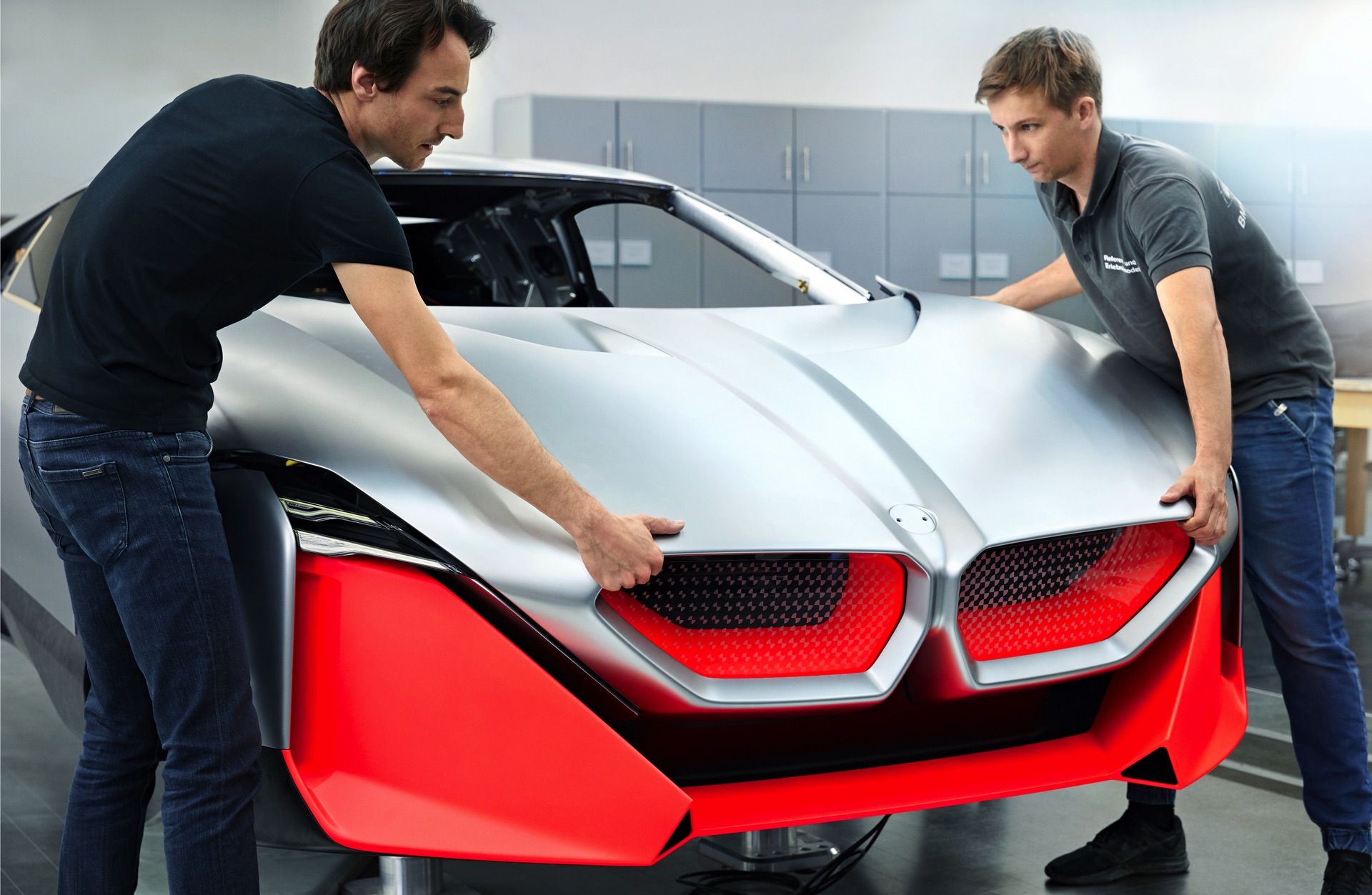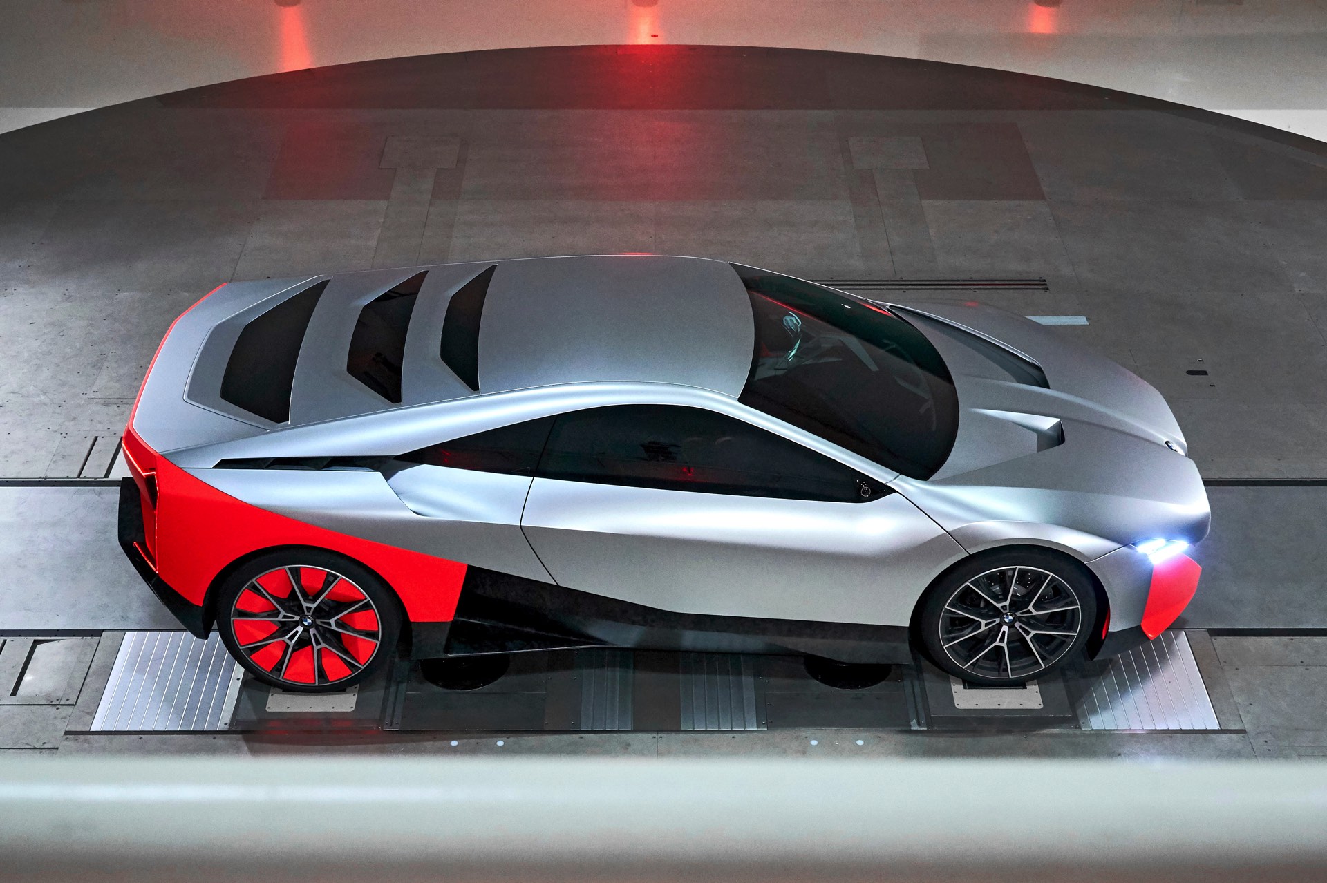 Wichtigster Grund für den Verzicht auf eine Sechszylinder-Option war die gewünschte Nähe zum ursprünglichen i8, dessen Carbon-Fahrgastzelle in angepasster Form weiterhin genutzt werden sollte. Vor allem mit Blick auf die Flügeltüren wurde allerdings auch darüber nachgedacht, eine neue Basis zu entwickeln: Gerade die Türen hätten doch immer an den i8 erinnert, obwohl der potenzielle M1-Nachfolger anders positioniert werden sollte.