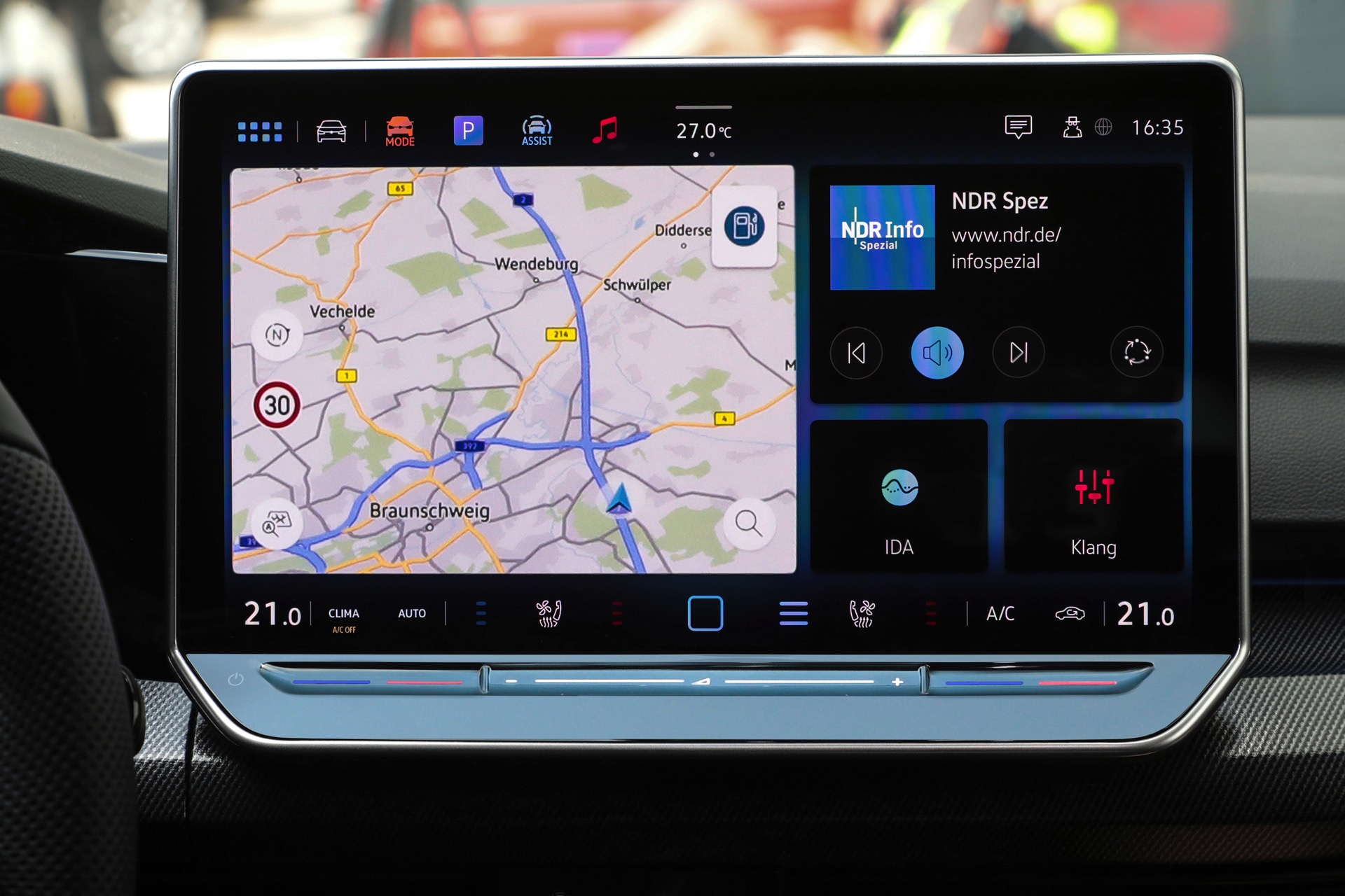 Bei den spürbaren Verbesserungen spielt zumindest aus Fahrersicht das Comeback der Knöpfe die Hauptrolle: Im Cockpit und vor allem am Lenkrad finden sich wieder einige physische Knöpfe, mit denen häufig genutzte Features wie die Lautstärke-Regelung, der Senderwechsel im Radio oder auch die Bedienung von Tempomat & Co. ohne Nutzung des Touchscreen gesteuert werden können. Für alle komplexeren Infotainment-Funktionen spielt der aufrecht stehende Touchscreen aber auch weiterhin eine zentrale Rolle, direkt darunter sind physische Knöpfe für die Temperatur-Regelung der Klimaanlage angebracht. Eine neue Infotainment-Software samt ChatGPT-Integration soll die Bedienung der zahlreichen Funktionen deutlich erleichtern.