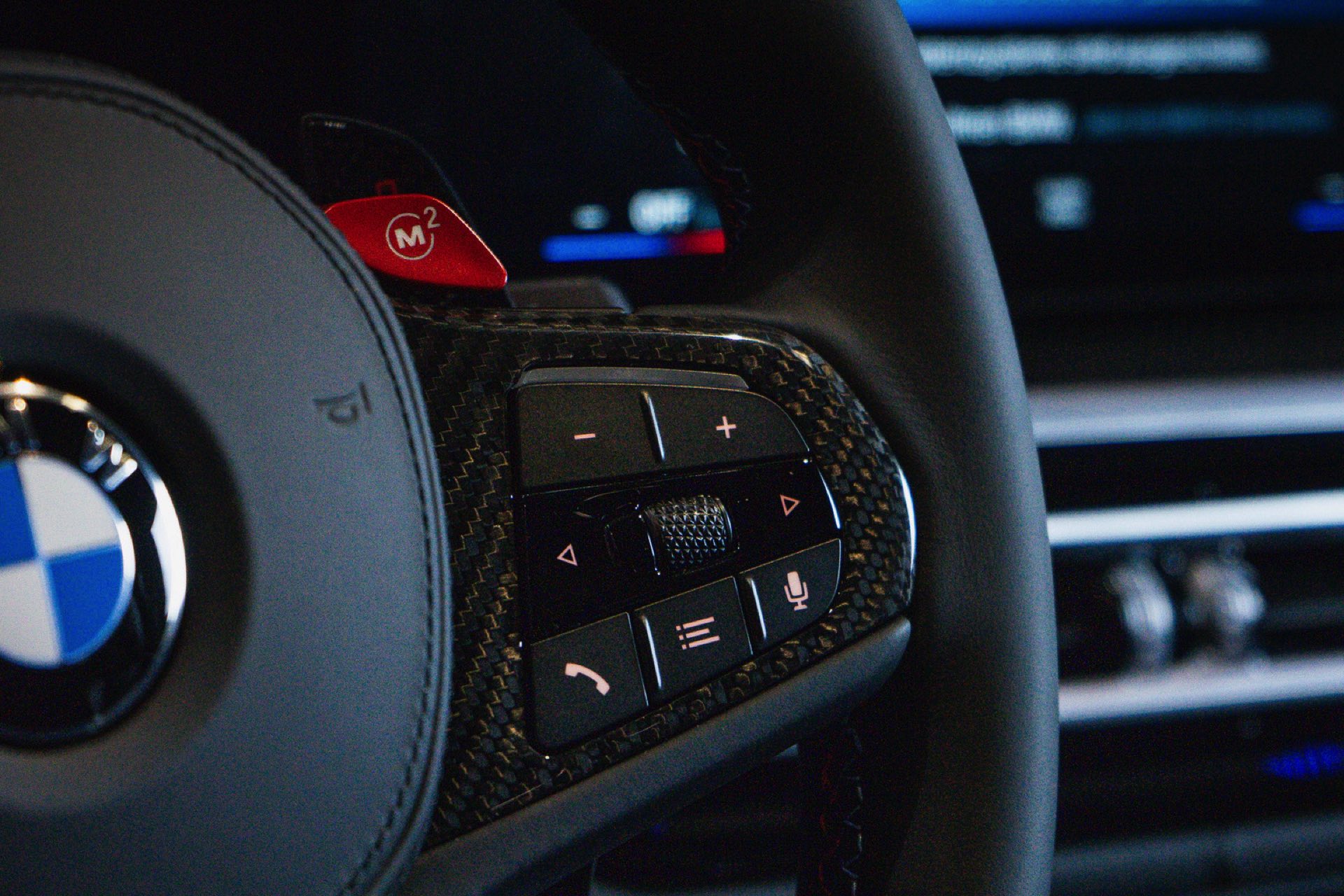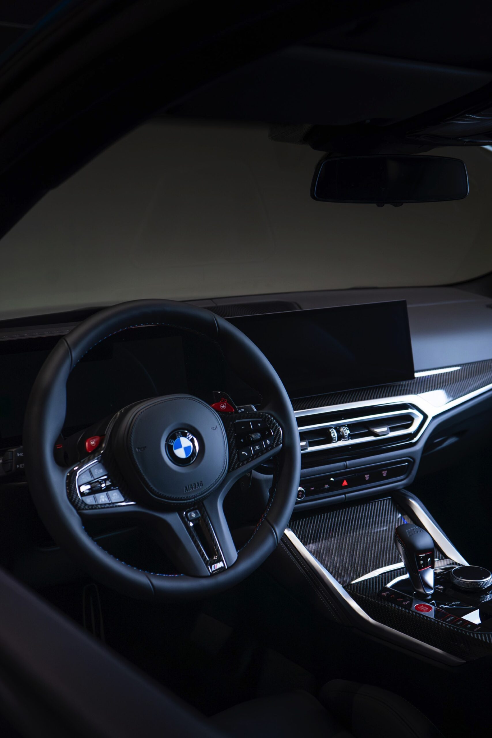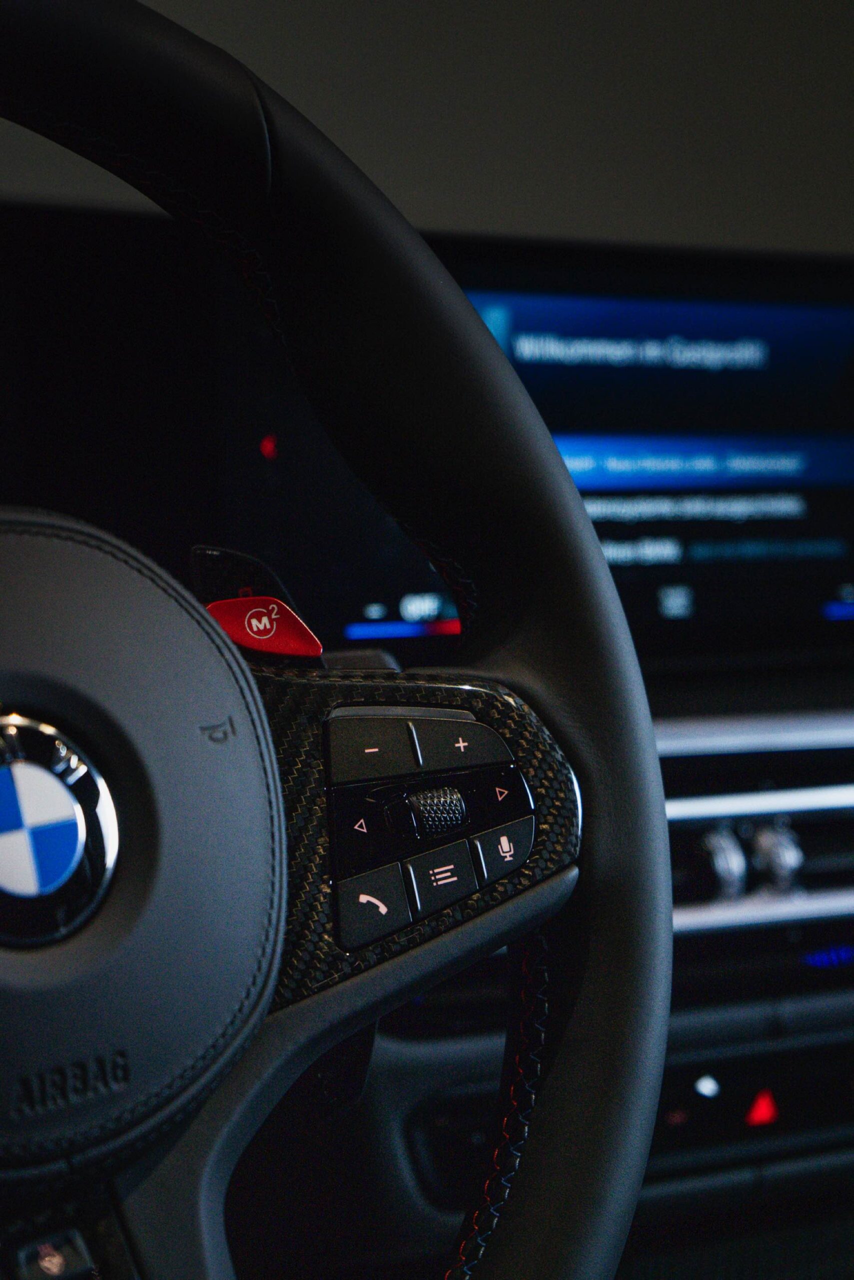 Kombiniert werden die beiden Individual-Akzente in Long Beach Blue und Hochglanz-Schwarz mit schwarzen Felgen und einigen Carbon-Elementen: Nicht nur das Dach ist in Sicht-Carbon ausgeführt, dank des 4.700 Euro teuren M Carbon Exterieur-Pakets bestehen auch die Lufteinlass-Blenden unterhalb der Scheinwerfer, die M-Außenspiegel und die Heckspoiler-Lippe aus dem leichten Hightech-Werkstoff.
