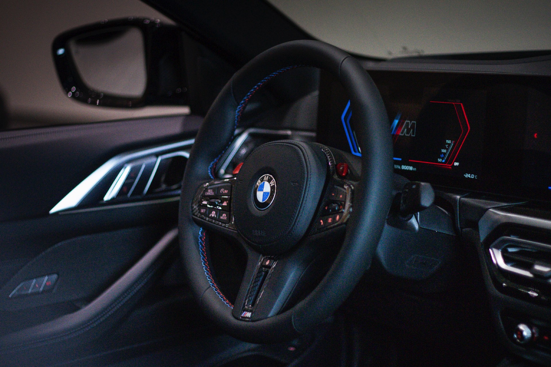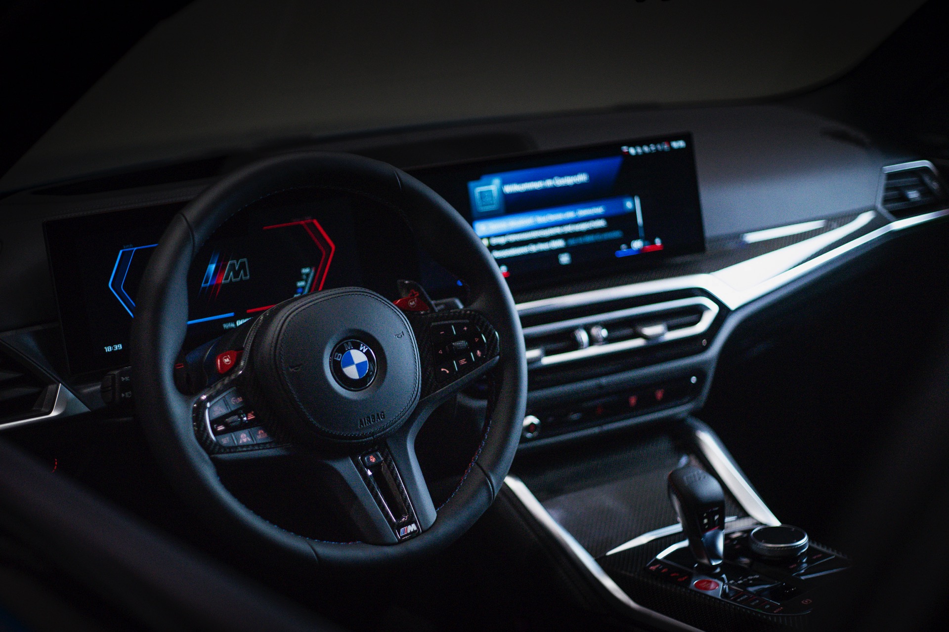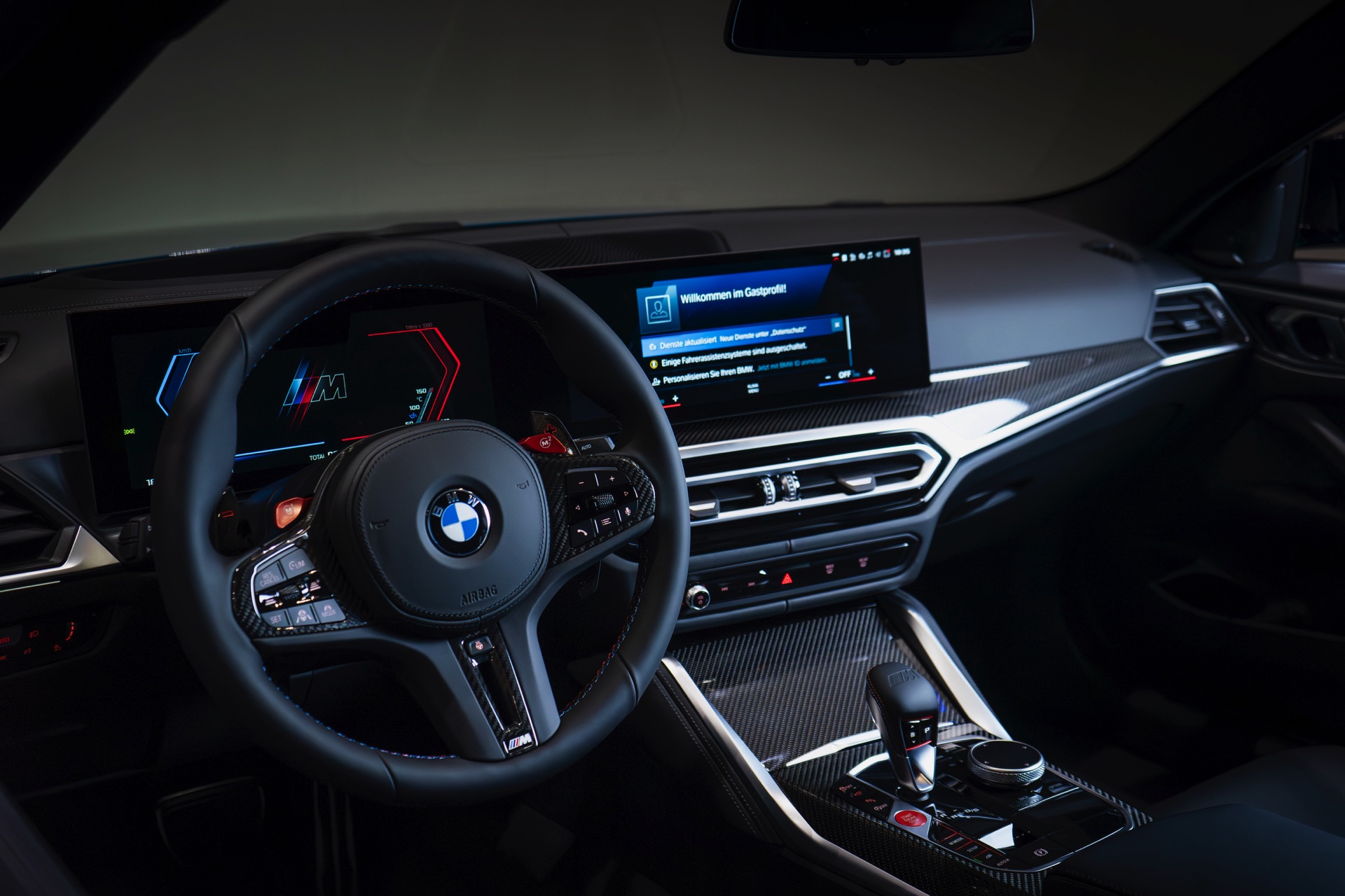 Kombiniert werden die beiden Individual-Akzente in Long Beach Blue und Hochglanz-Schwarz mit schwarzen Felgen und einigen Carbon-Elementen: Nicht nur das Dach ist in Sicht-Carbon ausgeführt, dank des 4.700 Euro teuren M Carbon Exterieur-Pakets bestehen auch die Lufteinlass-Blenden unterhalb der Scheinwerfer, die M-Außenspiegel und die Heckspoiler-Lippe aus dem leichten Hightech-Werkstoff.