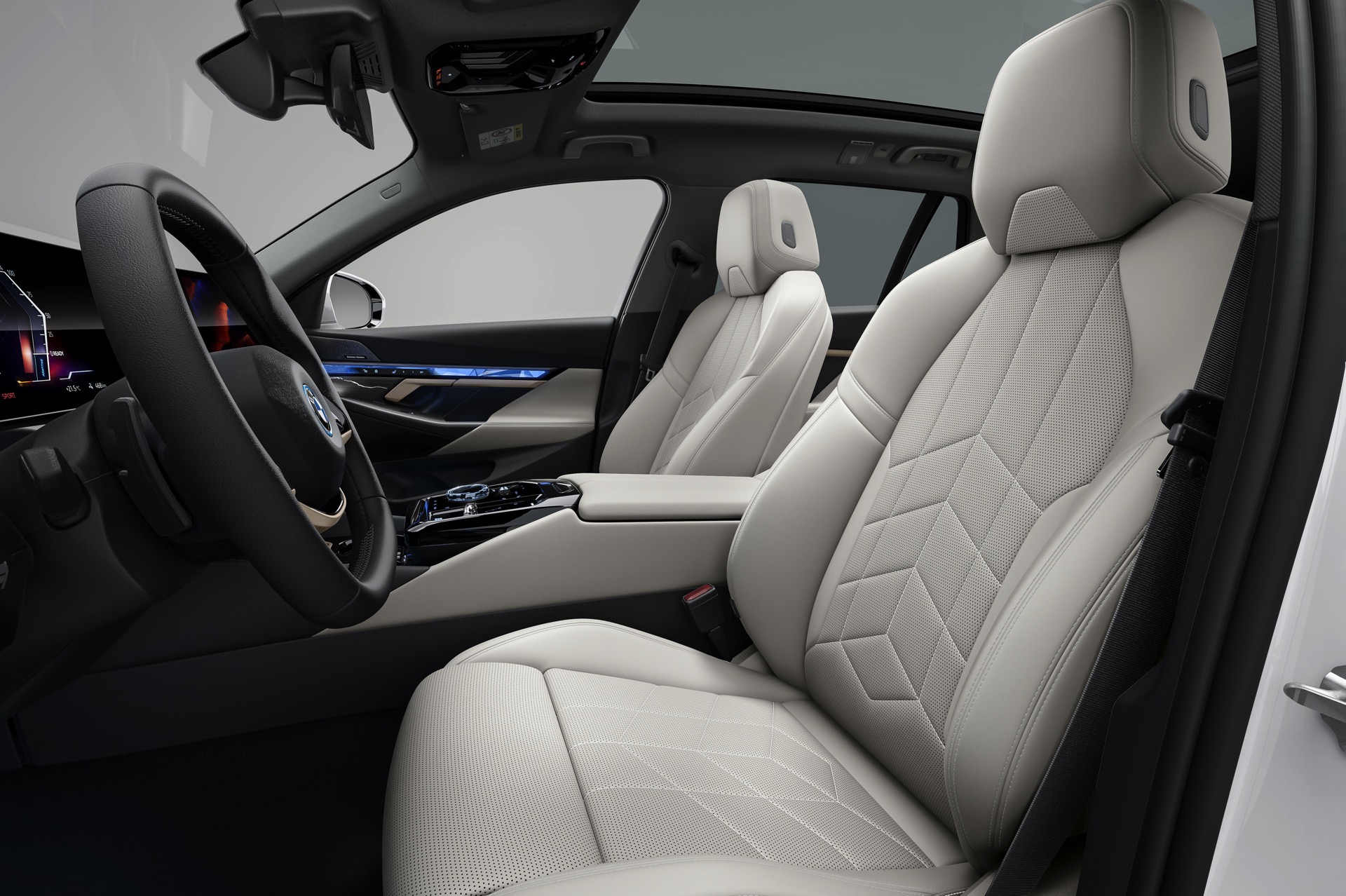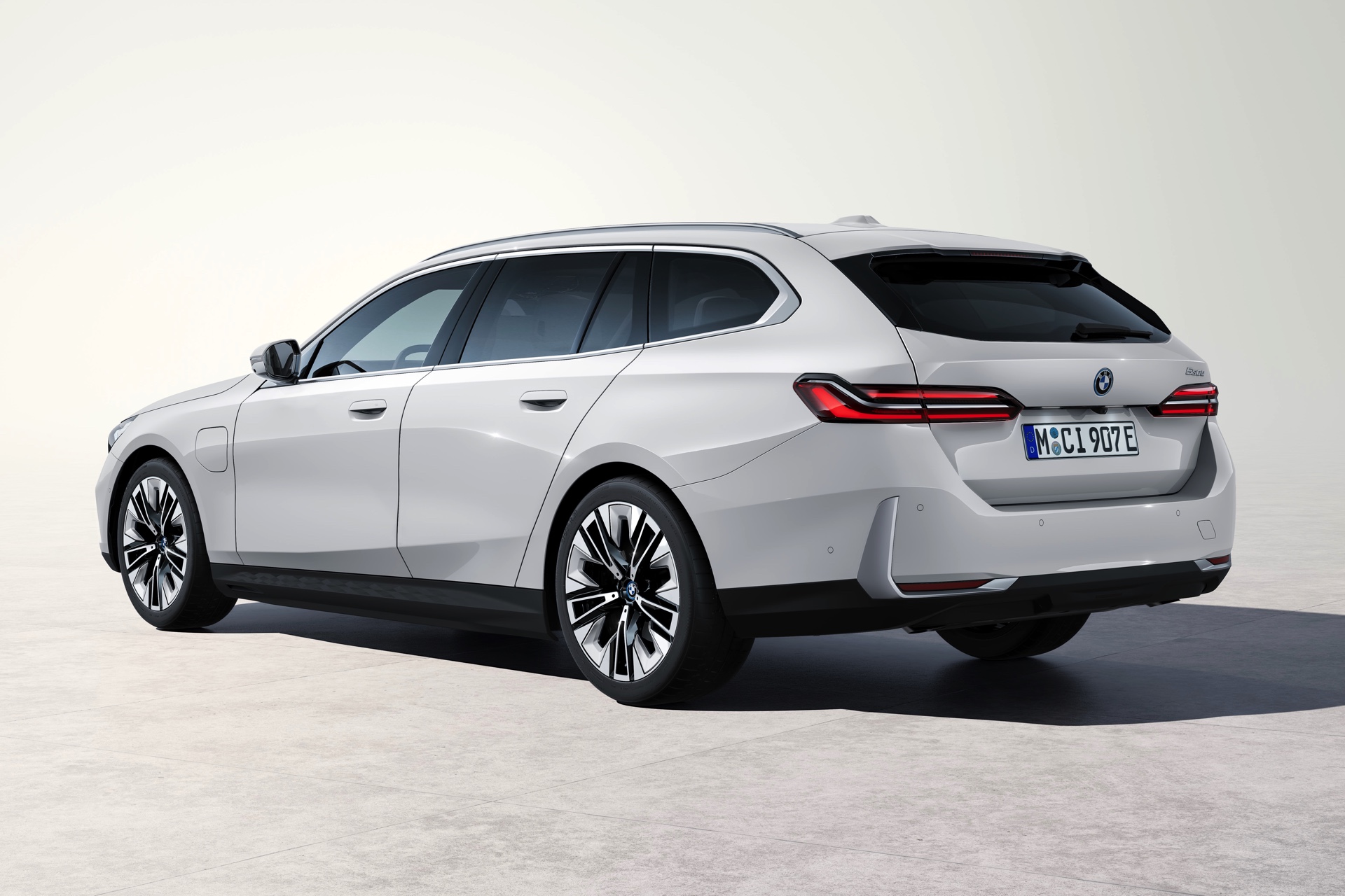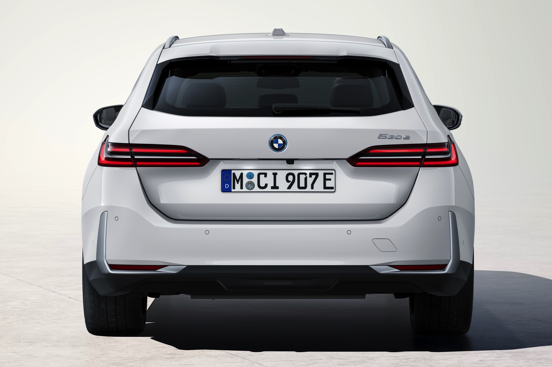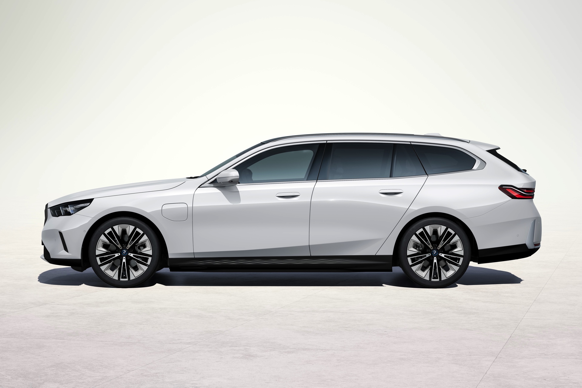 Erste Fotos vom Einstieg in die Welt des neuen 5er Touring zeigen uns einen 530e Plug-in-Hybrid in Alpinweiß uni, wobei wir für die Fotos nicht näher auf den Hybrid-Antrieb eingehen müssen: Abgesehen von der zusätzlichen Ladeklappe im vorderen Kotflügel unterscheidet sich der ab Sommer 2024 auch mit Allradantrieb xDrive erhältliche 530e nicht von einem 520d oder einem elektrischen i5 Touring. Im Serien-Look trägt der Business-Kombi Zierelemente in satiniertem Aluminium, die vor allem im Kontrast zu dunklen Außenfarben für einen eleganten Touch sorgen.