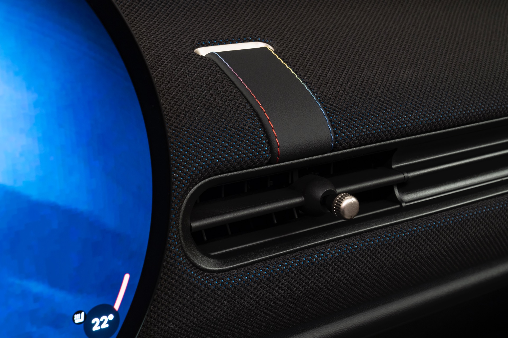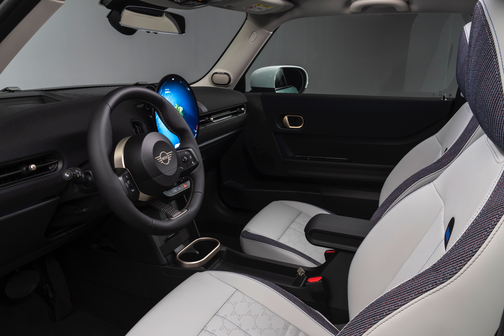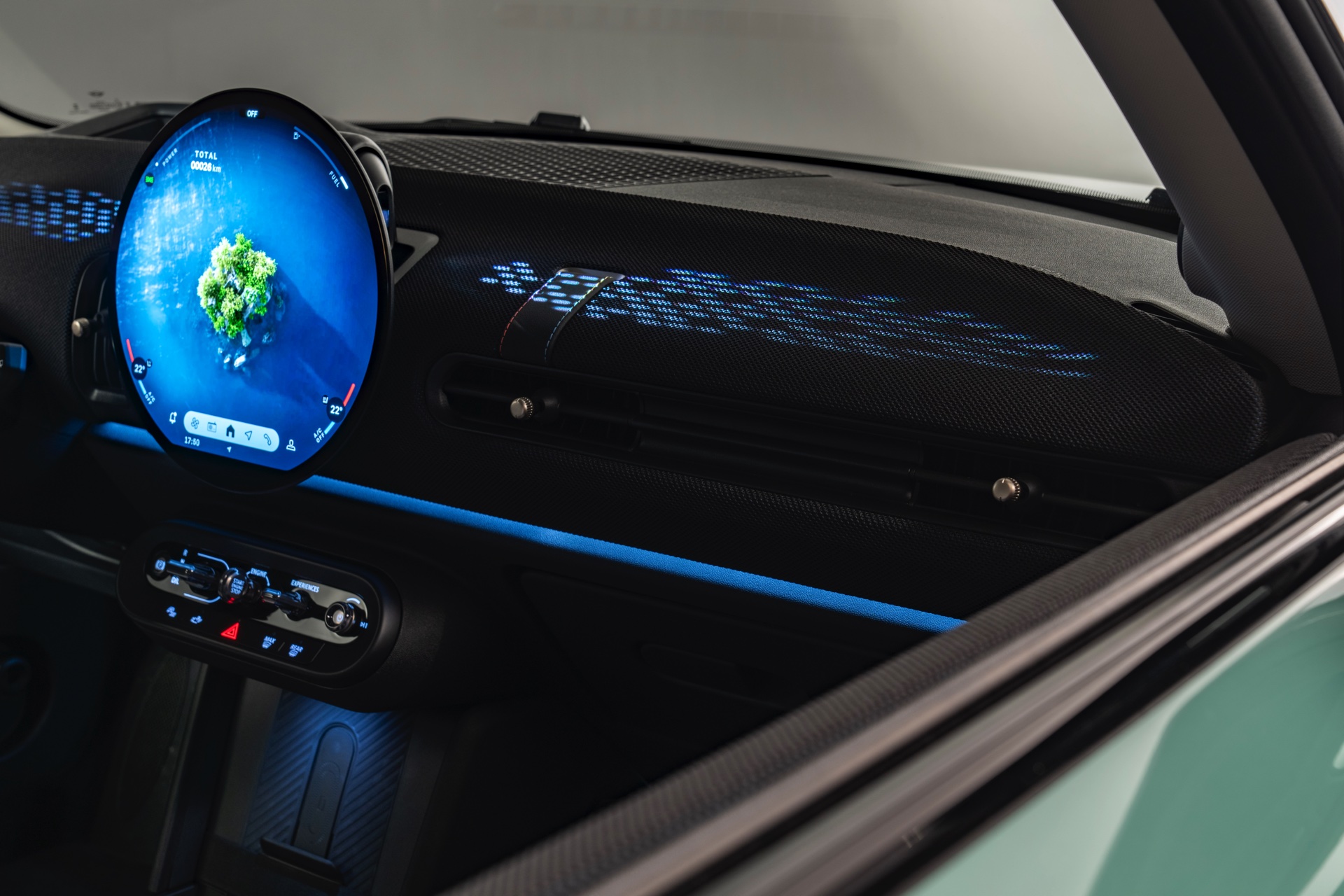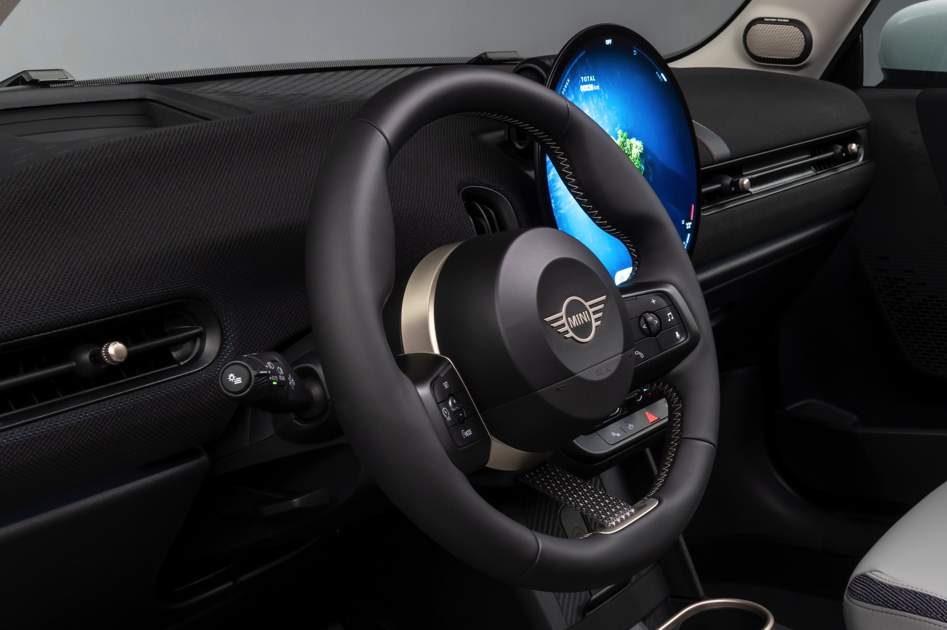 Auch innen orientiert sich der neue MINI 2024 eindeutig am elektrischen Zwilling, hier wie da dominiert das runde OLED-Display mit 24 Zentimetern Durchmesser das Cockpit. Platziert ist es auf einer sehr aufgeräumten Instrumenten-Tafel, die mit partiell durchleuchteten Stoff-Oberflächen punktet. Dank dem eng mit BMW iDrive 9 verwandten MINI Operating System 9 auf Android-Basis stehen modernste Features wie die Augmented View mit 3D-Objekten als Navigations-Unterstützung zur Wahl, andere kamera- und radarbasierte Assistenten überwachen die Umgebung und warnen bei Gefahr.