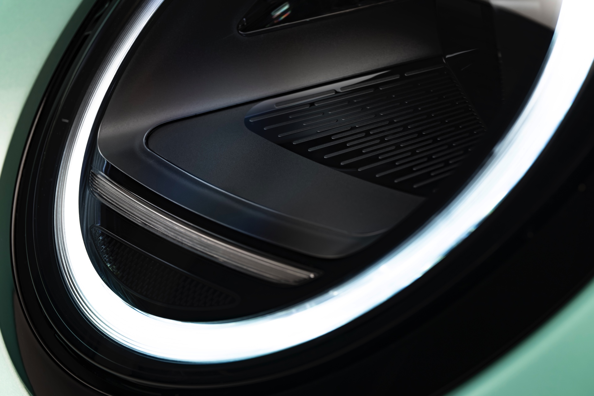Vorn trägt der F66 einen oktagonalen Kühlergrill, der den bisher kleinsten in Serie verbauten Radar-Sensor der BMW Group beherbergt. In Verbindung mit 12 Ultraschallsensoren erhält der MINI so einen wesentlich besseren Eindruck von seiner Umgebung, wovon die Assistenzsysteme des Premium-Kleinwagens deutlich profitieren sollen. Hingucker am Heck sind die völlig neuen Rückleuchten, die wir in dieser Form bisher nur beim elektrischen Schwestermodell J01 gesehen haben und die das Union Jack-inspirierte Design ganz neu interpretieren.