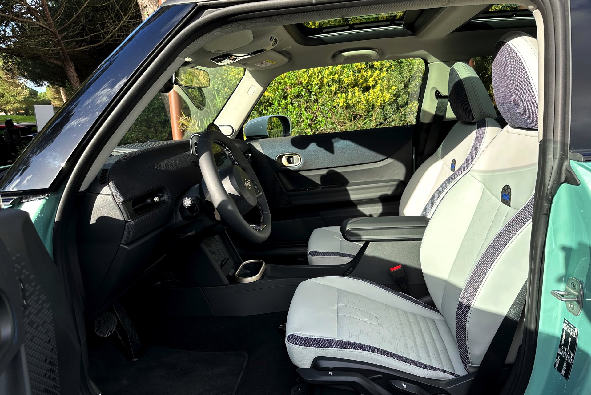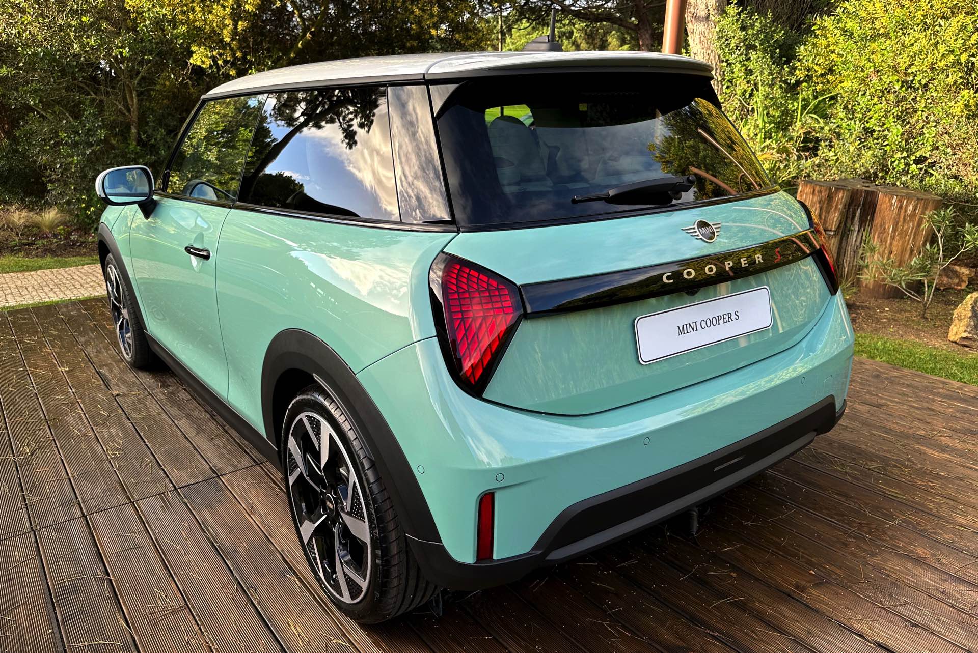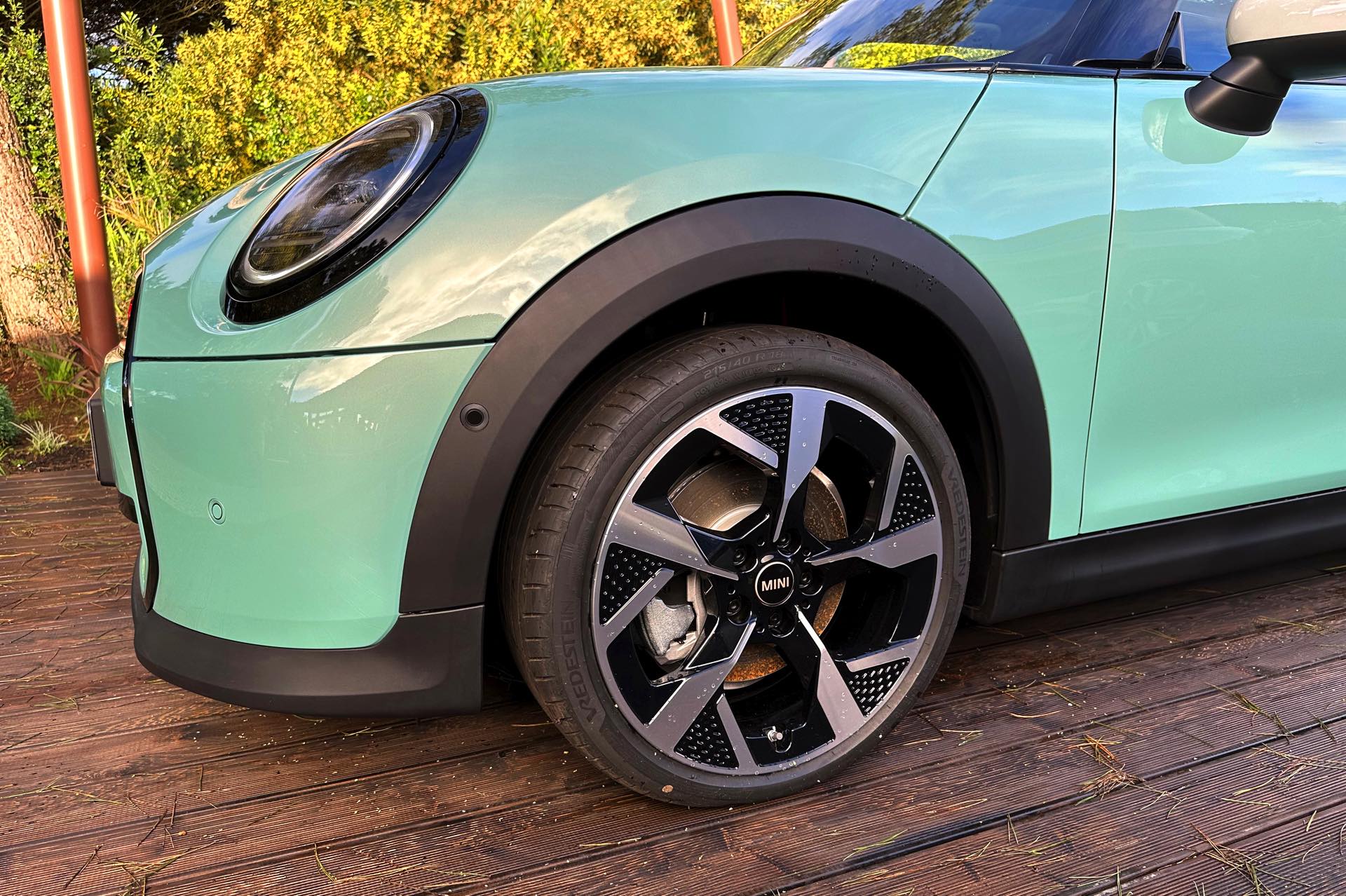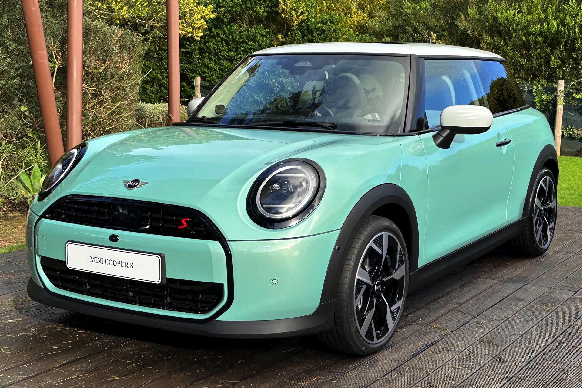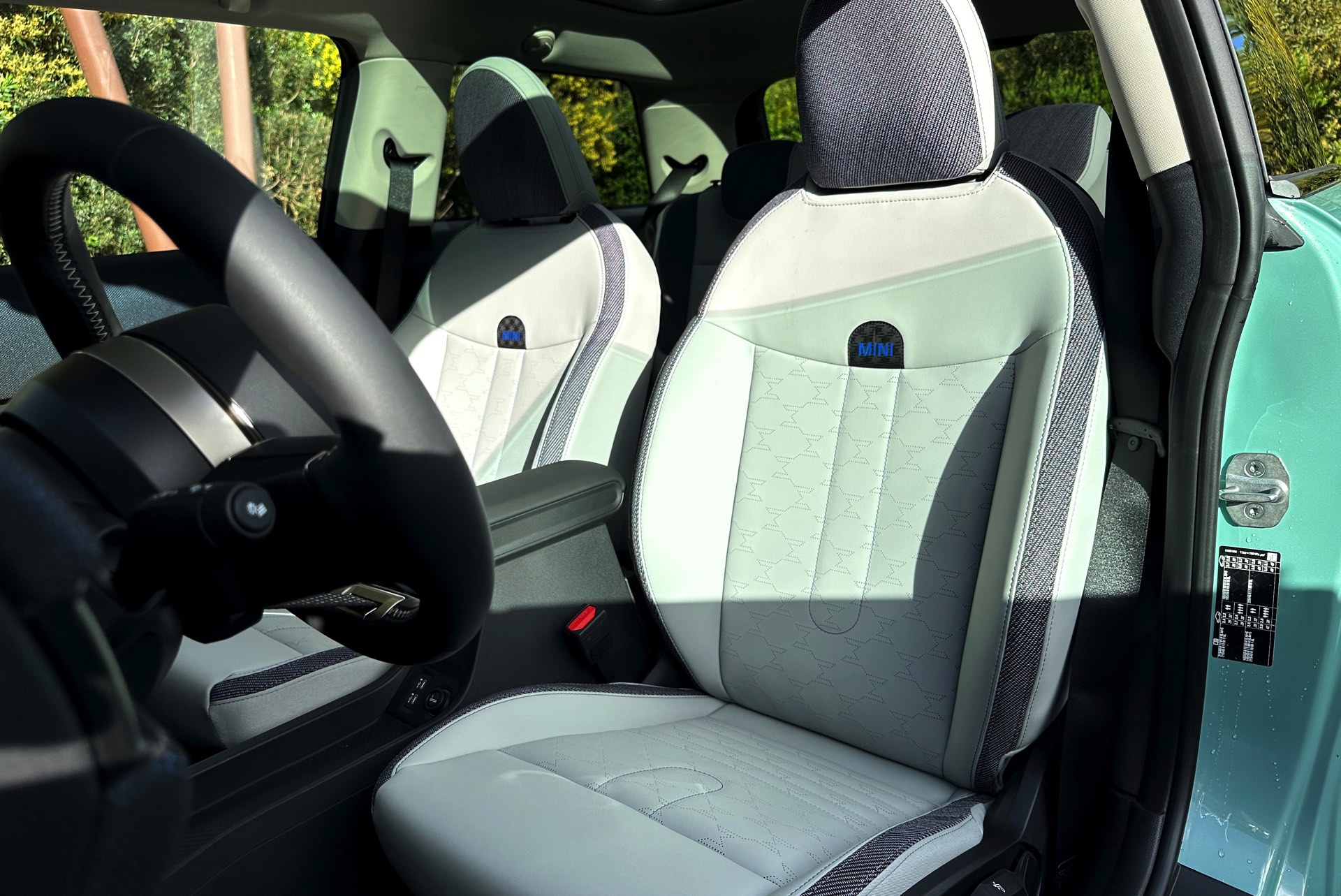 Die Lackierung in Ocean Wave Green ist derzeit nur in Kombination mit dem Favoured Trim erhältlich und kostet 600 Euro Aufpreis, den gleichen Zuschlag nimmt MINI auch für die gezeigten 18 Zoll-Felgen. Auch dank der weißen Kontrastlackierung für Dach und Spiegelkappen ergibt sich ein frischer Look, der sehr gut zu einem jungen Auftritt im urbanen Umfeld passt.