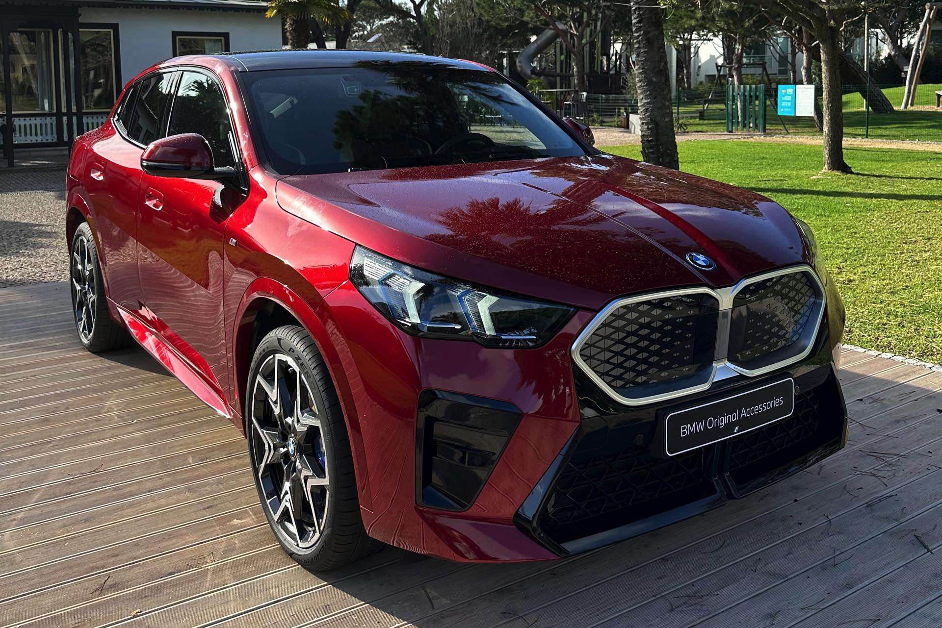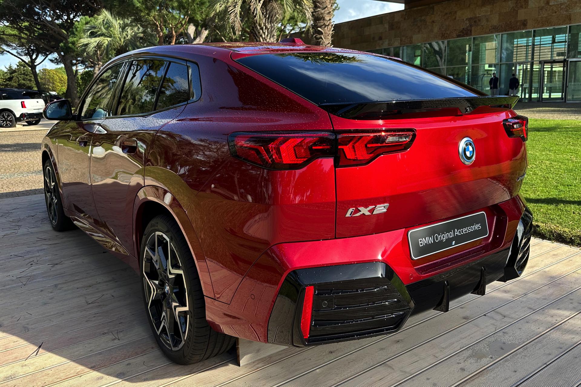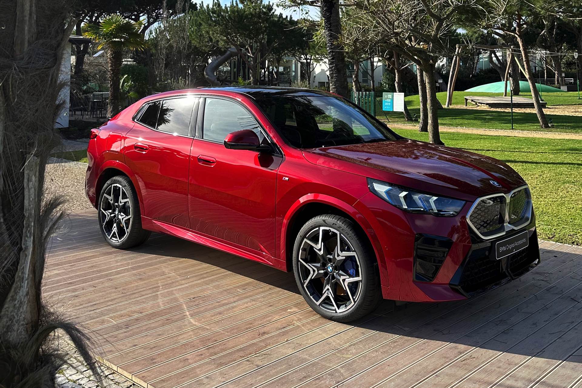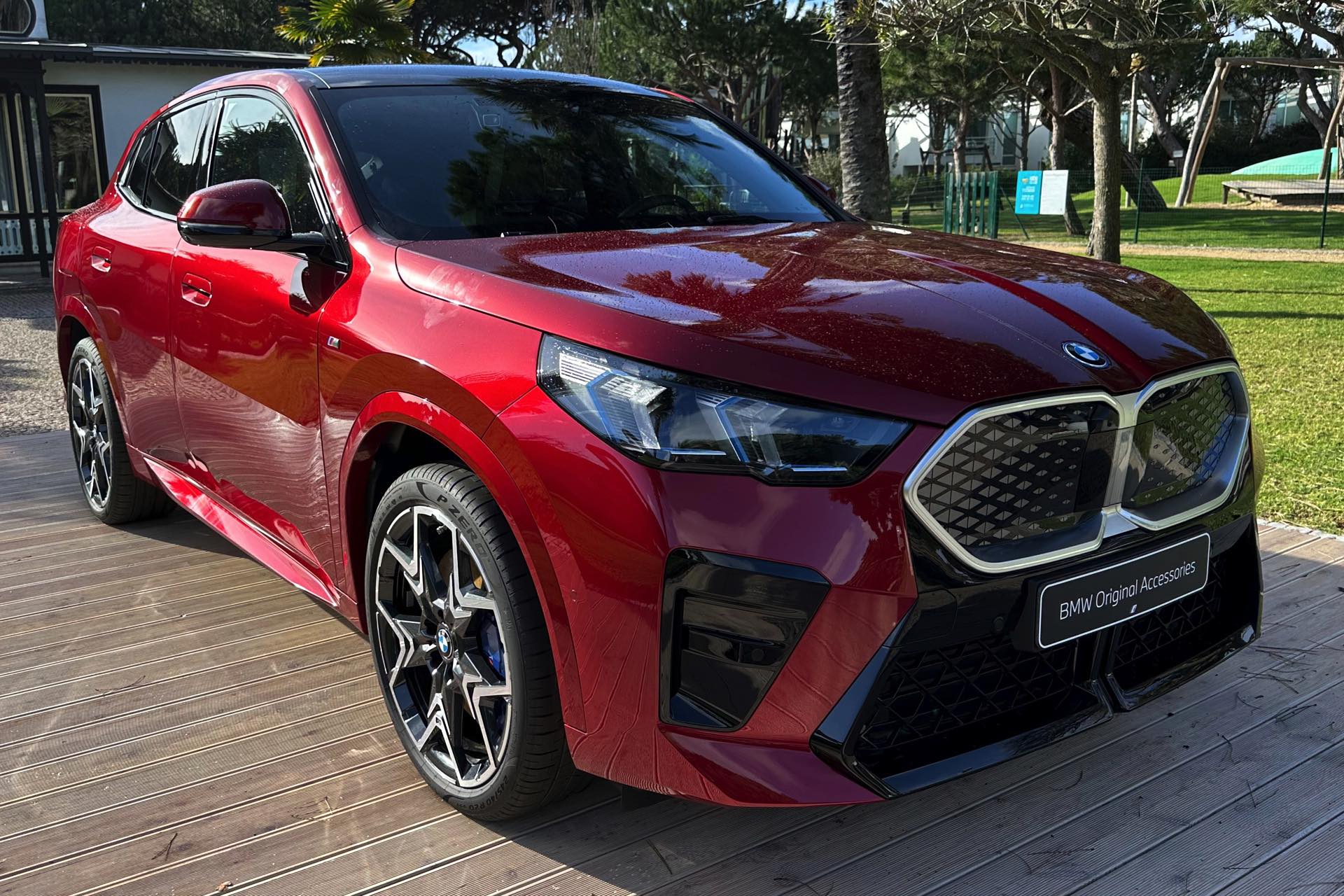 Fire Red Metallic zählt ohne jeden Zweifel zu den Highlights in der Farbpalette des neuen BMW X2 (U10): Das intensive Rot debütierte erst kürzlich mit der neuen 5er-Reihe (G60) und entfaltet gerade im direkten Sonnenlicht eine besondere Wirkung. Wie gut das des Design des jüngsten SUV-Coupés aus München mit der neuen Farbe harmoniert, zeigen unsere Live-Fotos aus Portugal, auf denen wir den X2 in seiner Elektro-Version iX2 sehen. Abgesehen vom speziellen Nieren-Innenleben, das komplett auf klassische Streben verzichtet, ist das Elektroauto aber kaum vom X2 mit regulärem Antrieb zu unterscheiden.