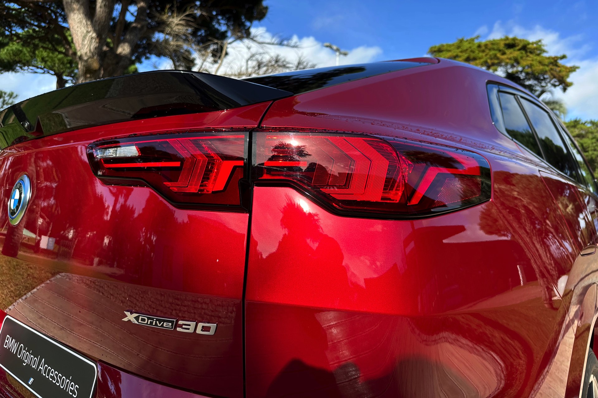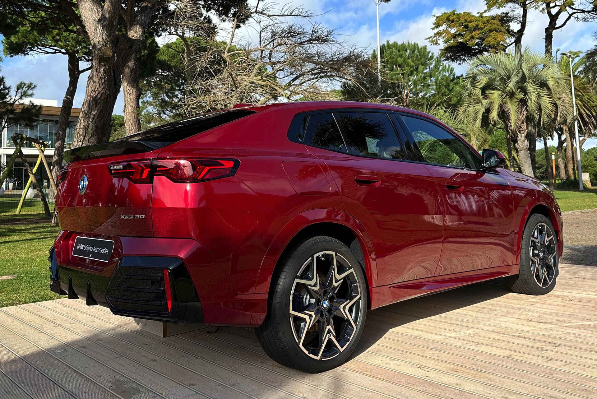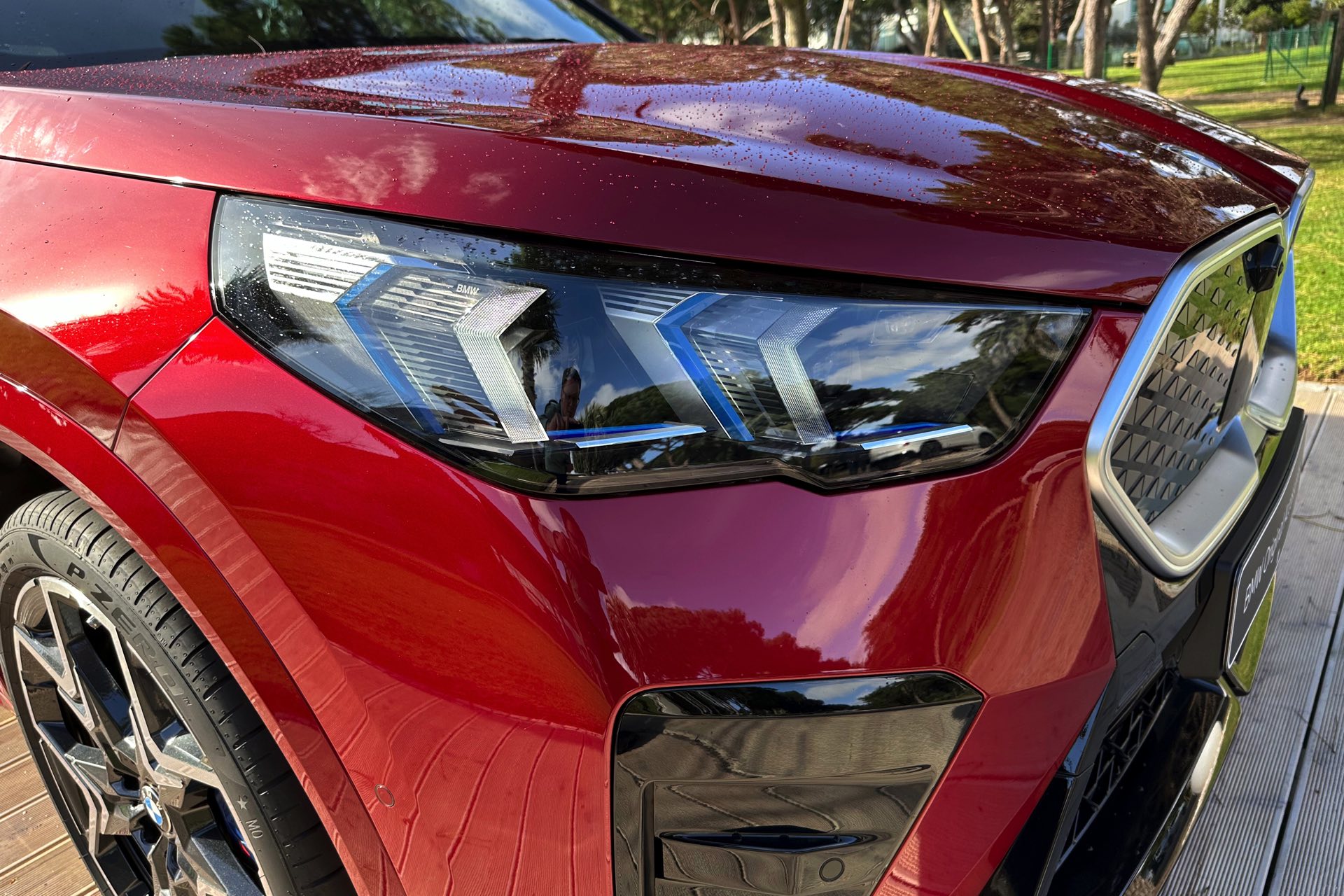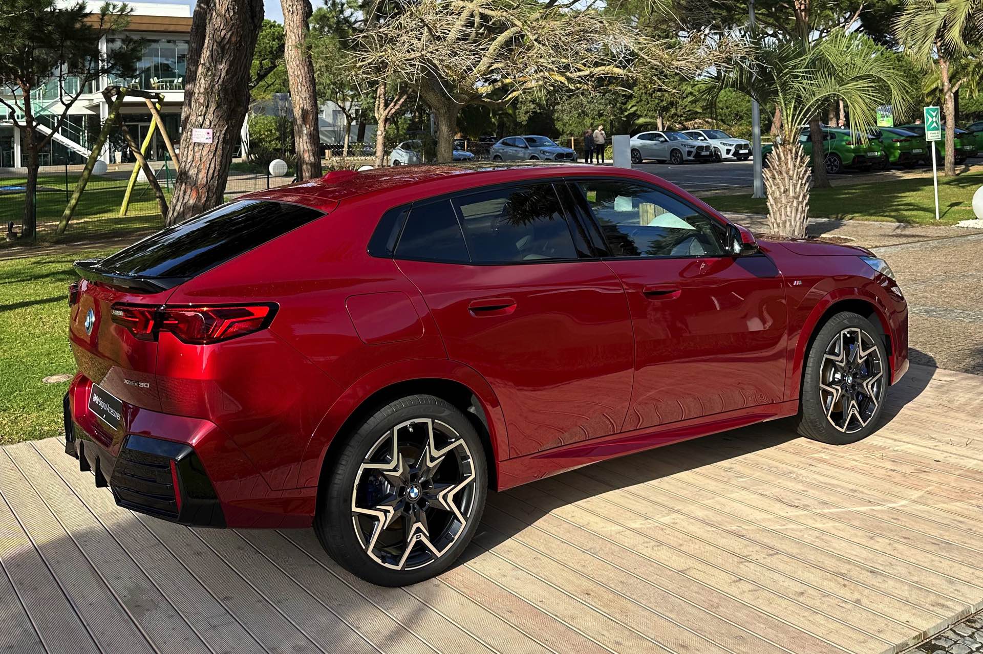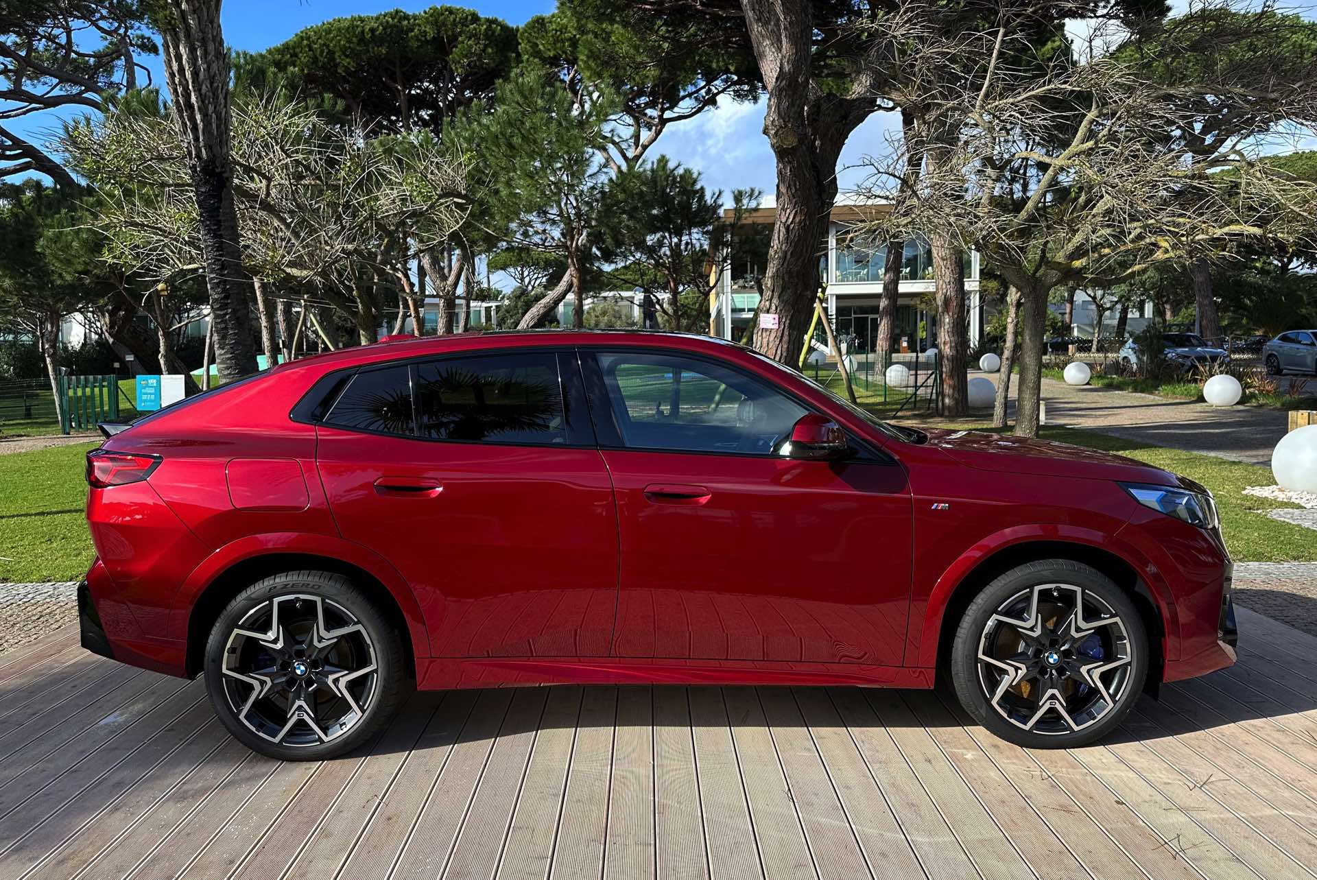 Fire Red Metallic zählt ohne jeden Zweifel zu den Highlights in der Farbpalette des neuen BMW X2 (U10): Das intensive Rot debütierte erst kürzlich mit der neuen 5er-Reihe (G60) und entfaltet gerade im direkten Sonnenlicht eine besondere Wirkung. Wie gut das des Design des jüngsten SUV-Coupés aus München mit der neuen Farbe harmoniert, zeigen unsere Live-Fotos aus Portugal, auf denen wir den X2 in seiner Elektro-Version iX2 sehen. Abgesehen vom speziellen Nieren-Innenleben, das komplett auf klassische Streben verzichtet, ist das Elektroauto aber kaum vom X2 mit regulärem Antrieb zu unterscheiden.