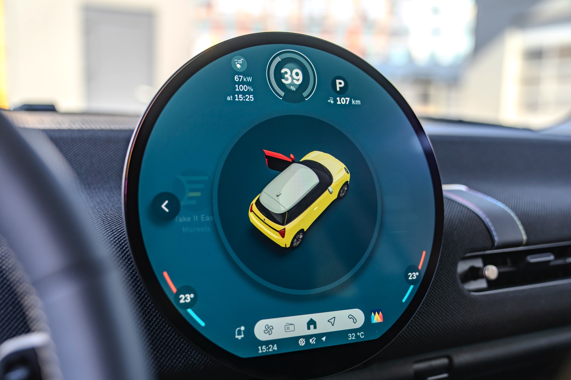Die Paketlogik des neuen J01 zwingt dabei mitunter zu teuren Entscheidungen: Da es den Essential Trim nur in Melting Silver und Midnight Black gibt, ist schon für die Wahl einer kräftigen Farbe der Wechsel in eine der teureren Trim-Lines erforderlich. Für die gezeigte Farbe Sunny Side Yellow mit weißem Dach und weißen Außenspiegel-Kappen ist zwingend der Classic Trim erforderlich, sodass der Preis bereits auf in die Nähe der 40.000 Euro-Marke kommt. Wer es darauf anlegt, kann auch das Einstiegsmodell auf einen Preis von über 45.000 Euro greifen.