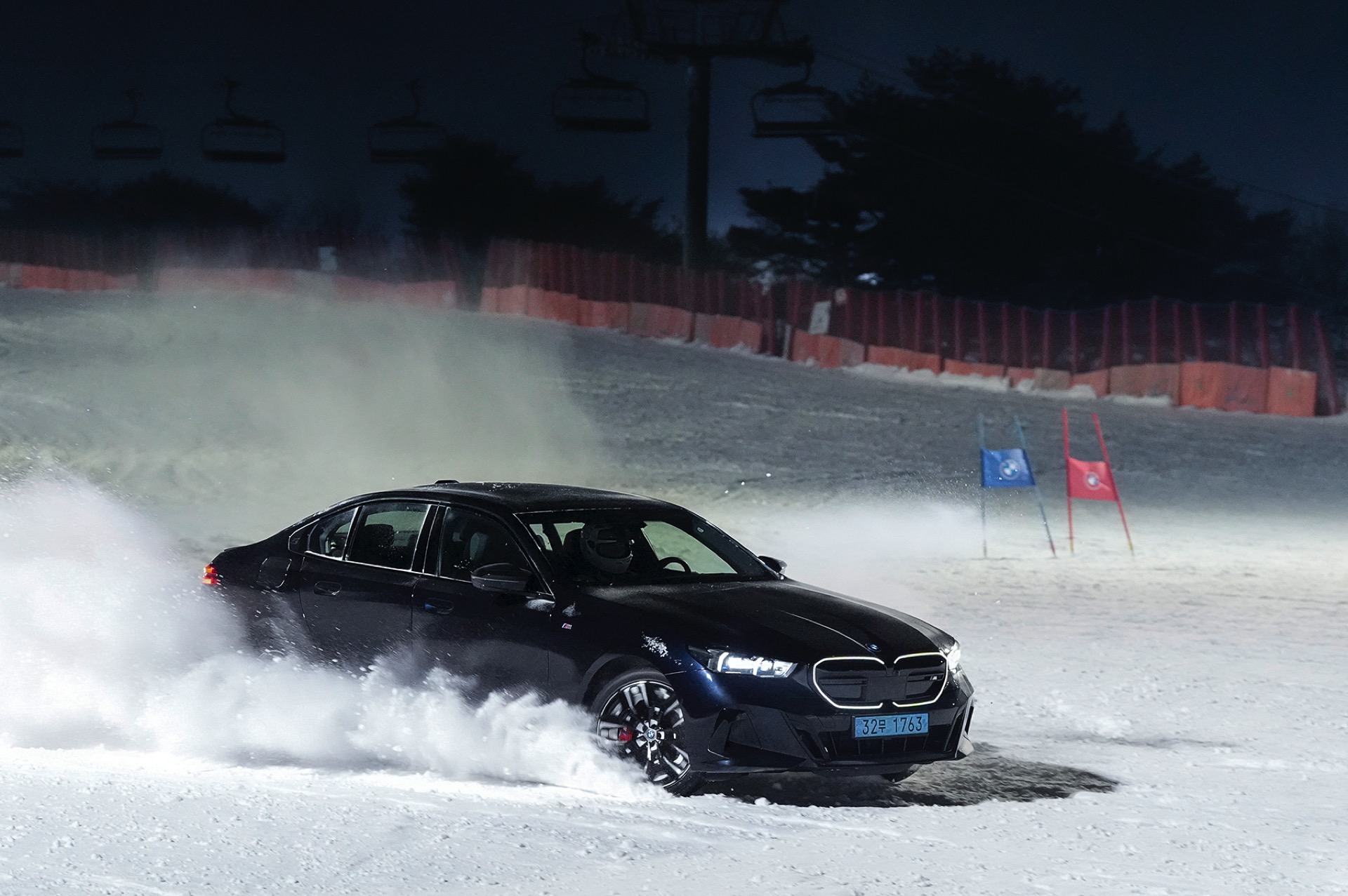 Neben dem Allradantrieb xDrive, dessen Kraftverteilung im Elektro-Zeitalter technisch völlig anders als in der Vergangenheit realisiert wird und vor allem eine Frage des optimalen Zusammenspiels der beiden E-Maschinen an Vorder- und Hinterachse ist, sind für derartige Manöver auf geschlossener Schneedecke natürlich auch erstklassige Winterreifen Pflicht. Dass BMW Südkorea dabei auf einen heimischen Hersteller setzt und den Hankook Winter i*cept evo3 in Szene setzt, kommt wenig überraschend.