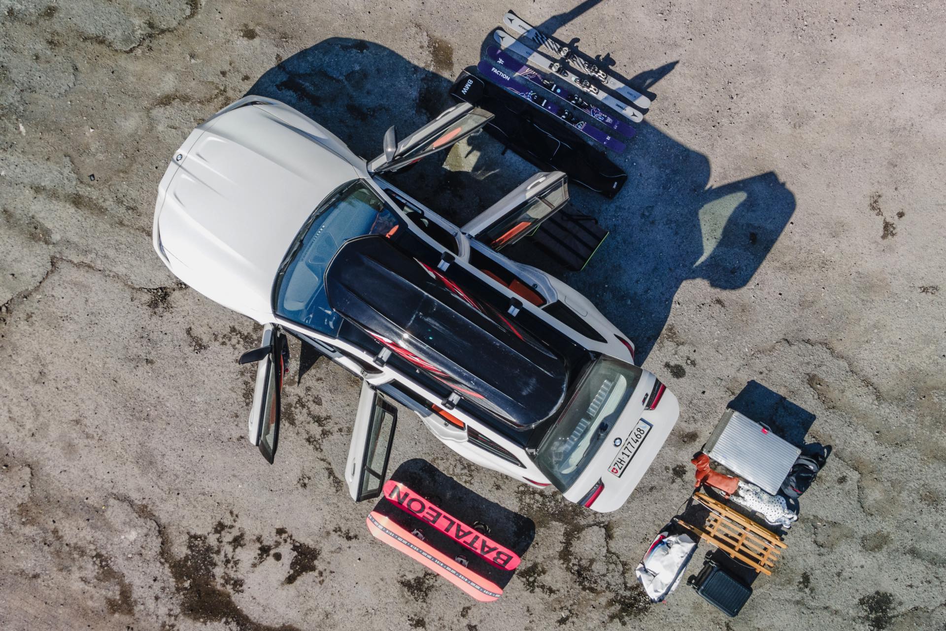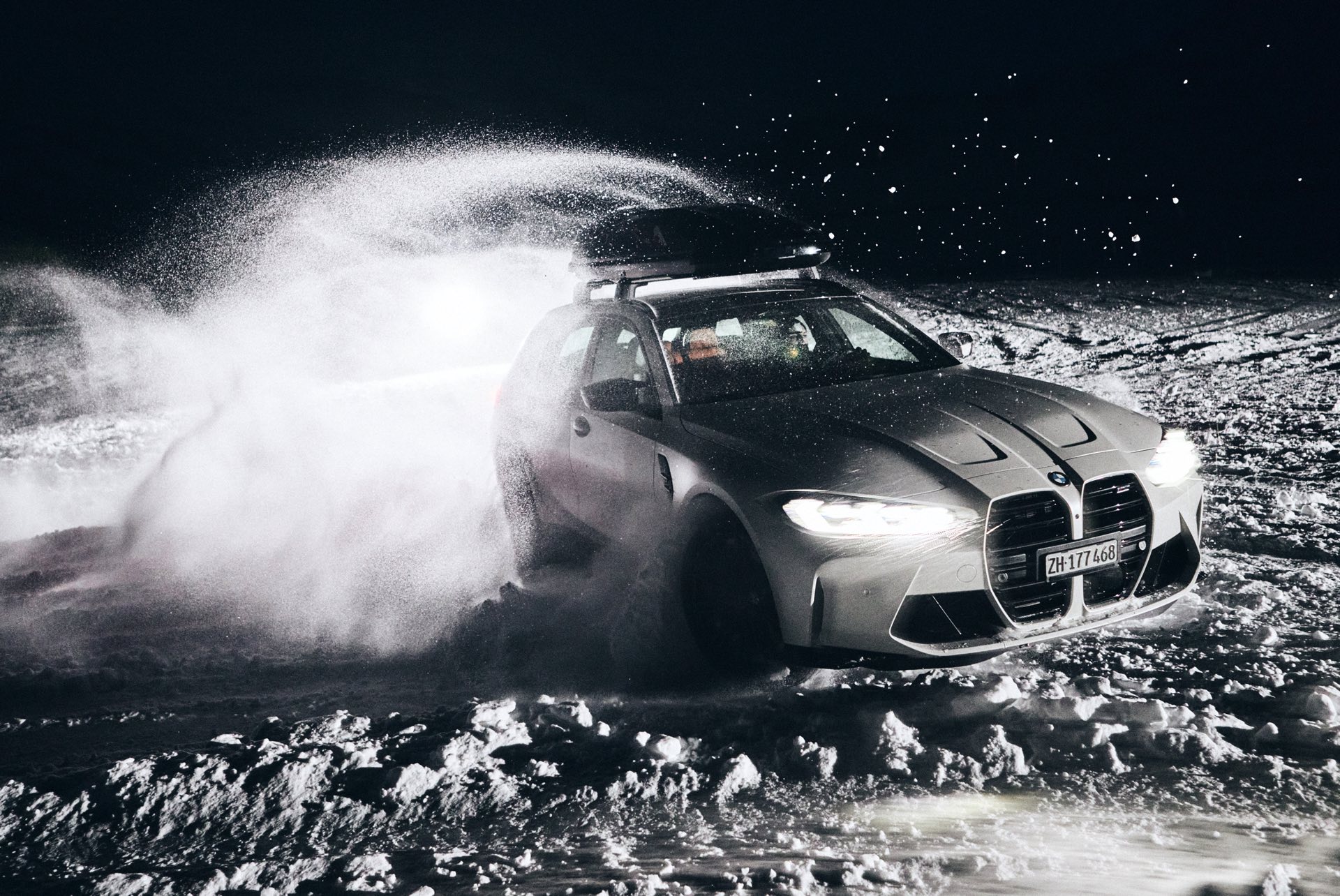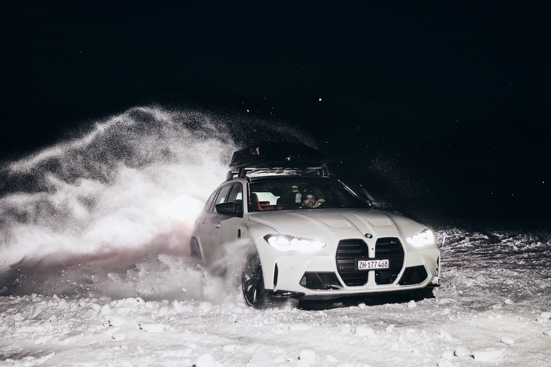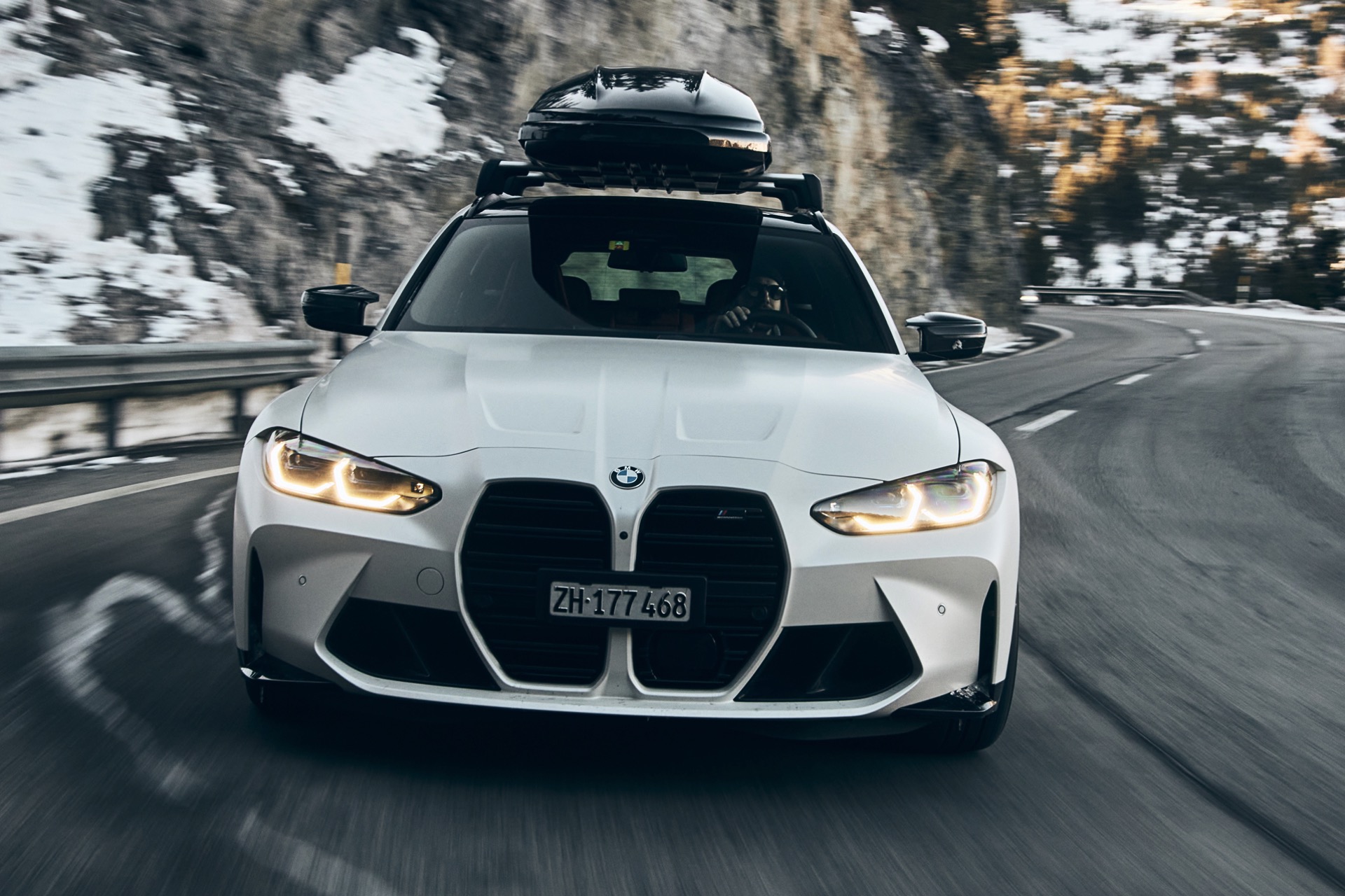 Auch BMW Schweiz präsentierte den BMW M3 Touring bereits mit Dachbox im tiefen Schnee, doch mit einer Lackierung in Weiß ist der Kontrast zur Landschaft naturgemäß überschaubar und die Bilder wirken nicht ganz so farbenfroh:
