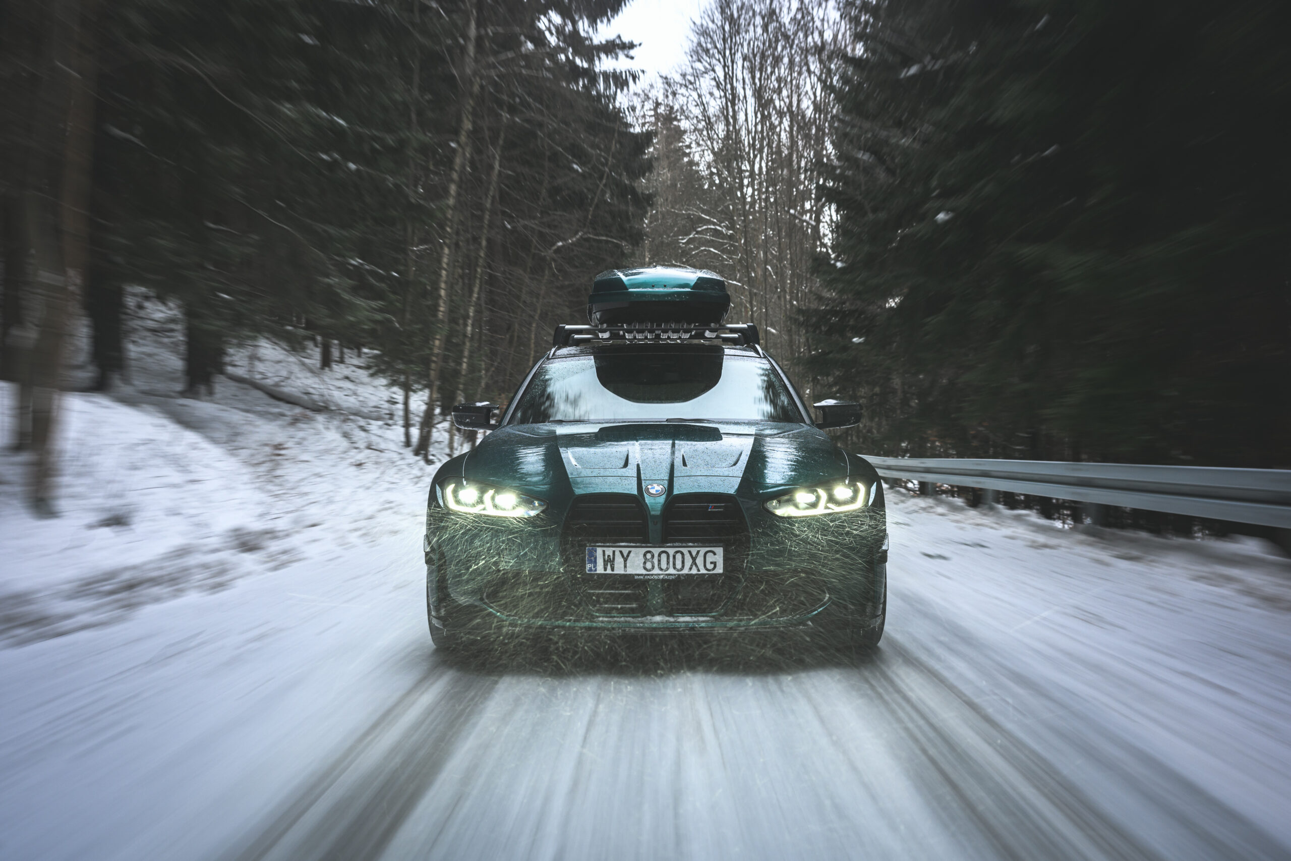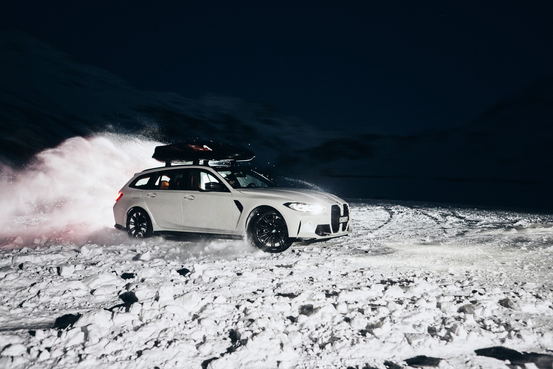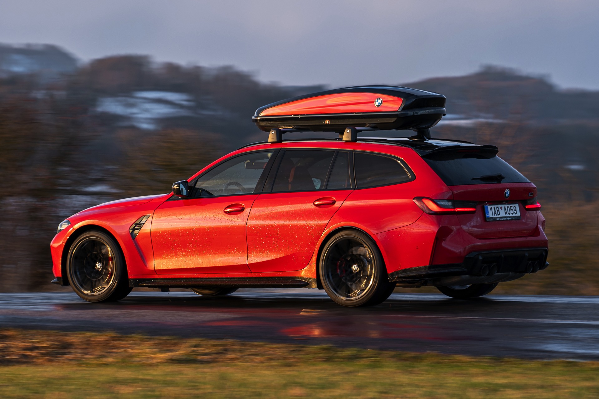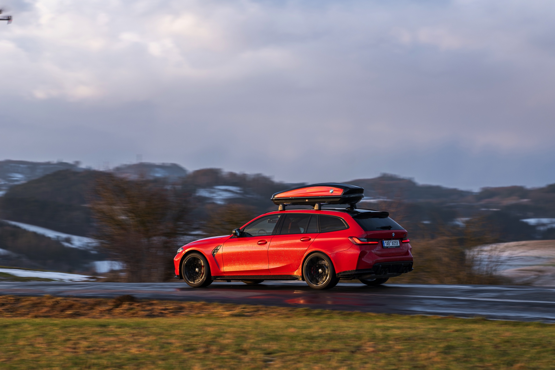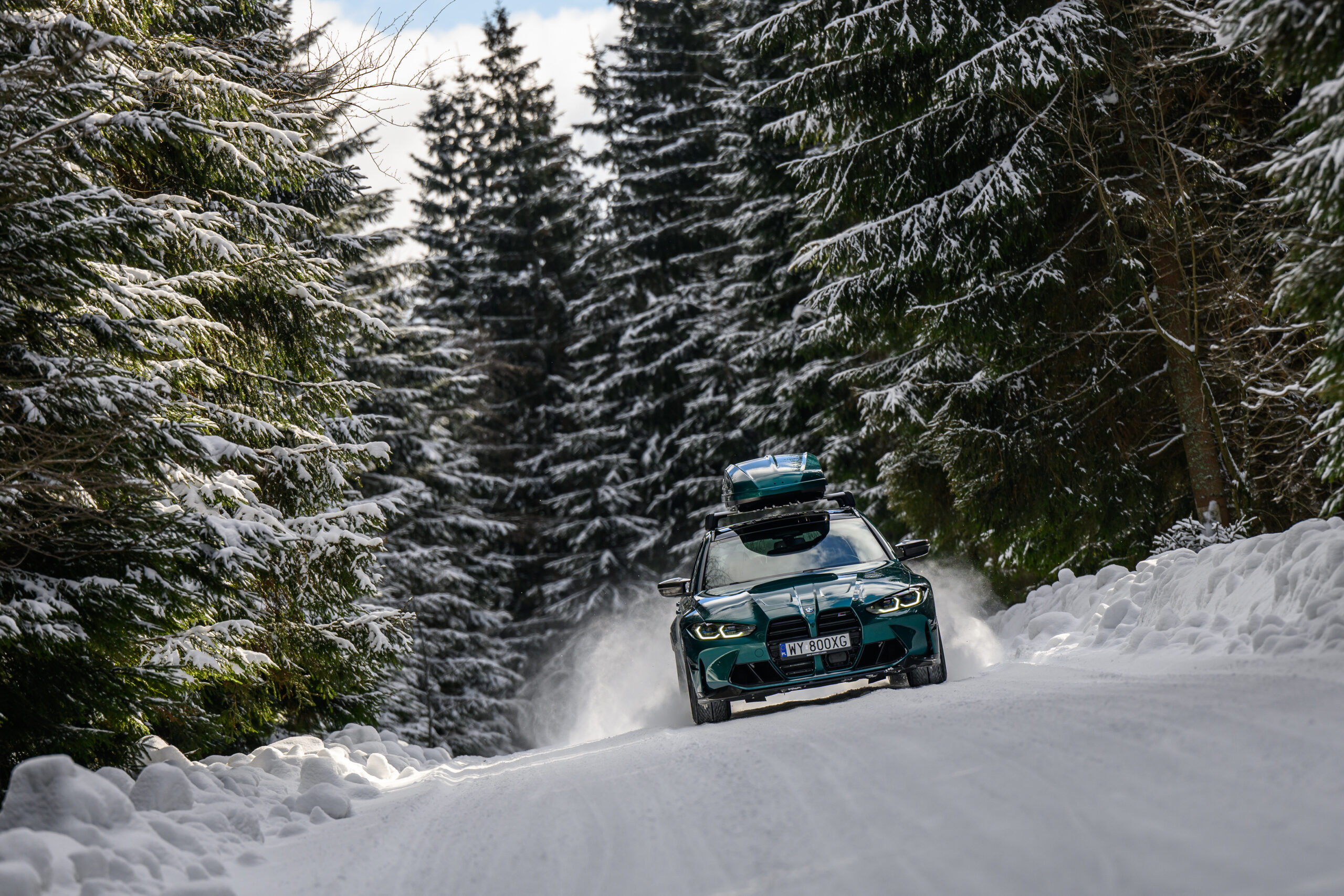 Wer auch nach dem langen Winter-Drift-Video von Matthias Malmedie noch nicht genug vom BMW M3 Touring (G81) im Schnee hat oder auf den bisherigen Aufnahmen eine praktische Dachbox vermisst hat, erhält nun Foto-Nachschub aus der Tschechischen Republik. Eine neue Foto-Serie zeigt uns den M3 Touring in Toronto Rot Metallic inmitten einer verschneiten Landschaft – und das bei durchaus engagierter Gangart mit ansehnlichem Driftwinkel. Ein besonderer Hingucker findet sich auf dem Dach des Power-Kombis, denn der gezeigte M3 trägt eine Dachbox aus dem BMW Zubehör-Programm.