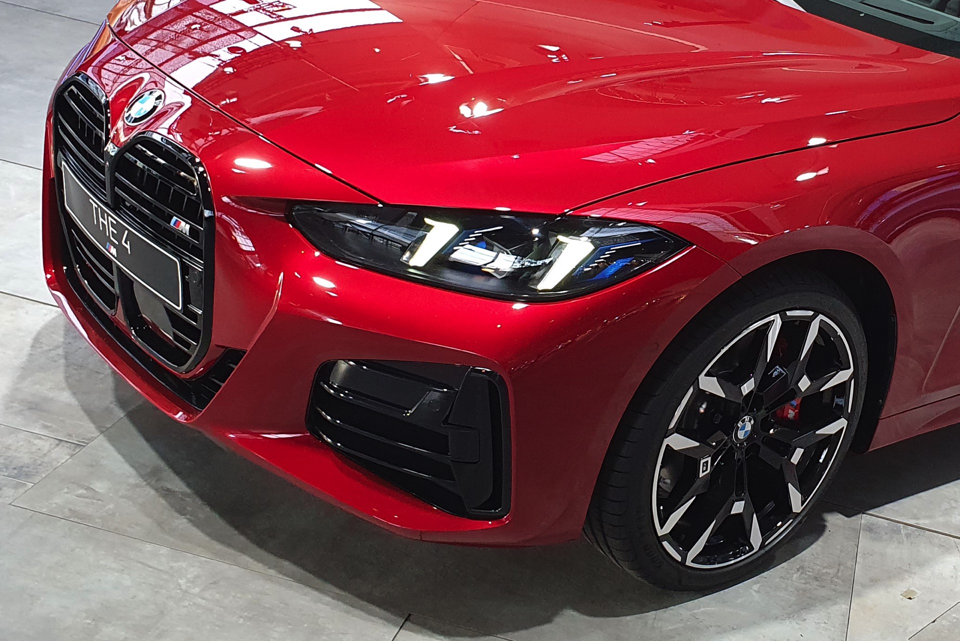 Der neue Look des M440i und die neue Lackierung in Fire Red Metallic zählen zu den Highlights des BMW 4er Facelift 2024, die nicht an jedem Exemplar zu sehen sein werden. Während andere Details wie die neuen Scheinwerfer mit ihrer speziellen Tagfahrlicht-Grafik genau wie die Rückleuchten mit Laser-gespeisten Lichtbändern für alle Motorisierungen zur Wahl stehen, bleibt die markante Niere mit horizontalen Streben den M Performance Modellen M440i und M440d vorbehalten. Seit dem Facelift sind beide nur noch mit Allradantrieb xDrive erhältlich, zuvor gab es zumindest den Benziner auch mit klassischem Hinterradantrieb.