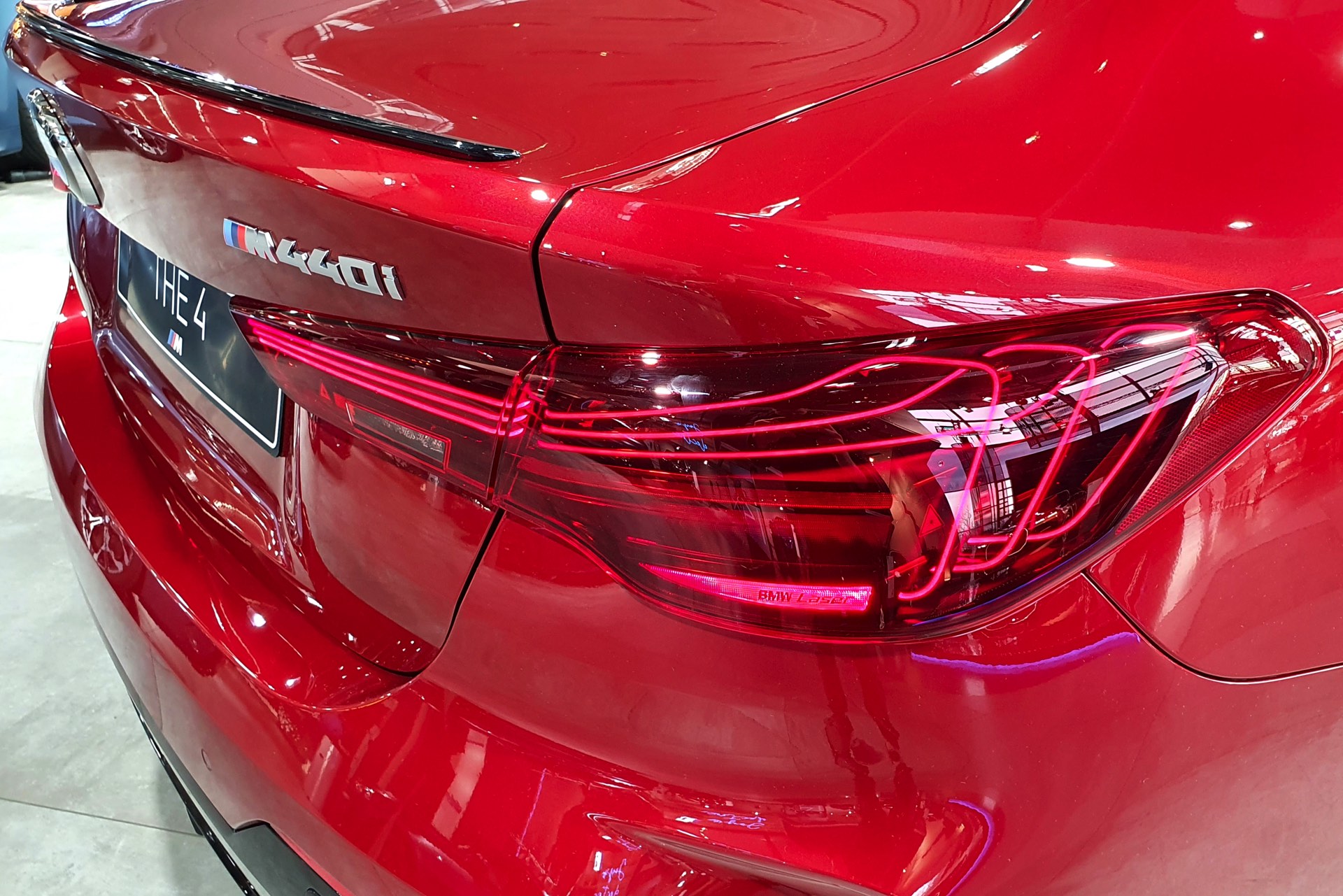 Im Detail betrachten dürfen wir das BMW 4er Facelift (G22 LCI) im jüngsten Video von paul_m8, der uns auch ein paar Fotos vom aufgefrischten Coupé liefert. Ein besonderer Hingucker ist der M440i in der BMW Welt München auch, weil er die neue Farb-Option Fire Red Metallic trägt: Das intensive Rot kostet genau wie die meisten anderen Metallic-Lackierungen 960 Euro Aufpreis, allerdings ist es auch an das M Sport-Paket gekoppelt und somit gerade für die schwächeren Motorisierungen noch ein gutes Stück teurer.