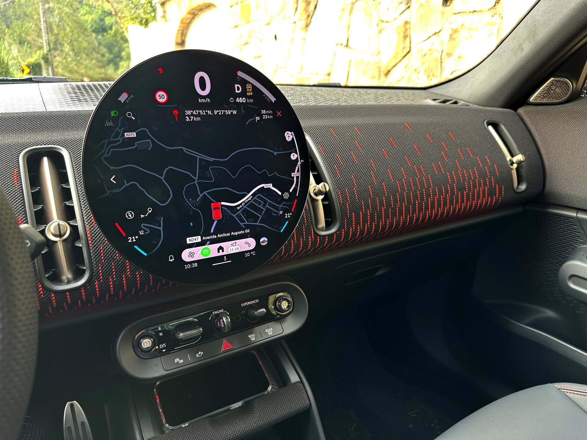 Schon bevor wir uns den kurvigen Landstraßen im portugiesischen Hinterland nähern, überrascht der MINI mit dem neuen Rund-Display: Nach Jahrzehnten fortwährender Gewöhnung an rechteckige Displays bietet der Ausbruch in eine neue Form echten Unterhaltungswert, der vom MINI Operating System 9 clever genutzt wird. Die runde Grundform wird von den meisten Anwendungen voll ausgenutzt, sodass sich selbst alltäglichste Dinge wie der Blick auf den Tacho irgendwie neu anfühlen.