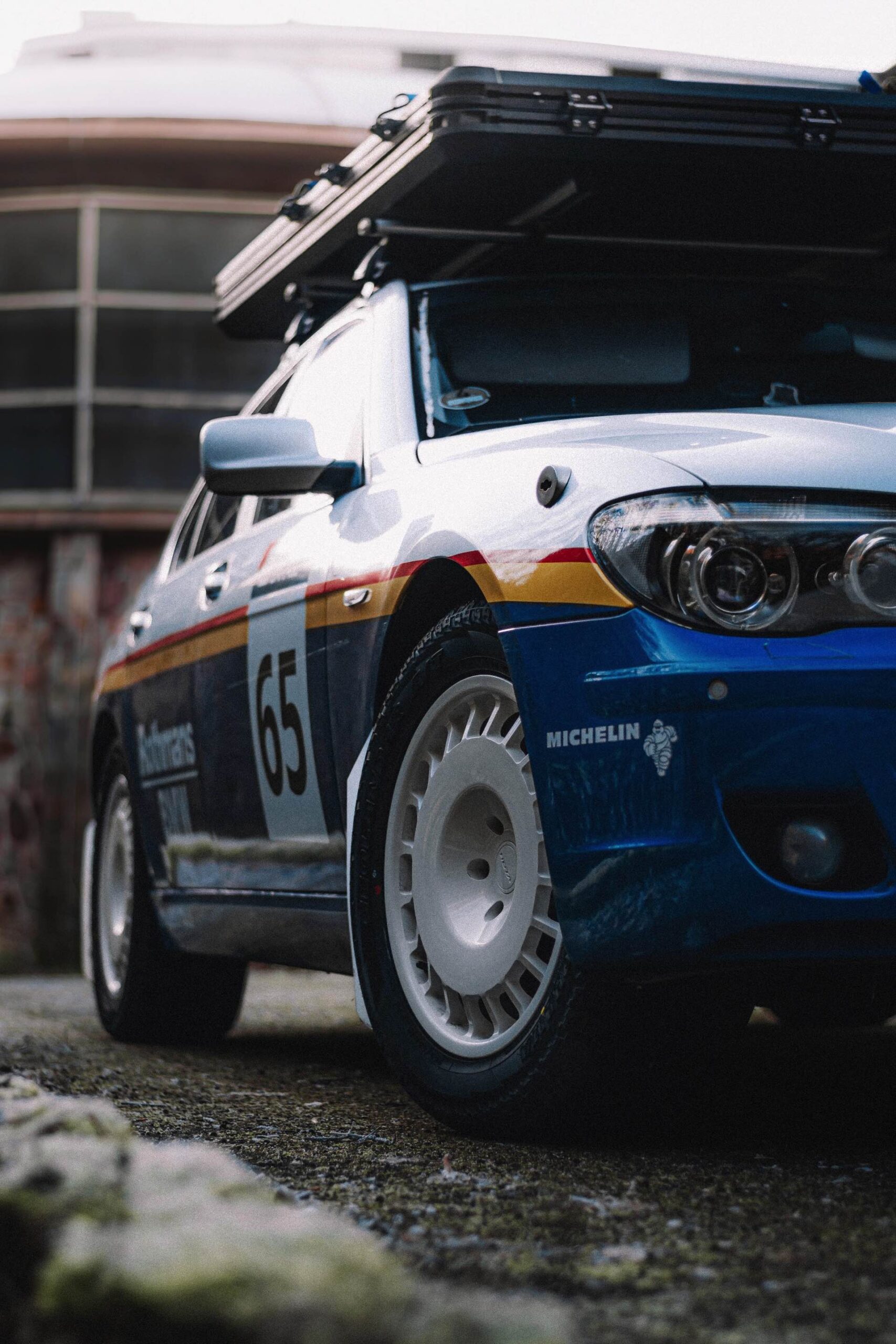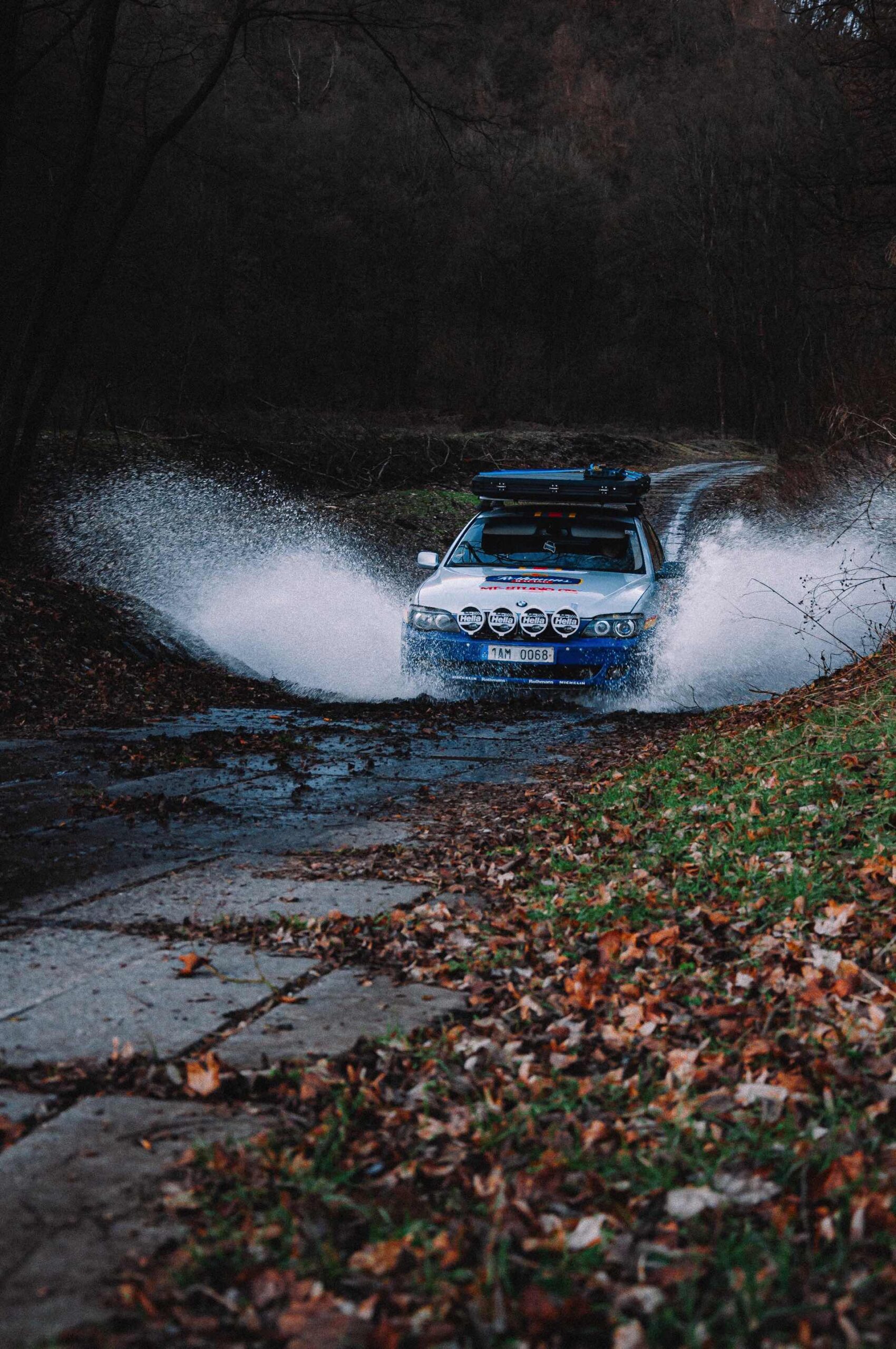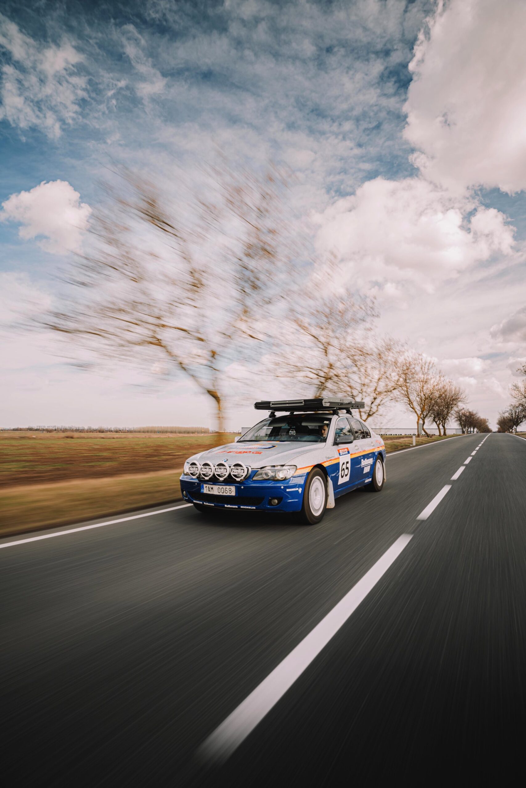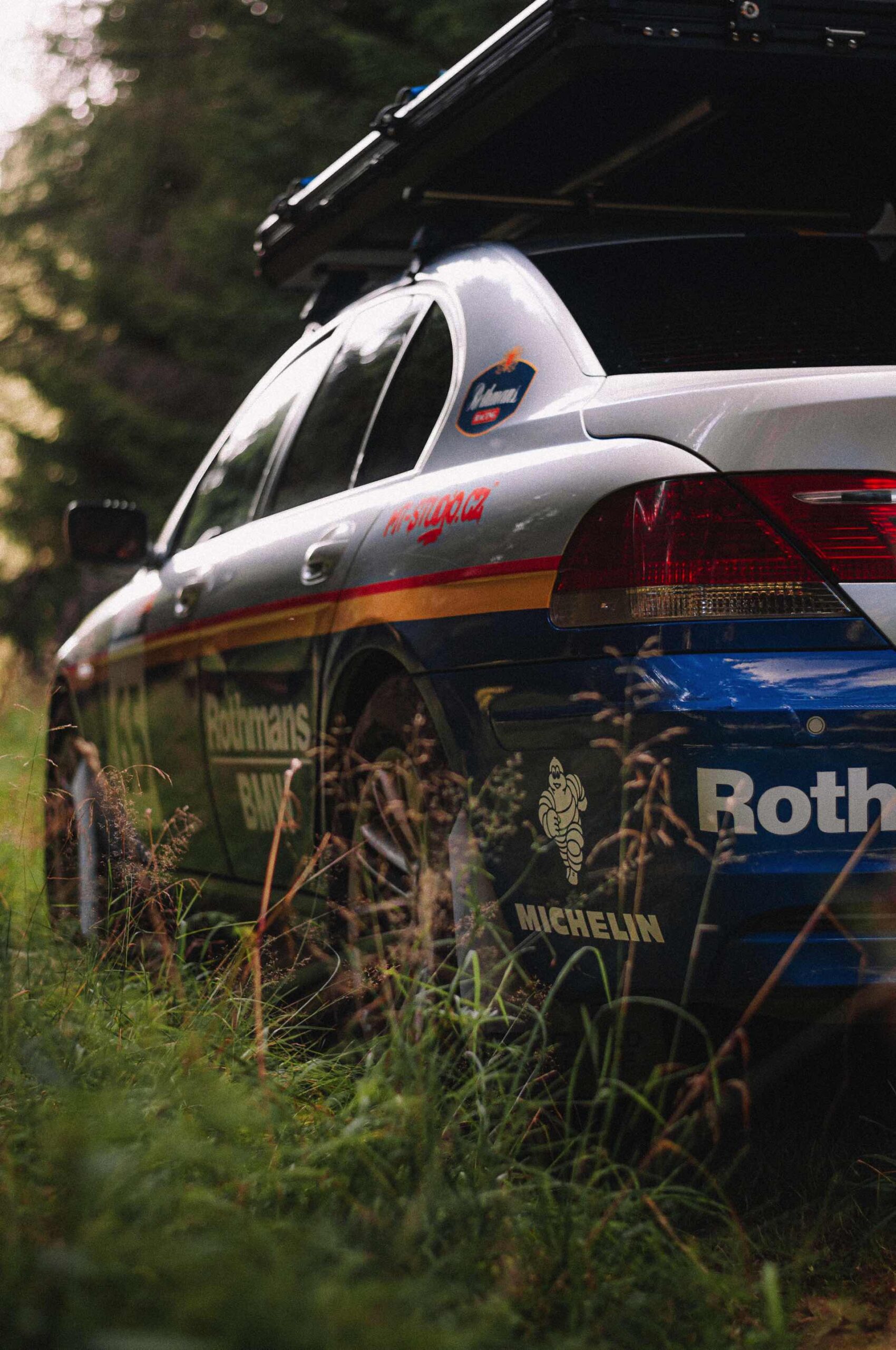 Der einst als 730d geborene Diesel-7er trägt nun nicht nur eine markante Folierung im Look diverser Rallye-Sportler mit Rothmans-Sponsoring, sondern auch 18 Zoll große Rota-Räder und ein gründlich überarbeitetes Fahrwerk. In Summe sorgen die Änderungen für zwei Inch oder rund fünf Zentimeter Höherlegung, womit der 7er deutlich besser für Offroad-Fahrten ausgerüstet ist. Aller Abenteuerlust zum Trotz verfügt die Limousine (noch) nicht über einen Allradantrieb, nur ein Sperrdifferenzial sorgt für mehr Traktion an der Hinterachse. Für ernsthafte Rallye-Einsätze ist die Limousine also noch nicht qualifiziert, aber spektakuläre Fotos und Videos sind auch heute schon möglich: