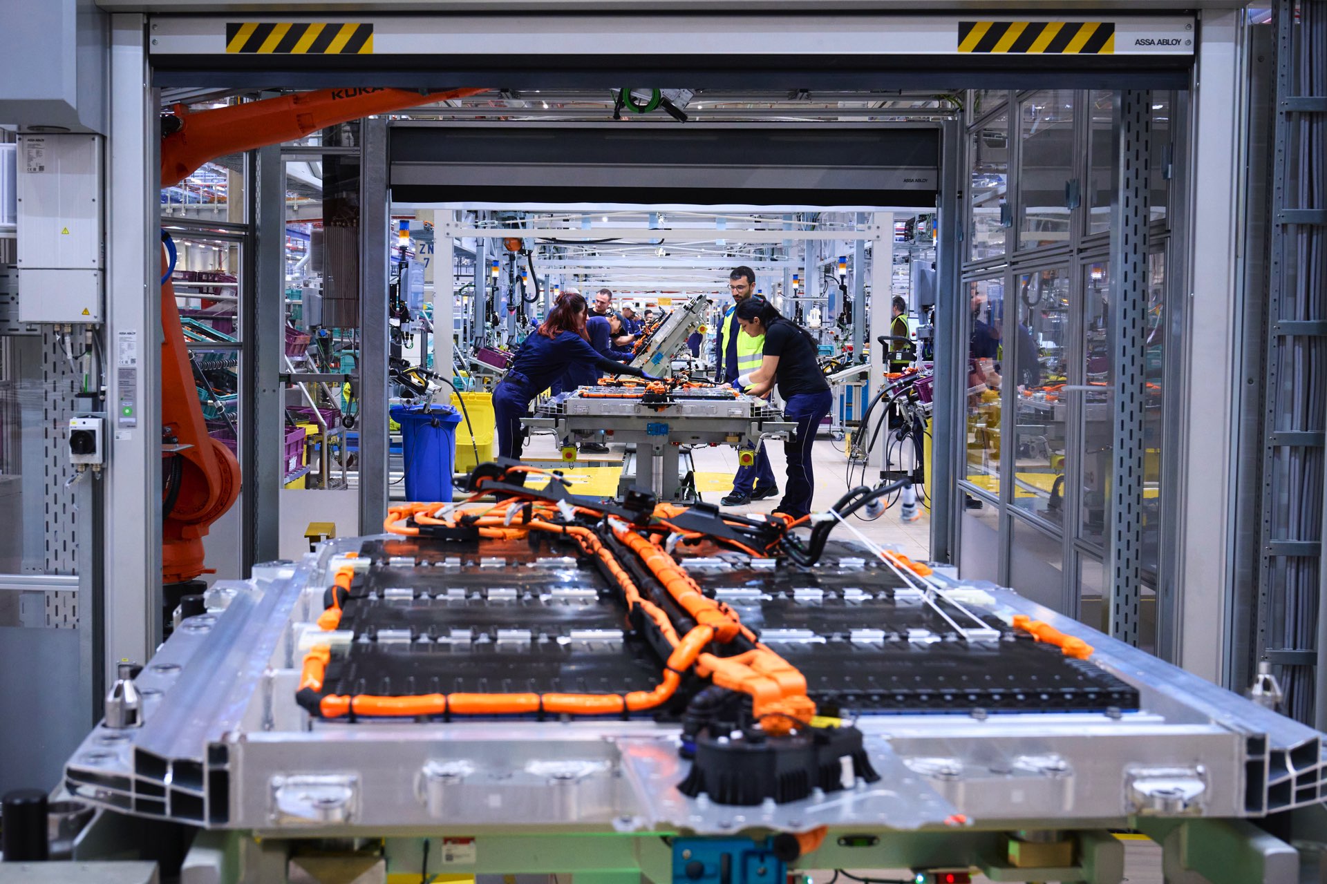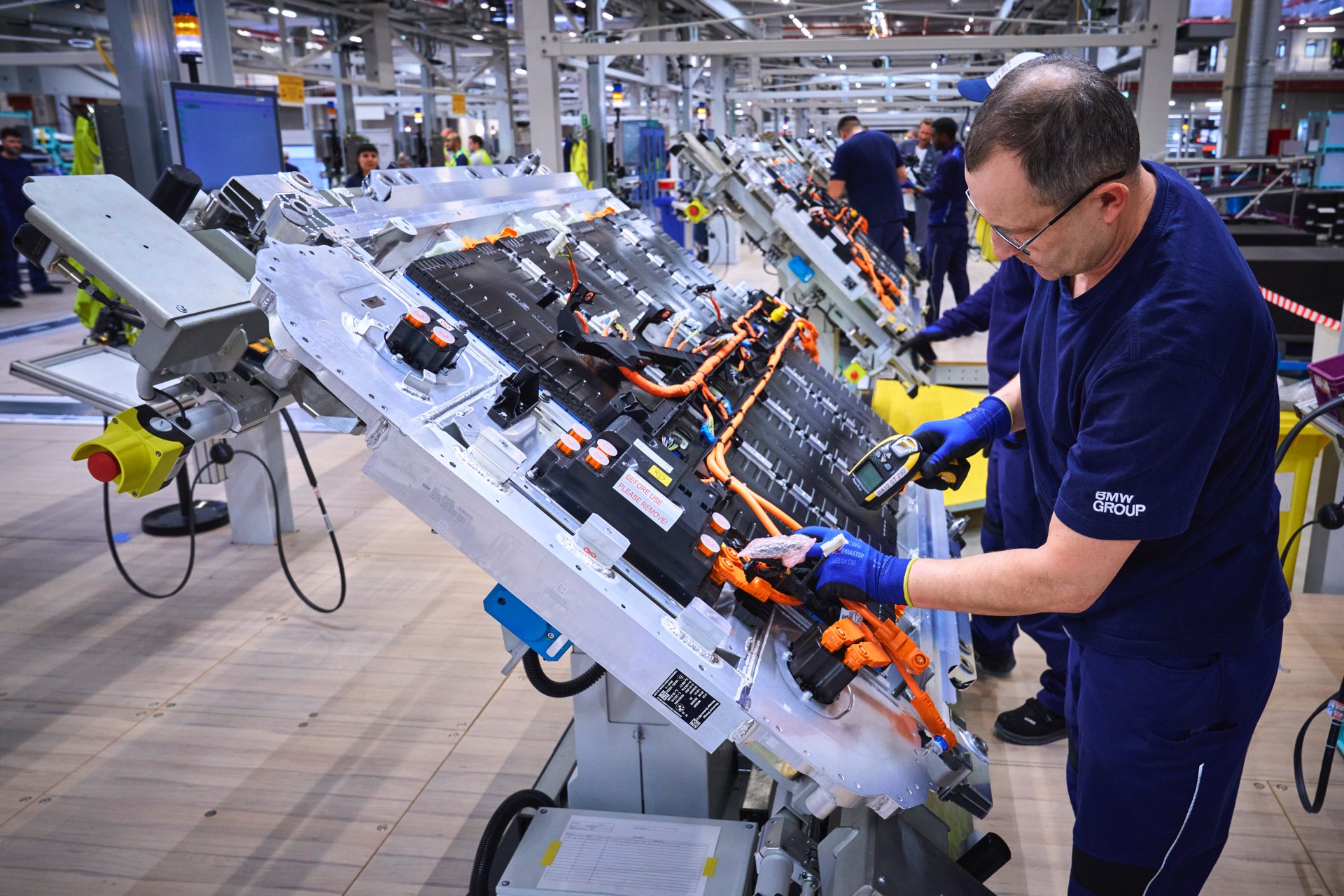 Realisiert wird die Produktion der bis zu 1.300 Fahrzeuge pro Tag von rund 7.000 Mitarbeiterinnen und Mitarbeitern. Rund 1.000 davon sind in der E-Komponentenfertigung des Leipziger Werks tätig und können dort bei entsprechender Nachfrage bis zu 300.000 Hochvoltbatterien jährlich fertigen. Diese werden nicht nur in Leipzig verbaut, sondern auch für die i4-Produktion in München, die iX- und i5-Produktion in Dingolfing sowie für die Produktion von iX1 und iX2 in Regensburg genutzt.